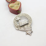 Victorian Silver Plated MacDonald Clan Crest Kilt Brooch Antique c1890