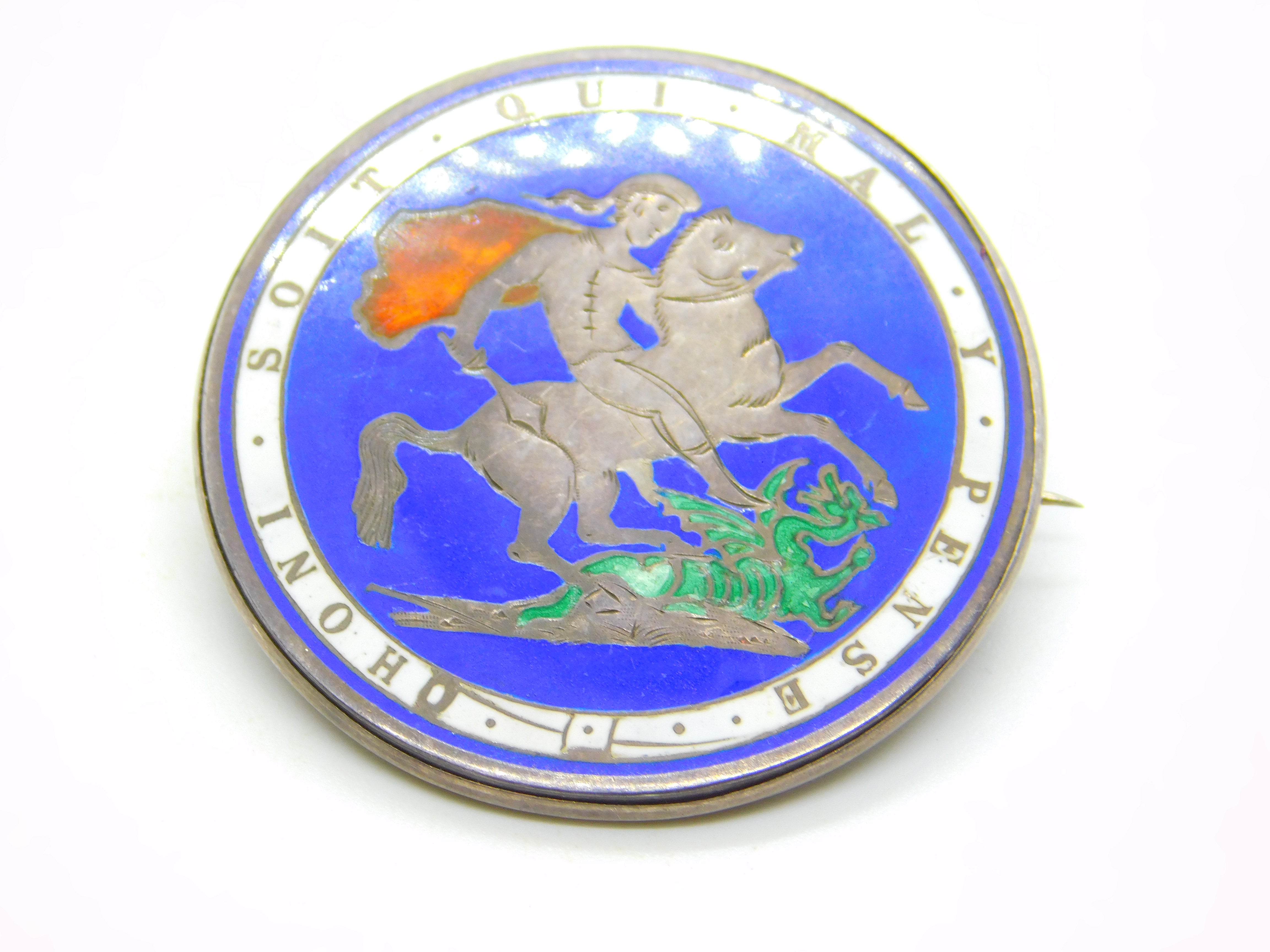 Details: A fantastic and wonderfully designed antique Victorian sterling silver crown coin style brooch with lovely colourful enamel details hallmarked Chester 1882 to the reverse by Blanckensee & Levetus. This is a wonderful item that would make a perfect gift or addition to any collection.