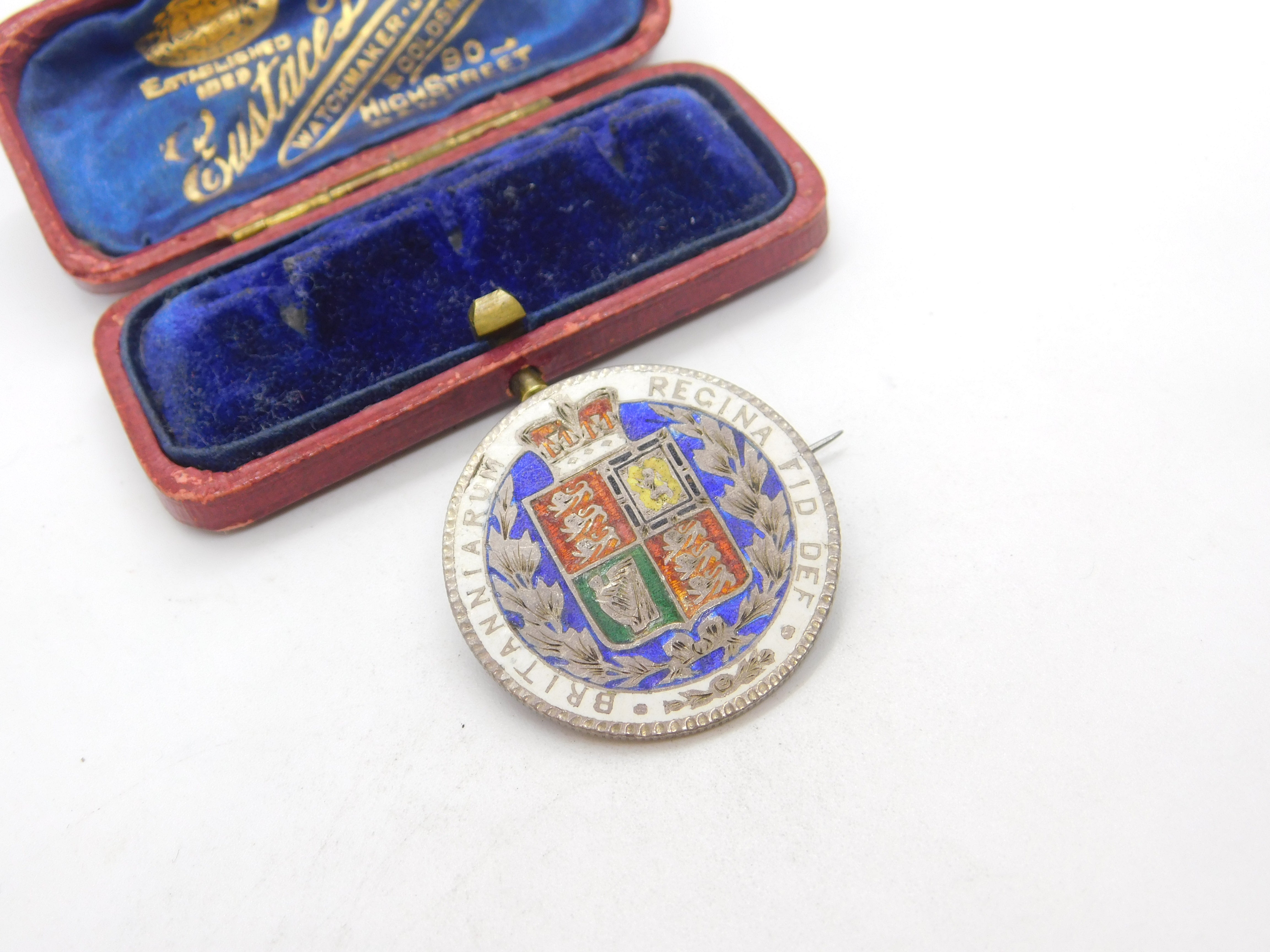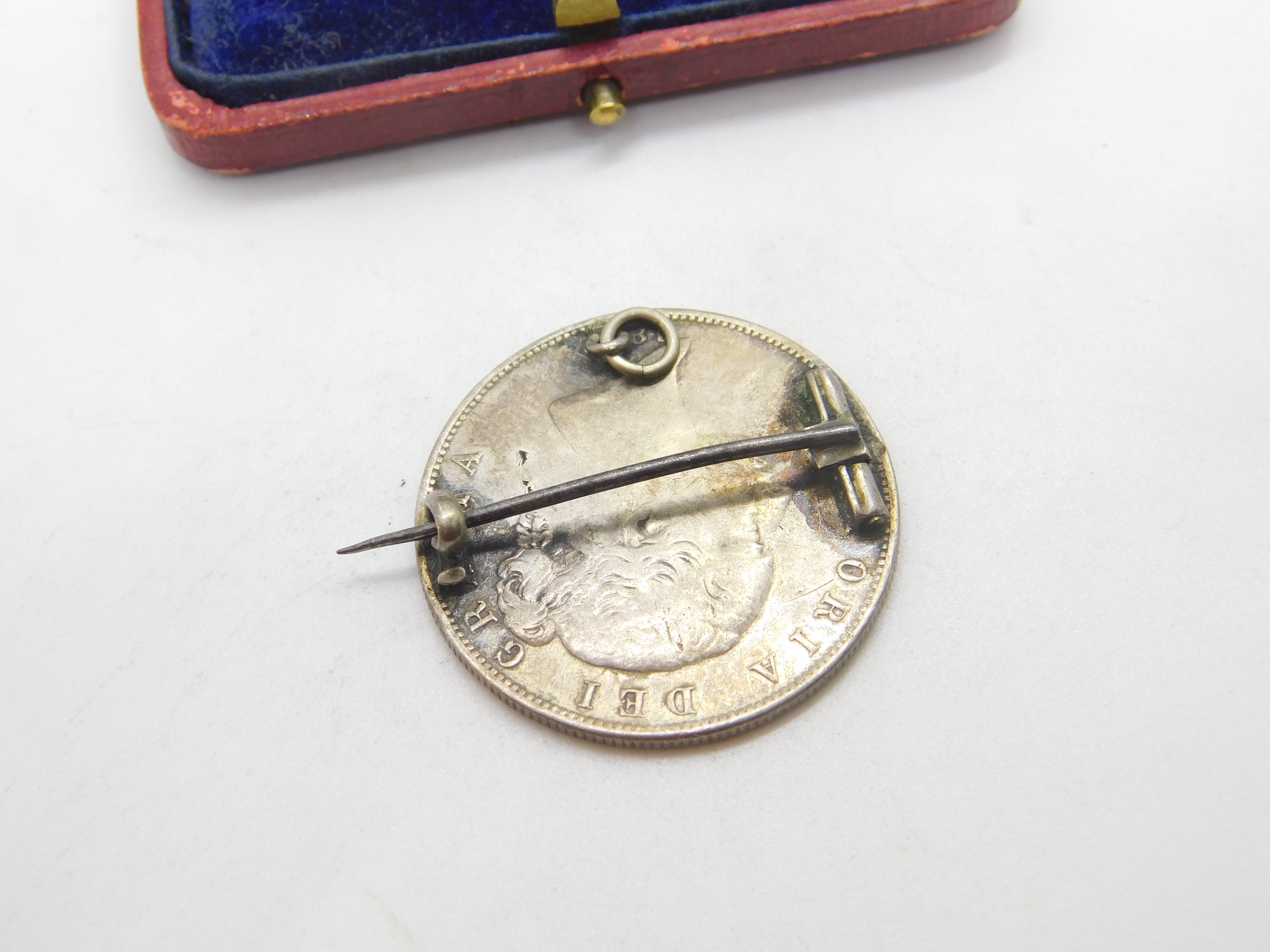 Victorian Sterling Silver & Enamel Half Crown Coin Brooch Pendant c1860 Antique