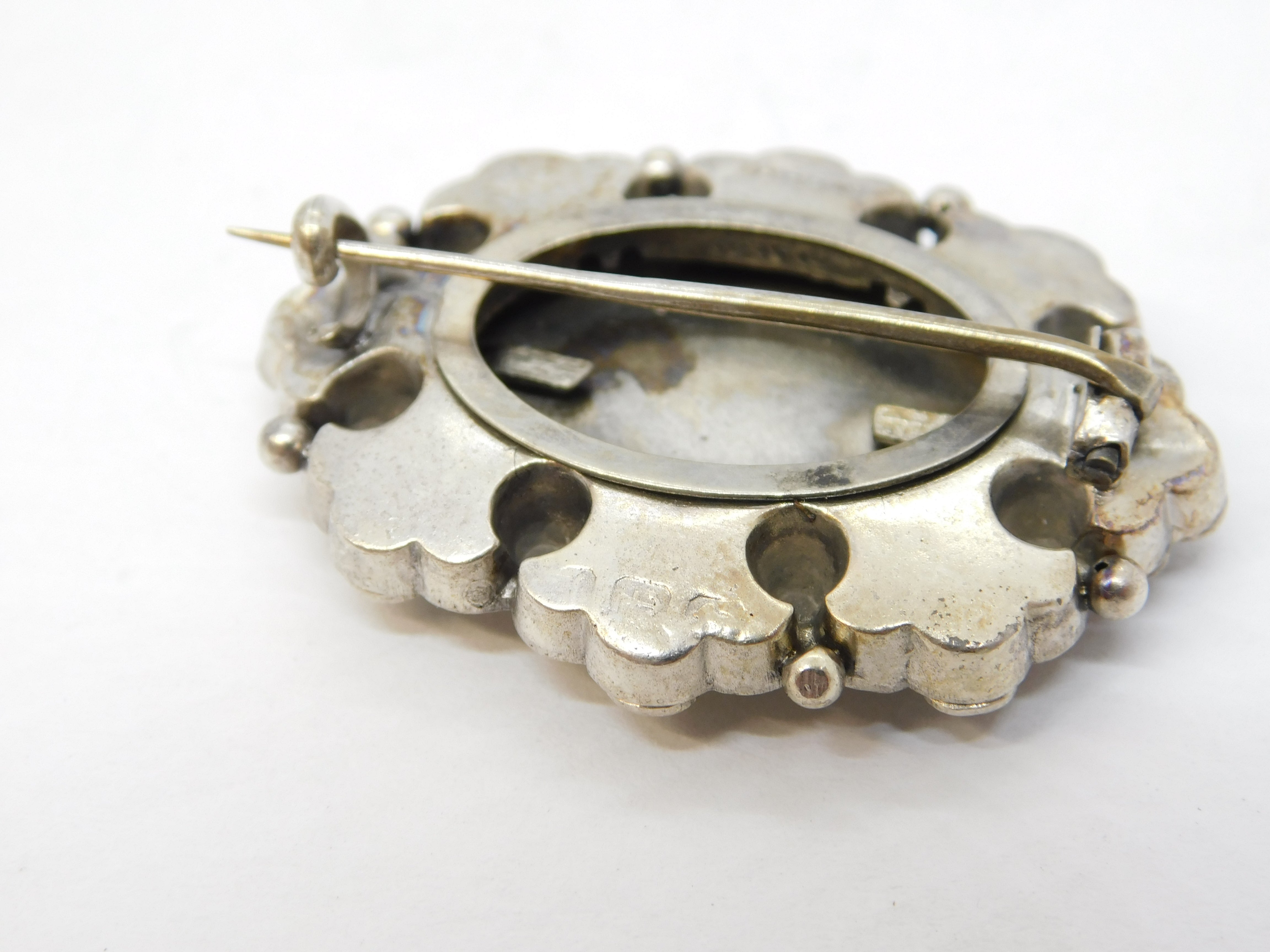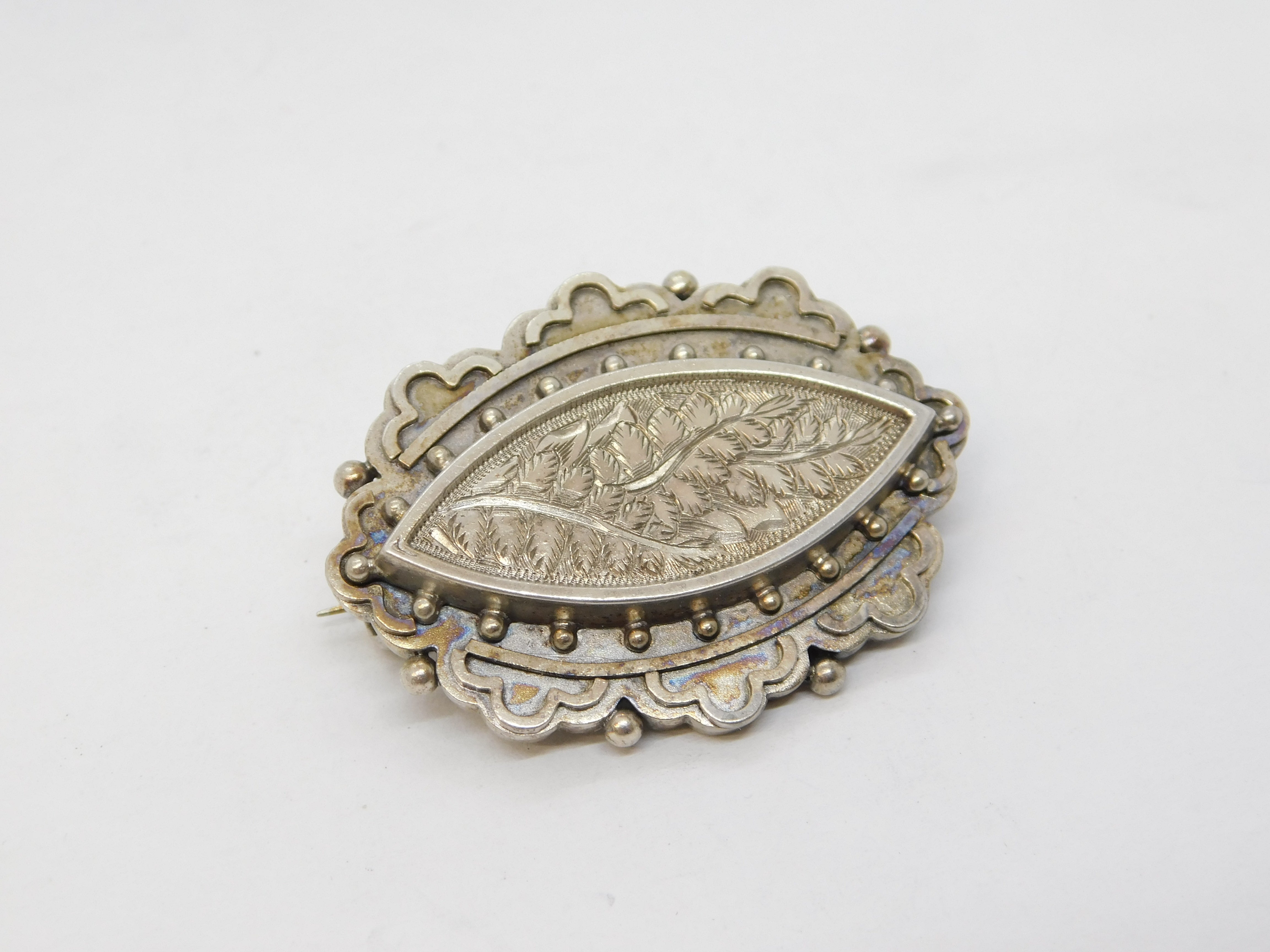 Victorian Sterling Silver Fern Pattern Mourning Brooch Antique 1885 Birmingham
