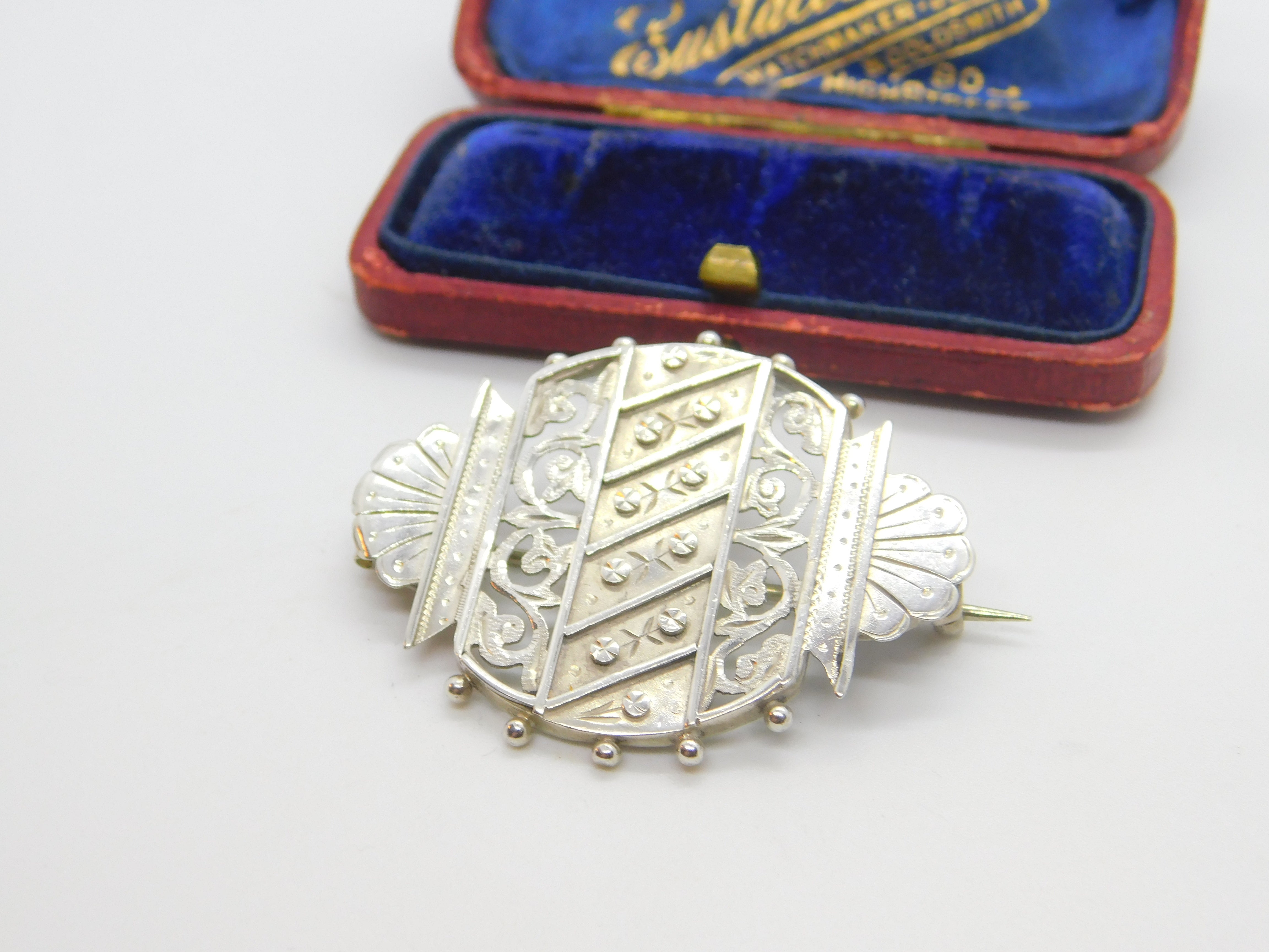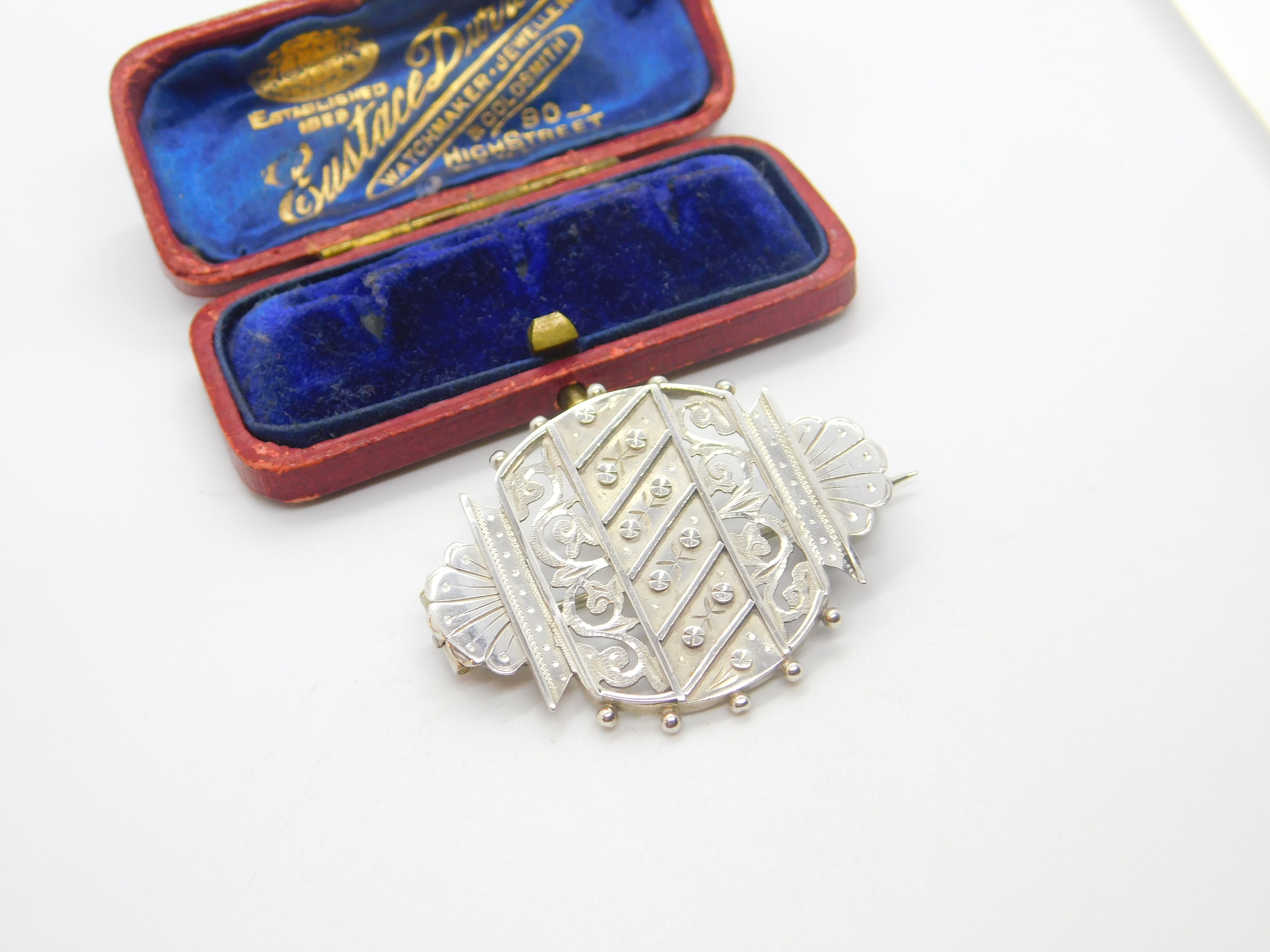 Victorian Sterling Silver Floral Pattern Sweetheart Brooch Antique c1880