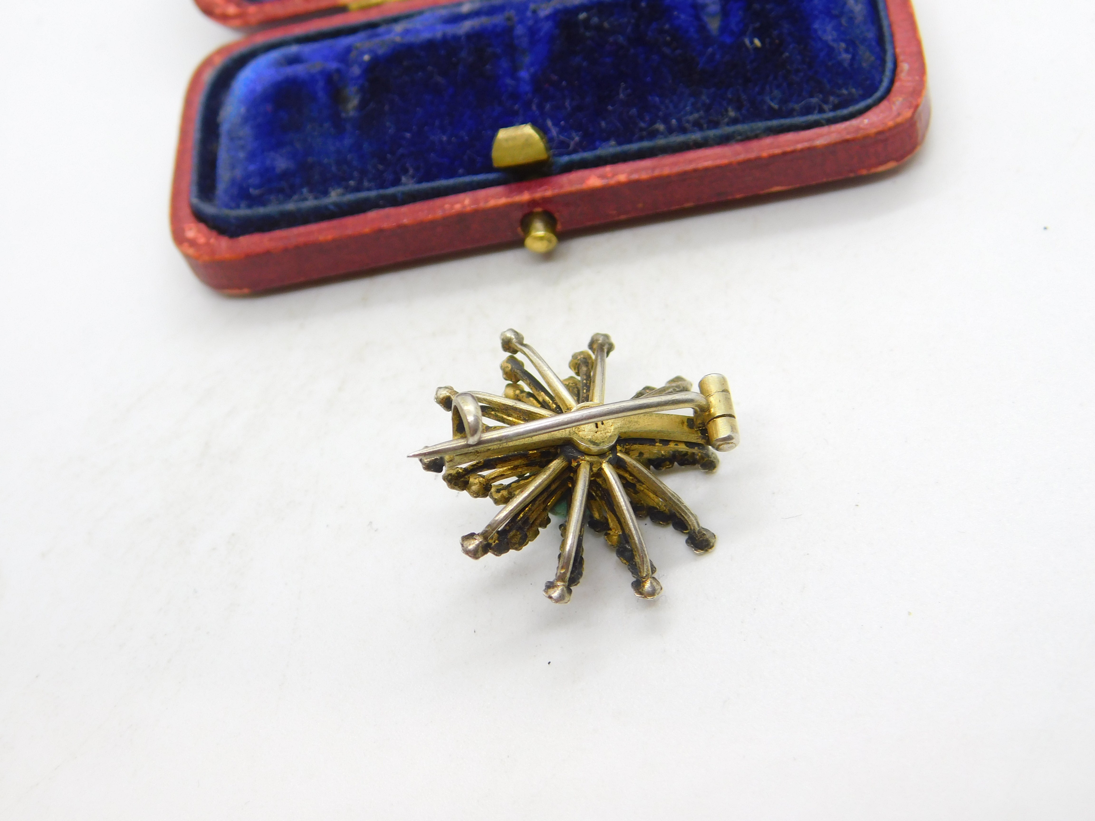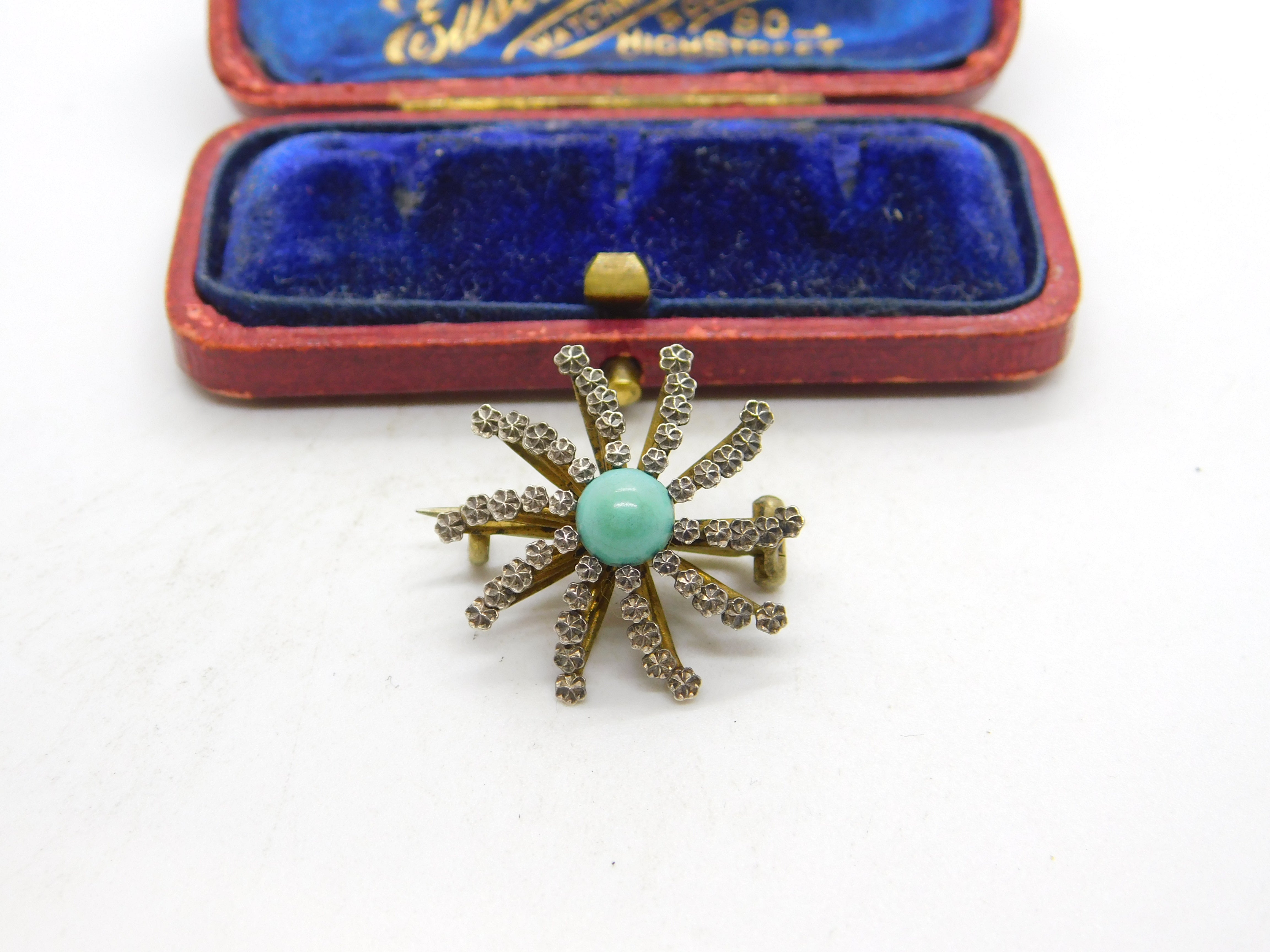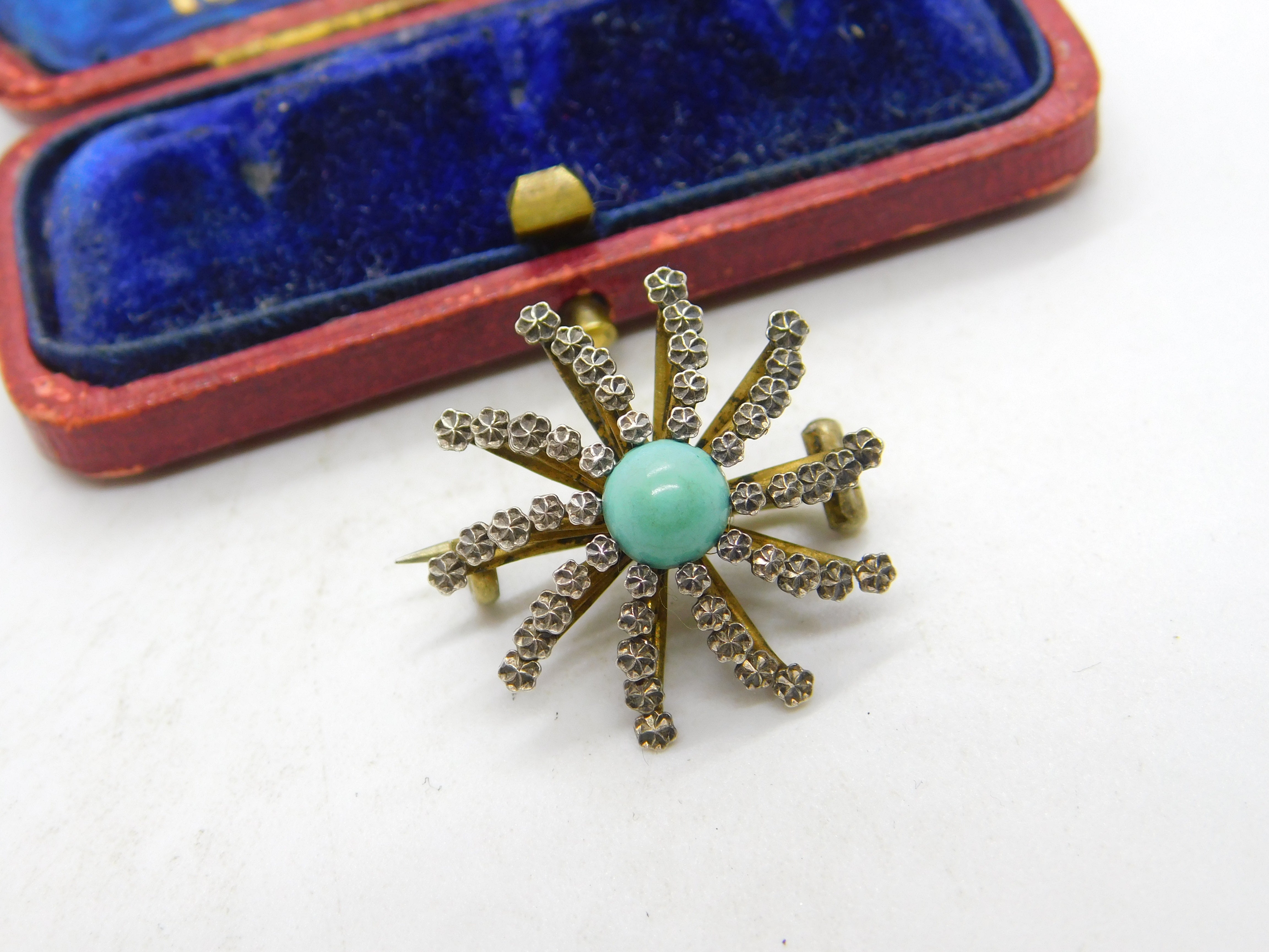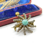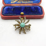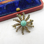 Victorian Sterling Silver Gilt, Pyrite & Turquoise Spray Brooch c1880 Antique