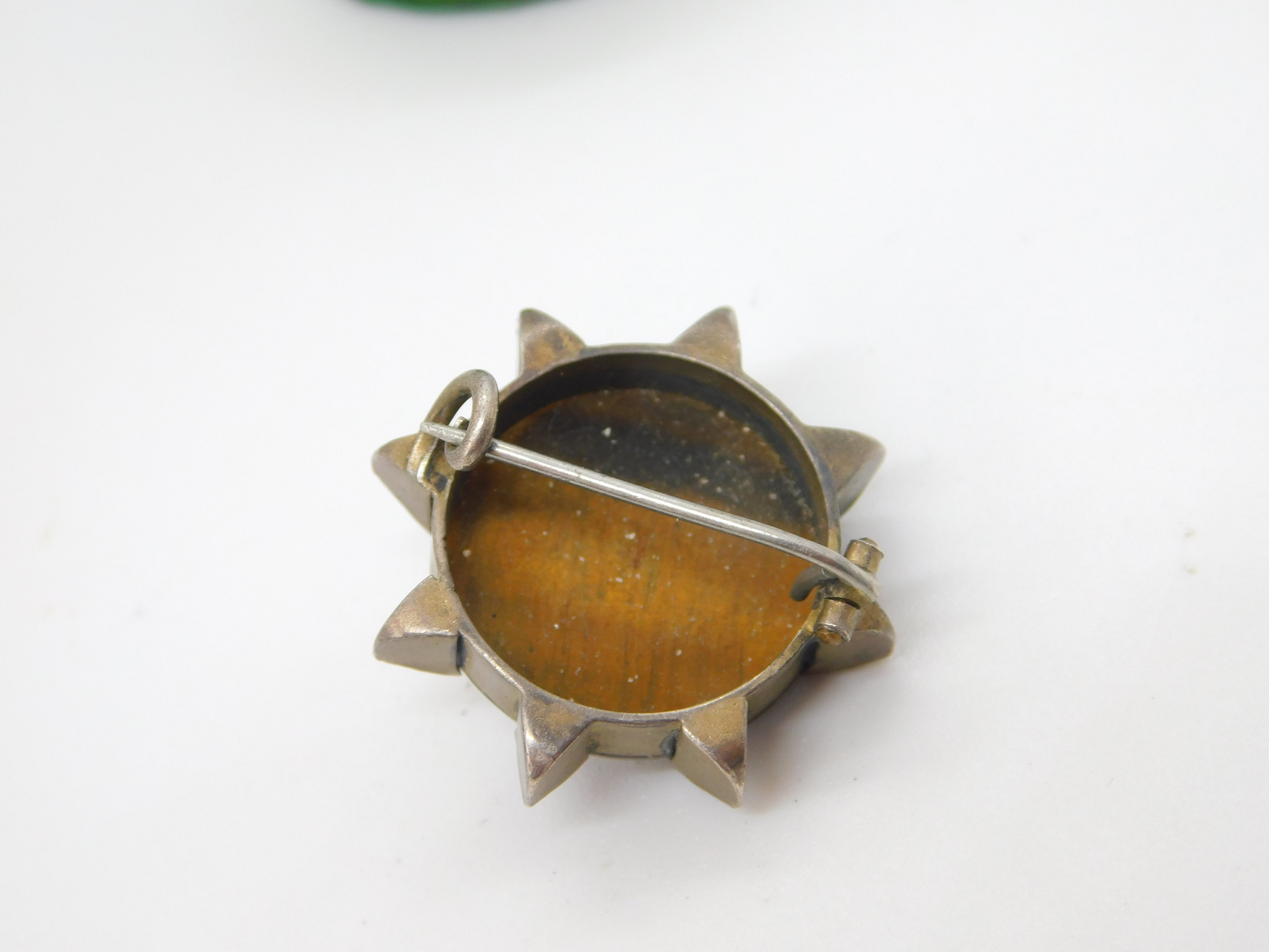 Victorian Sterling Silver Gilt, Seed Pearl & Tiger's Eye Sun Brooch 1880 Antique