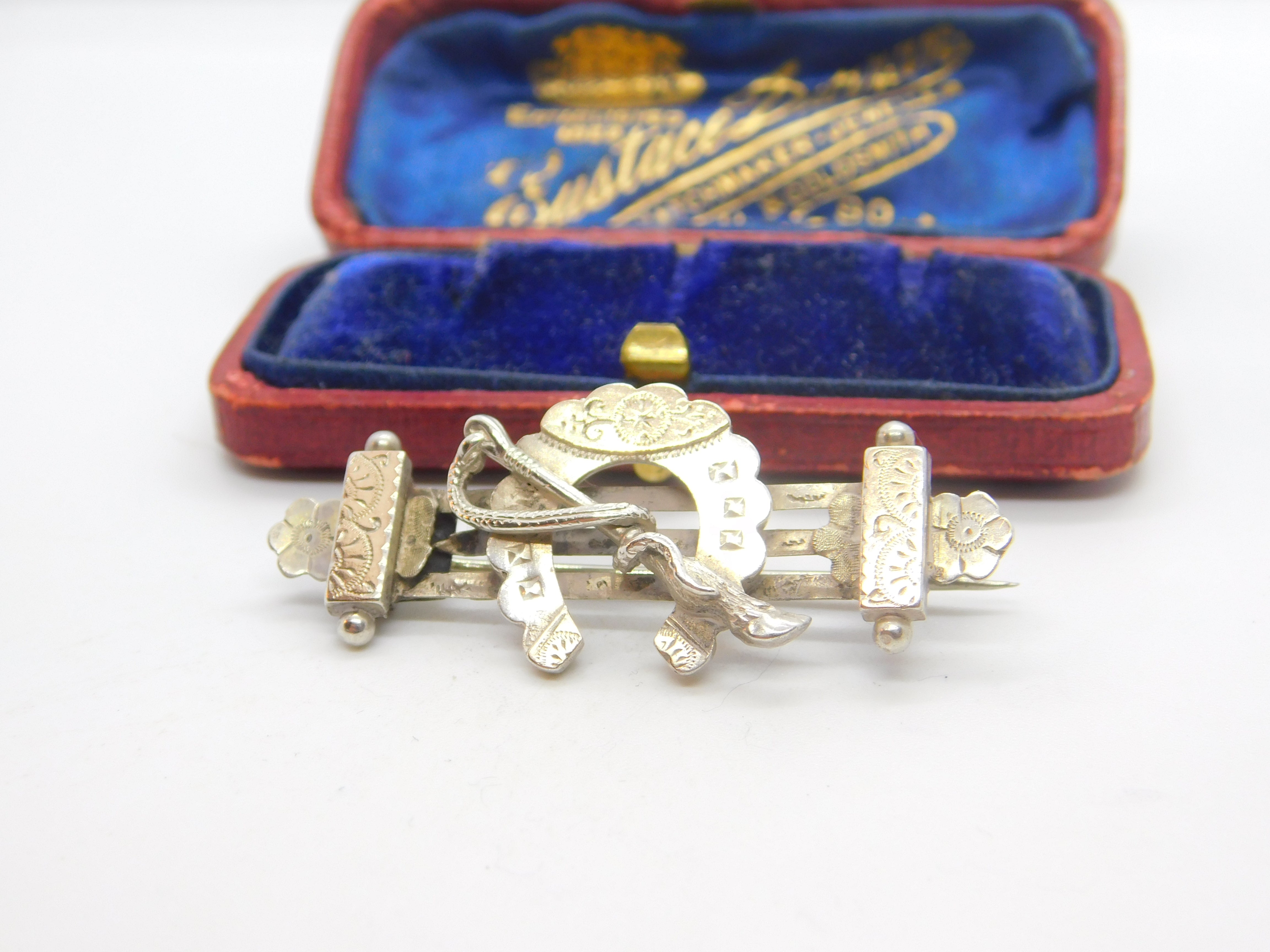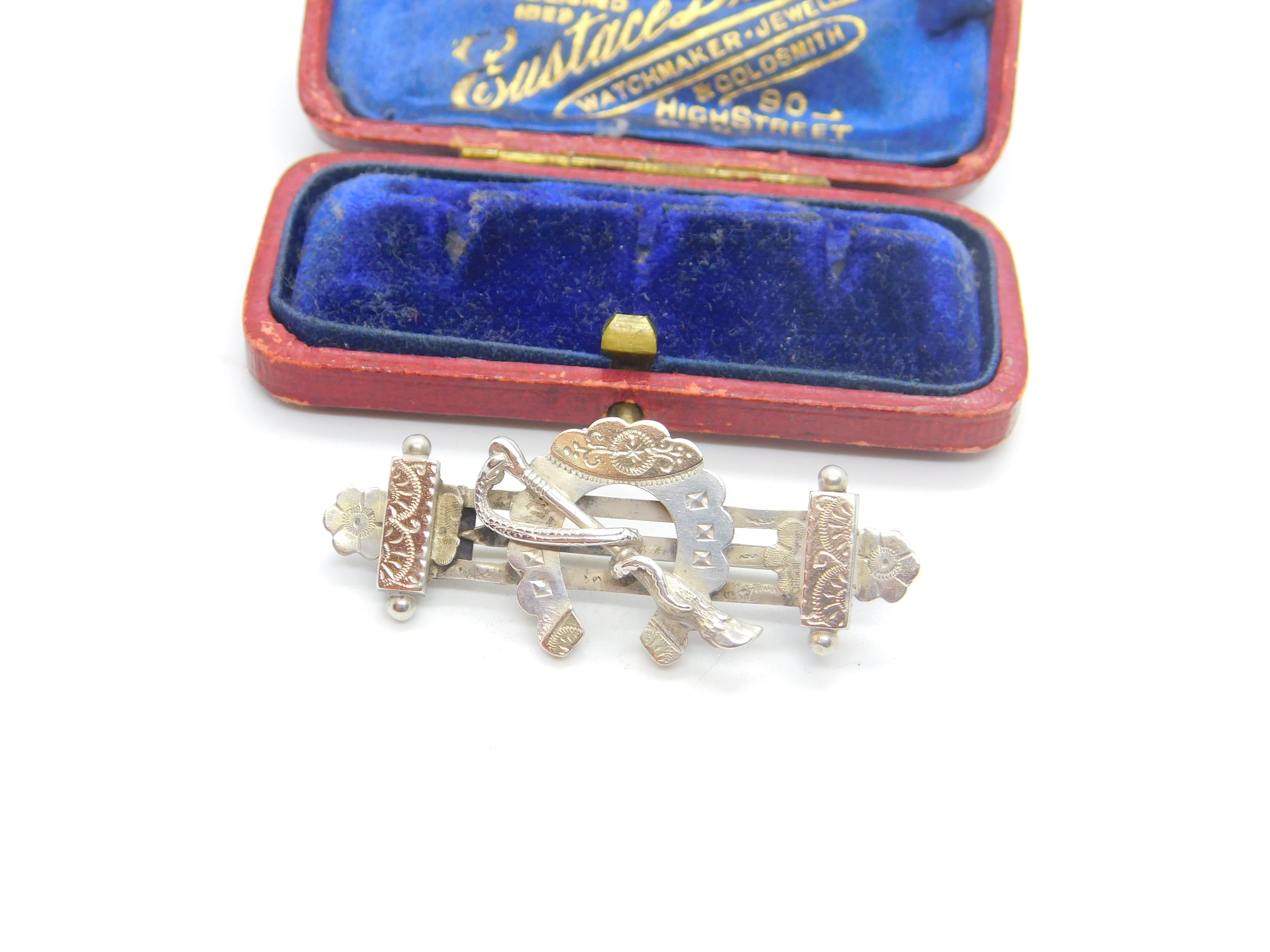 Victorian Sterling Silver Horseshoe, Crop & Showjump Brooch 1888 Birmingham