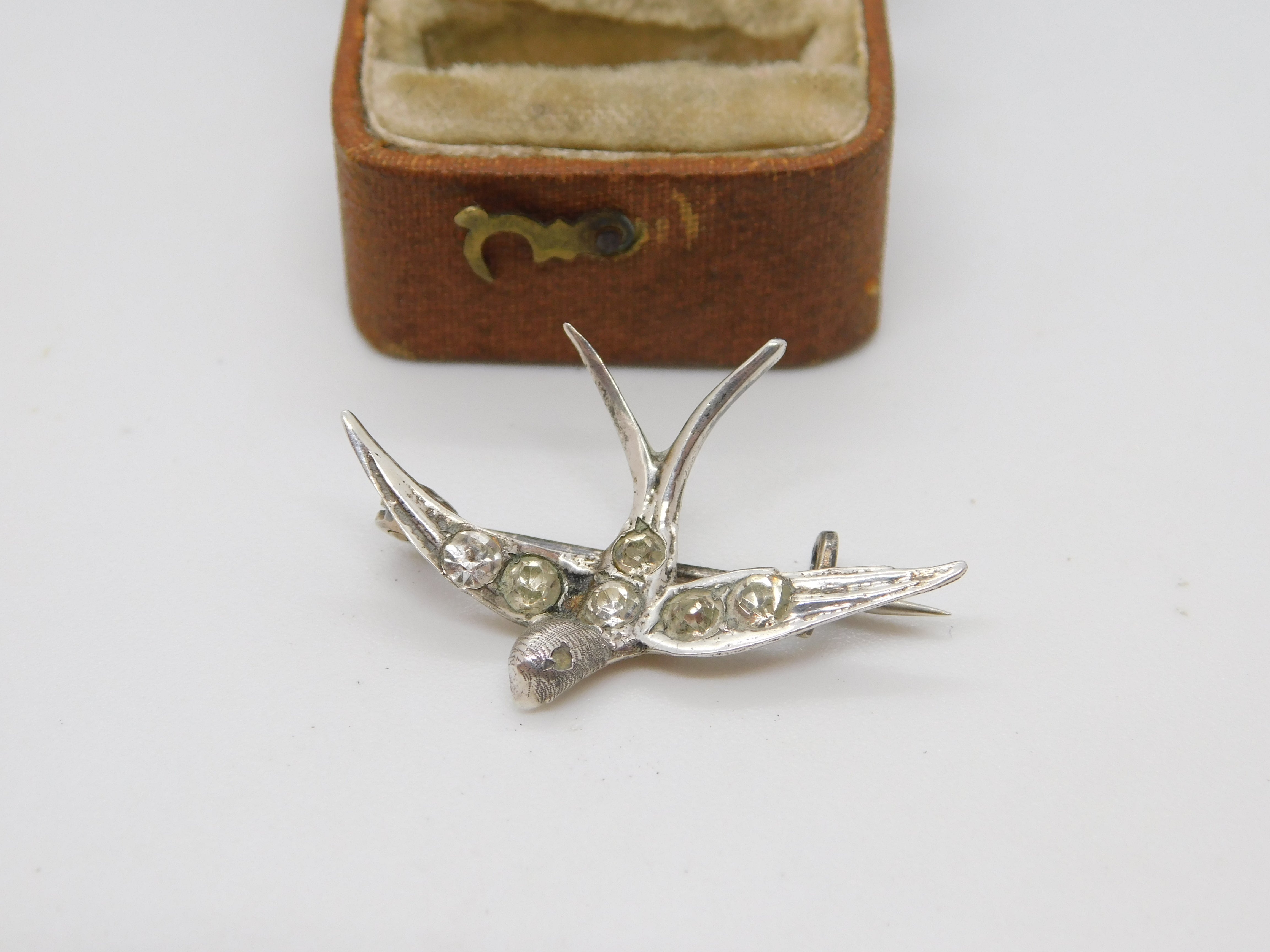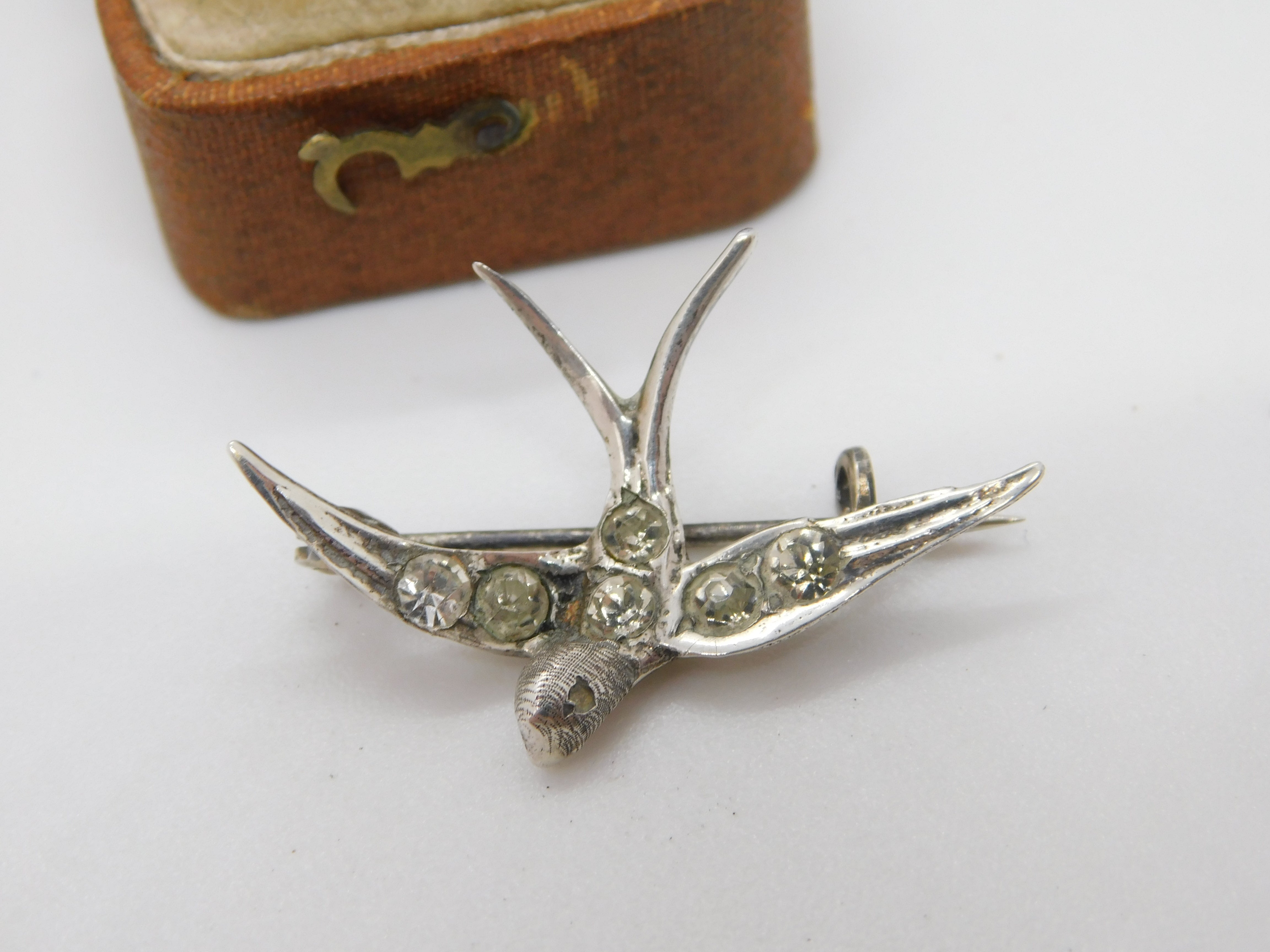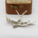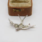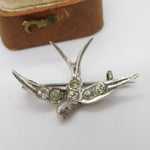 Victorian Sterling Silver Paste Set Swallow Sweetheart Brooch Antique c1890