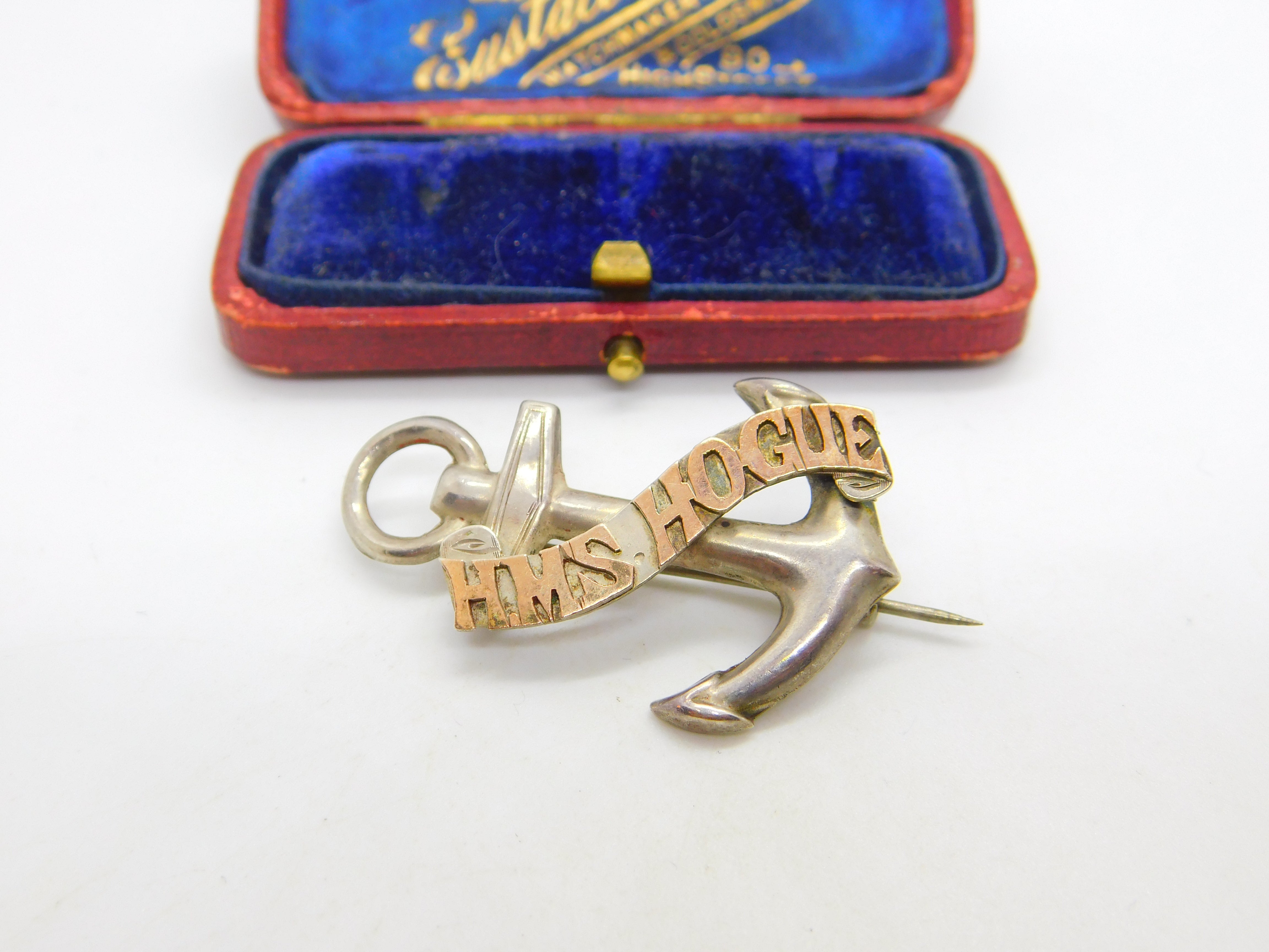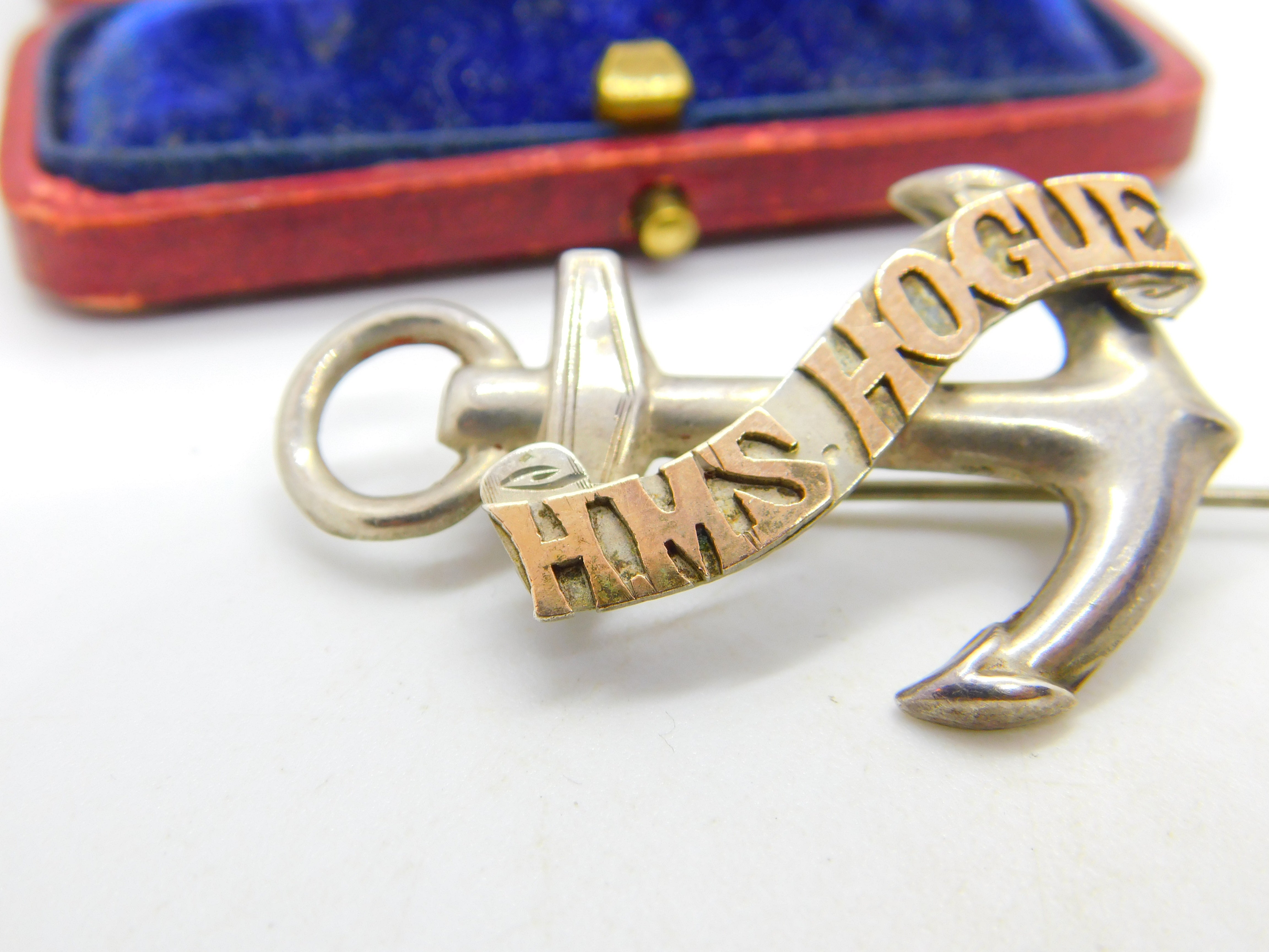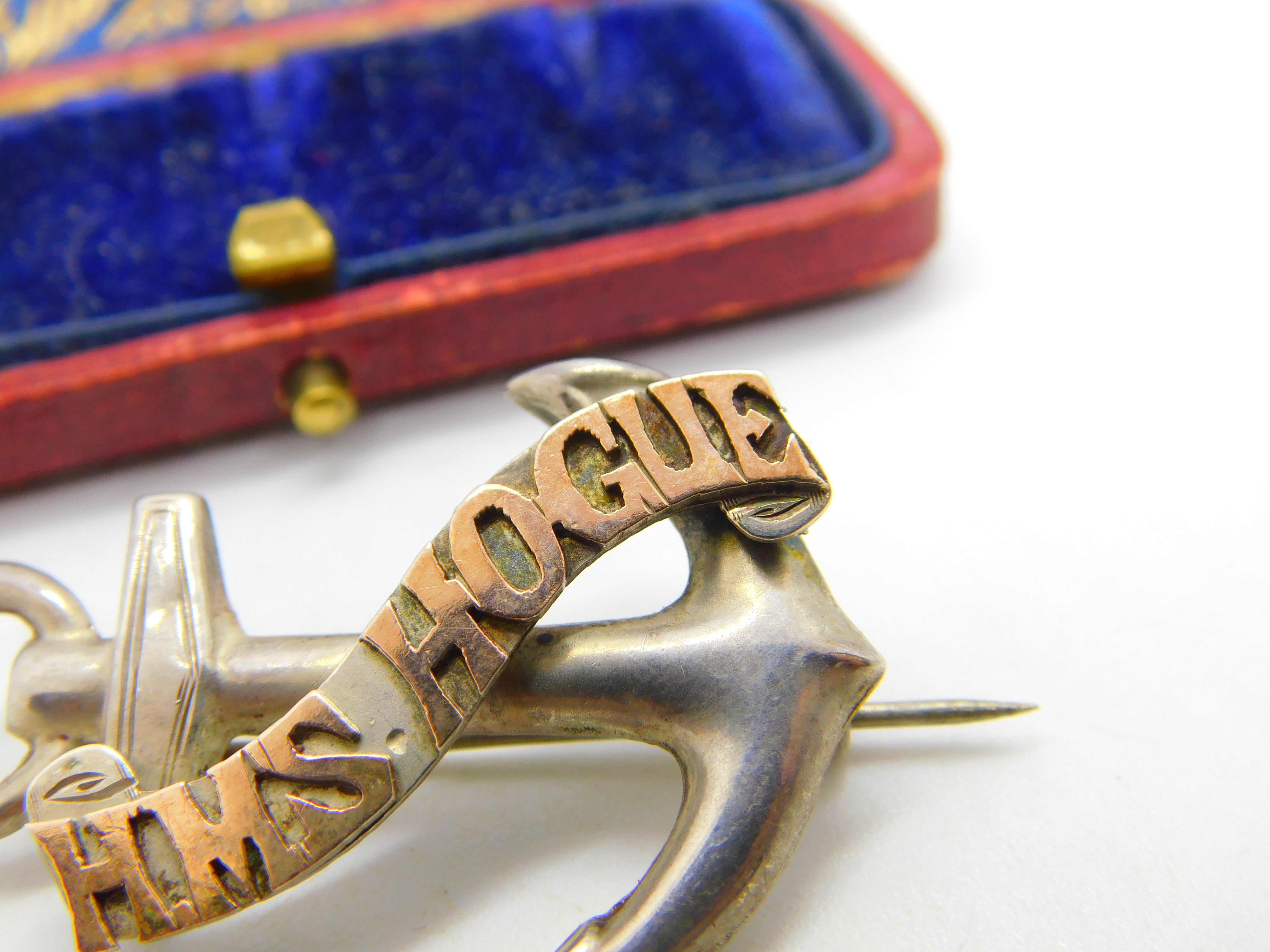 WW1 9ct Gold & Sterling Silver HMS Hogue Sunk Sept. 1914 Anchor Brooch Pin
