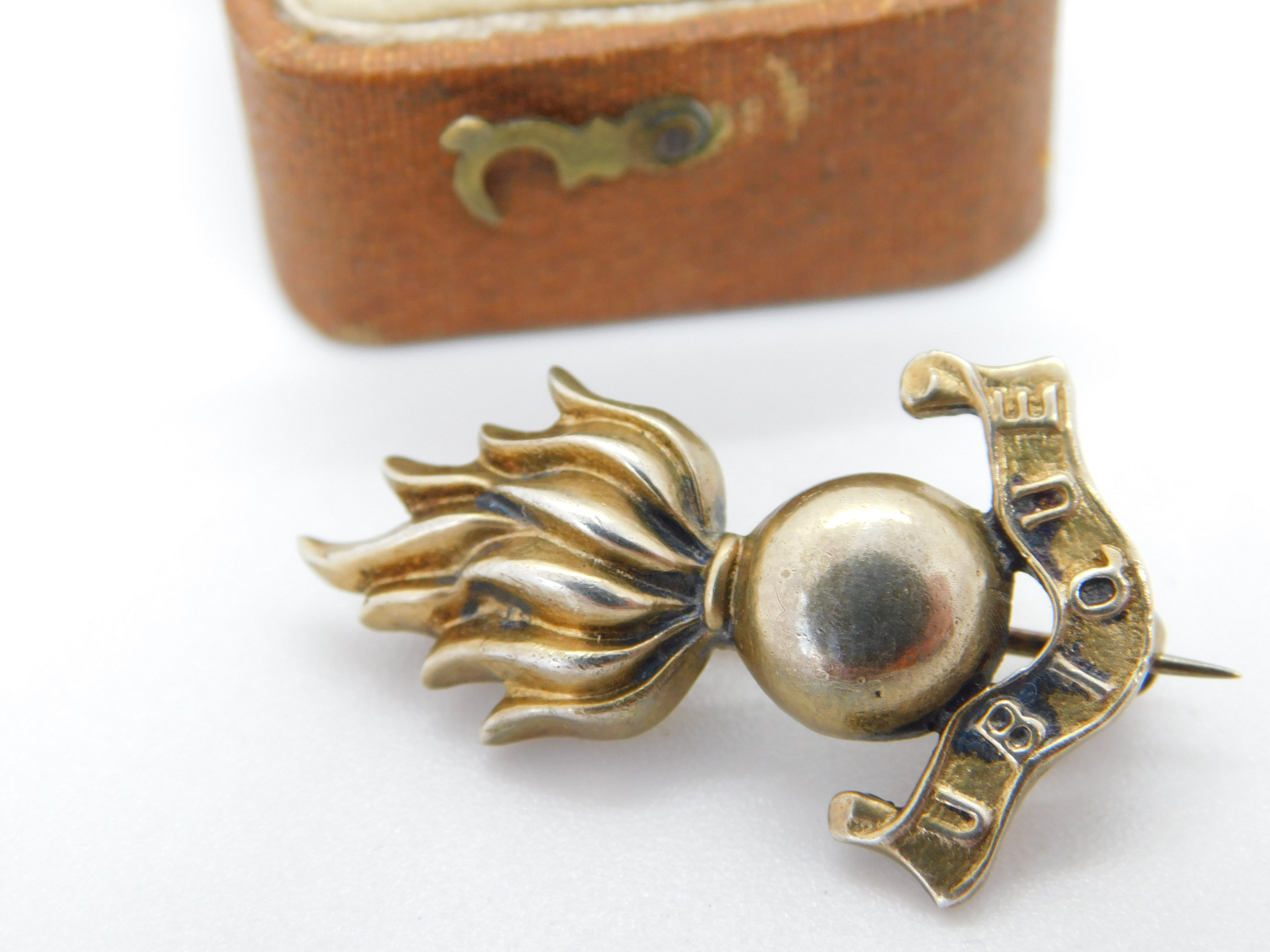 Details: A fantastic and wonderfully designed antique WWI sterling silver gilt Royal Artillery sweetheart brooch with Ubique motto hallmarked London 1915 to the reverse. This is a wonderful item that would make a perfect gift or addition to any collection. The BOX pictured is for PRESENTATION ONLY and is NOT included in the listings but used to frame the pictures unless specifically stated otherwise.
