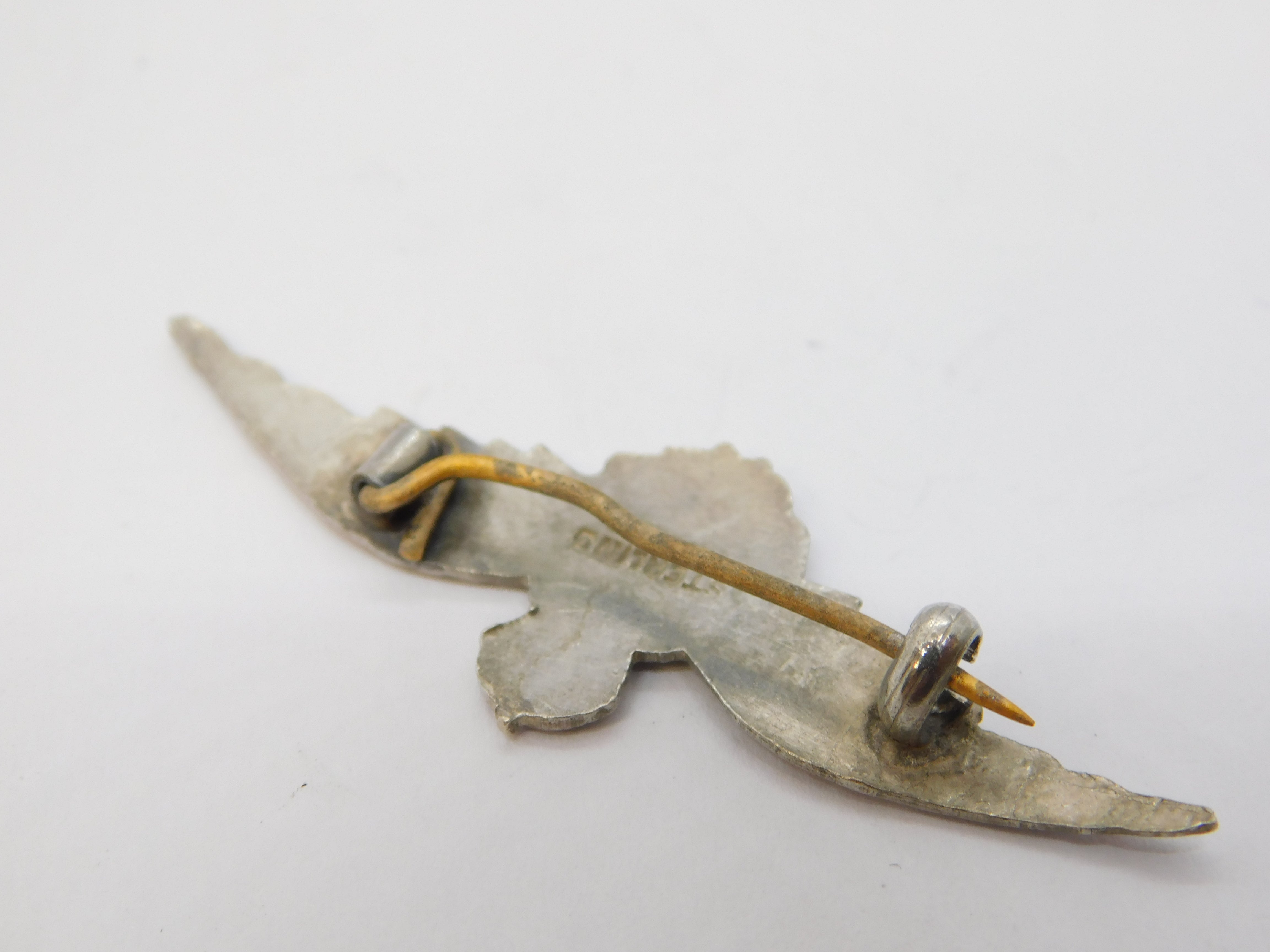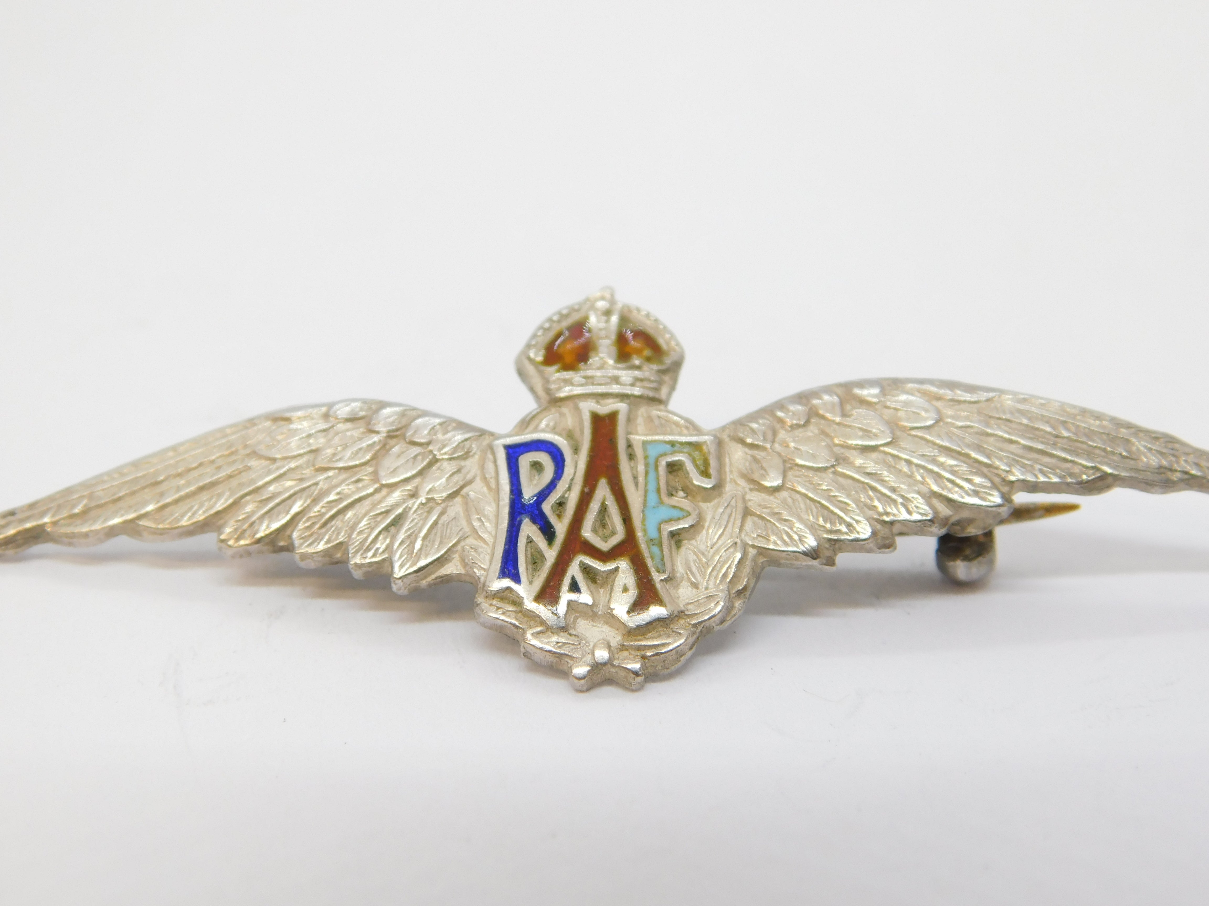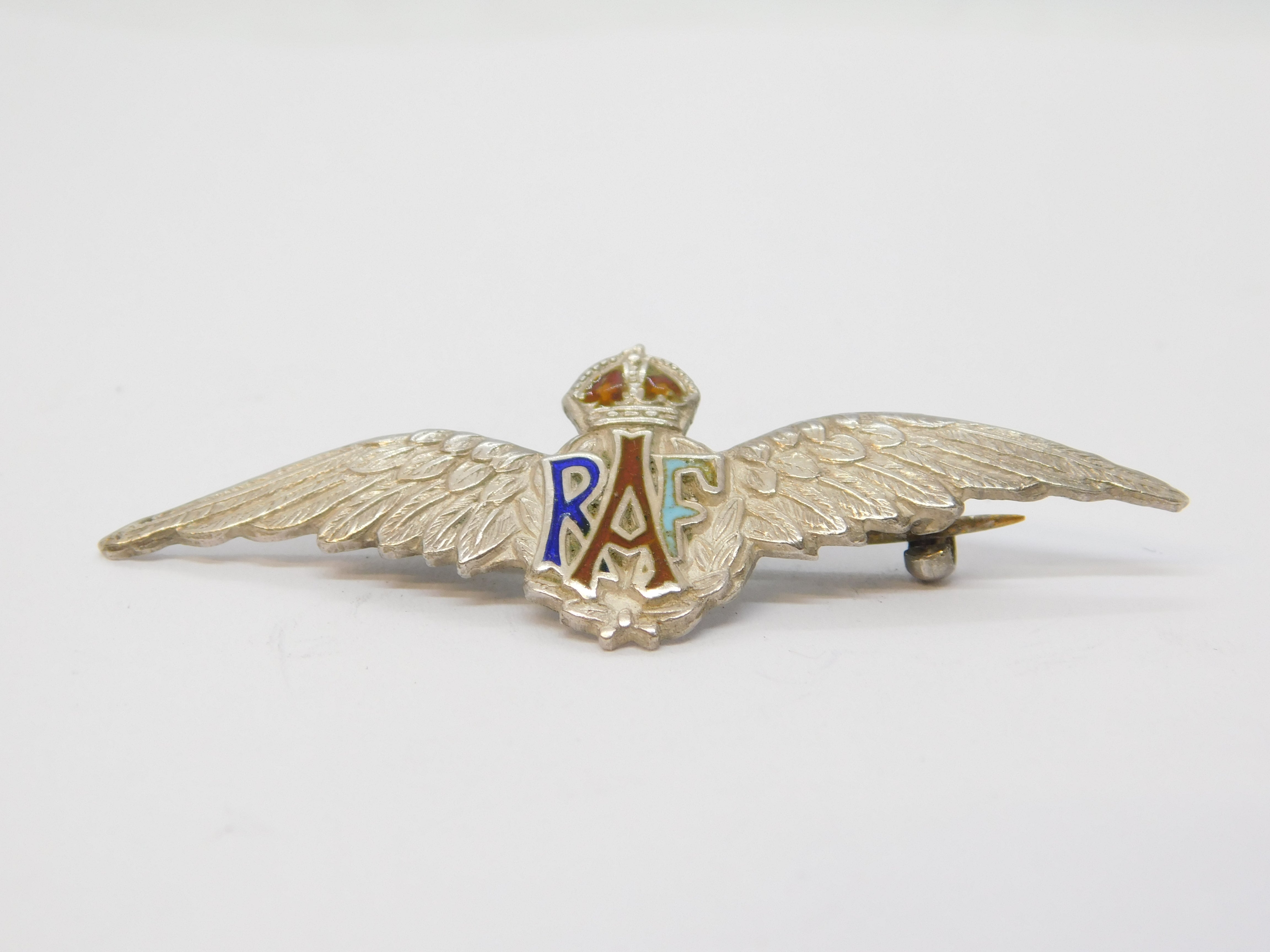 WWII-era Sterling Silver & Enamel RAF Wings Sweetheart Brooch Antique c1940