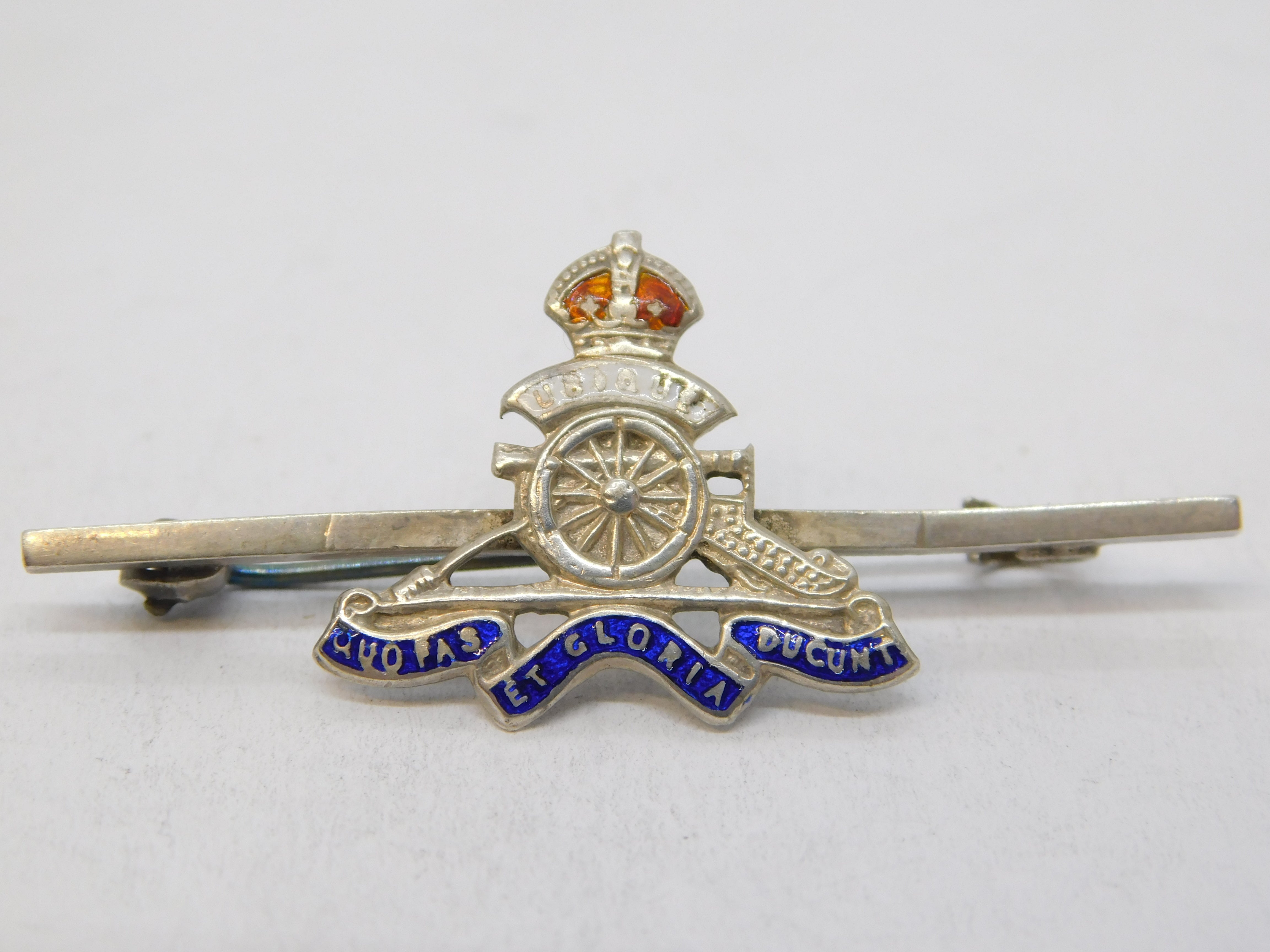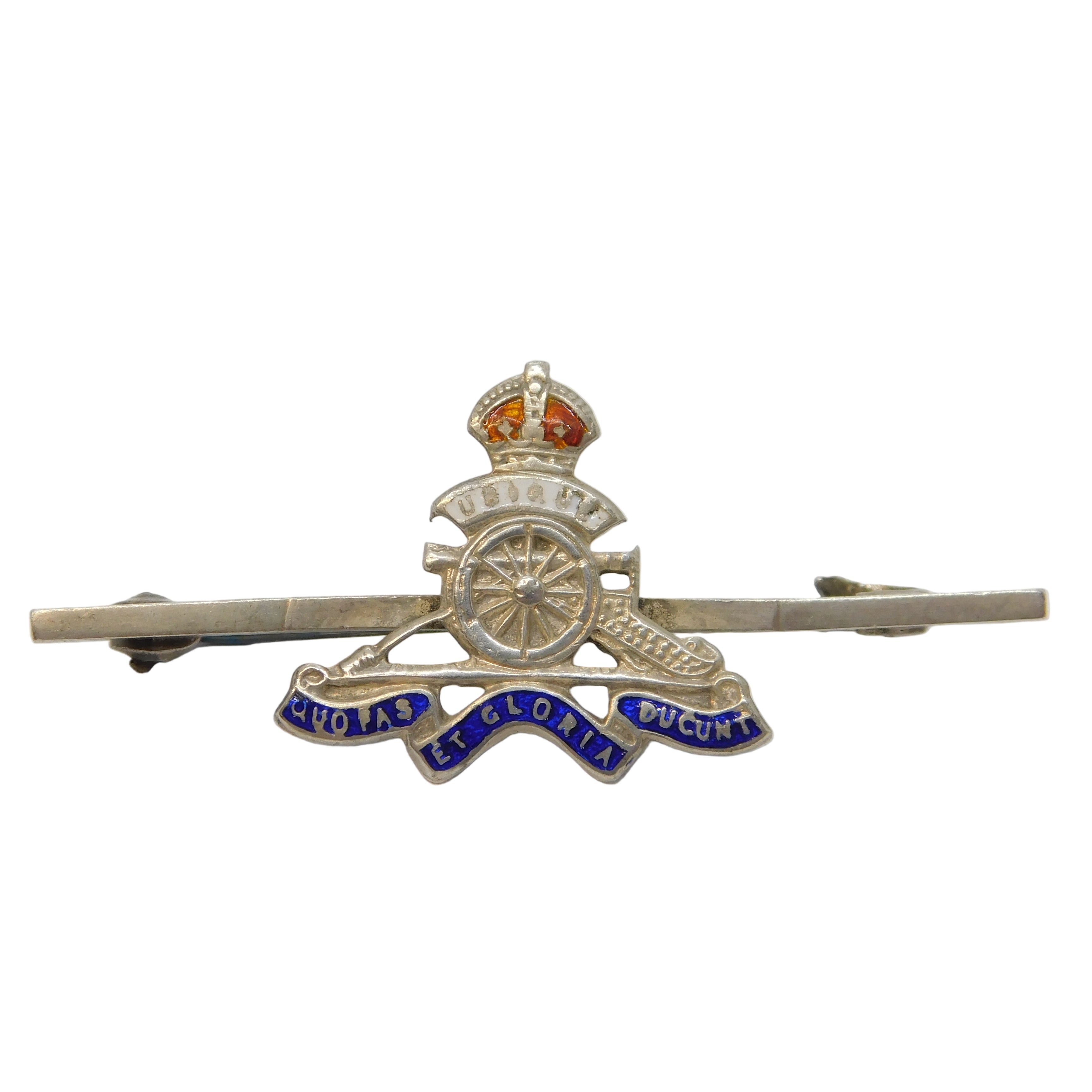WWII-era Sterling Silver & Enamel Royal Artillery Sweetheart Brooch Antique