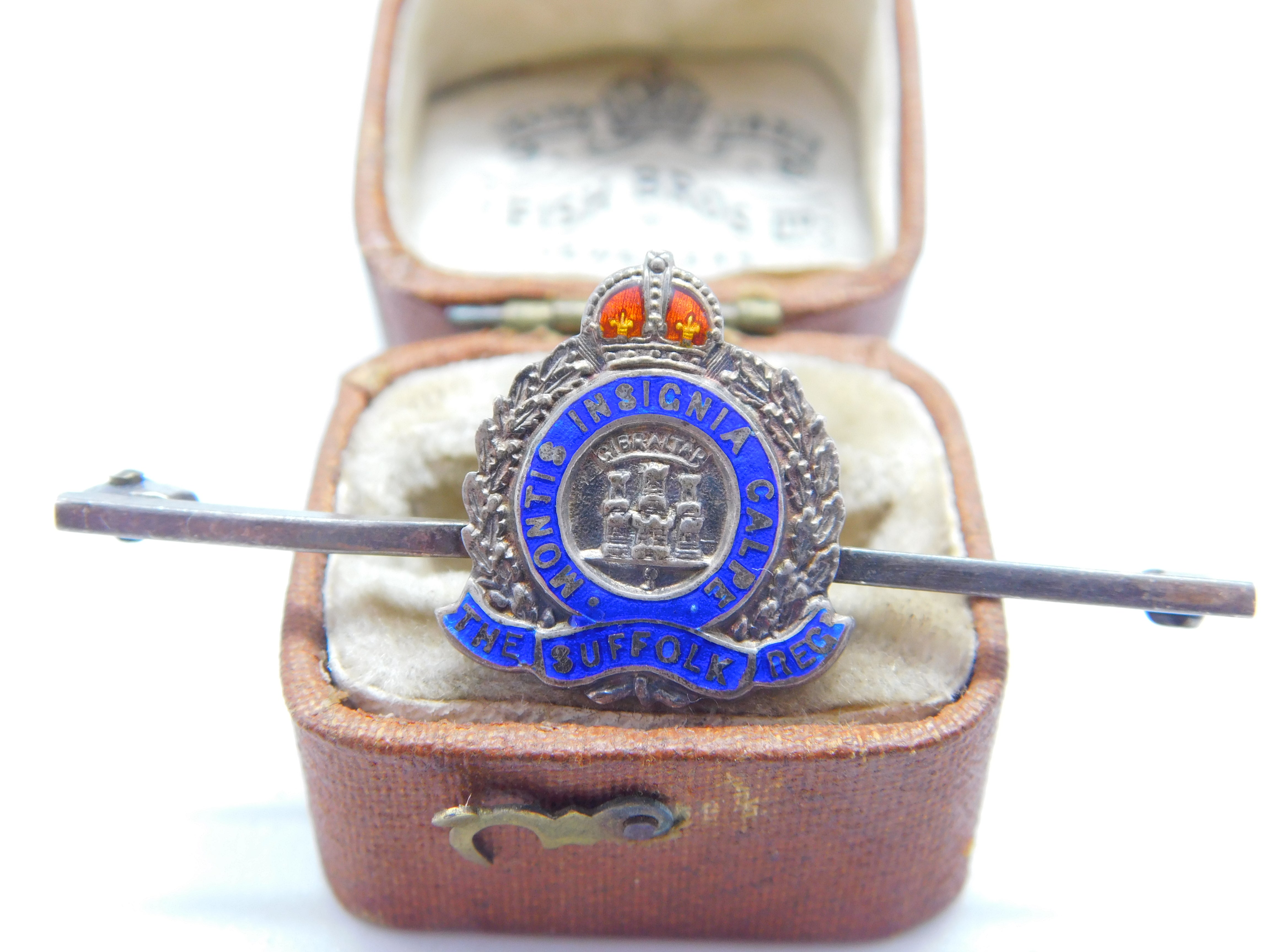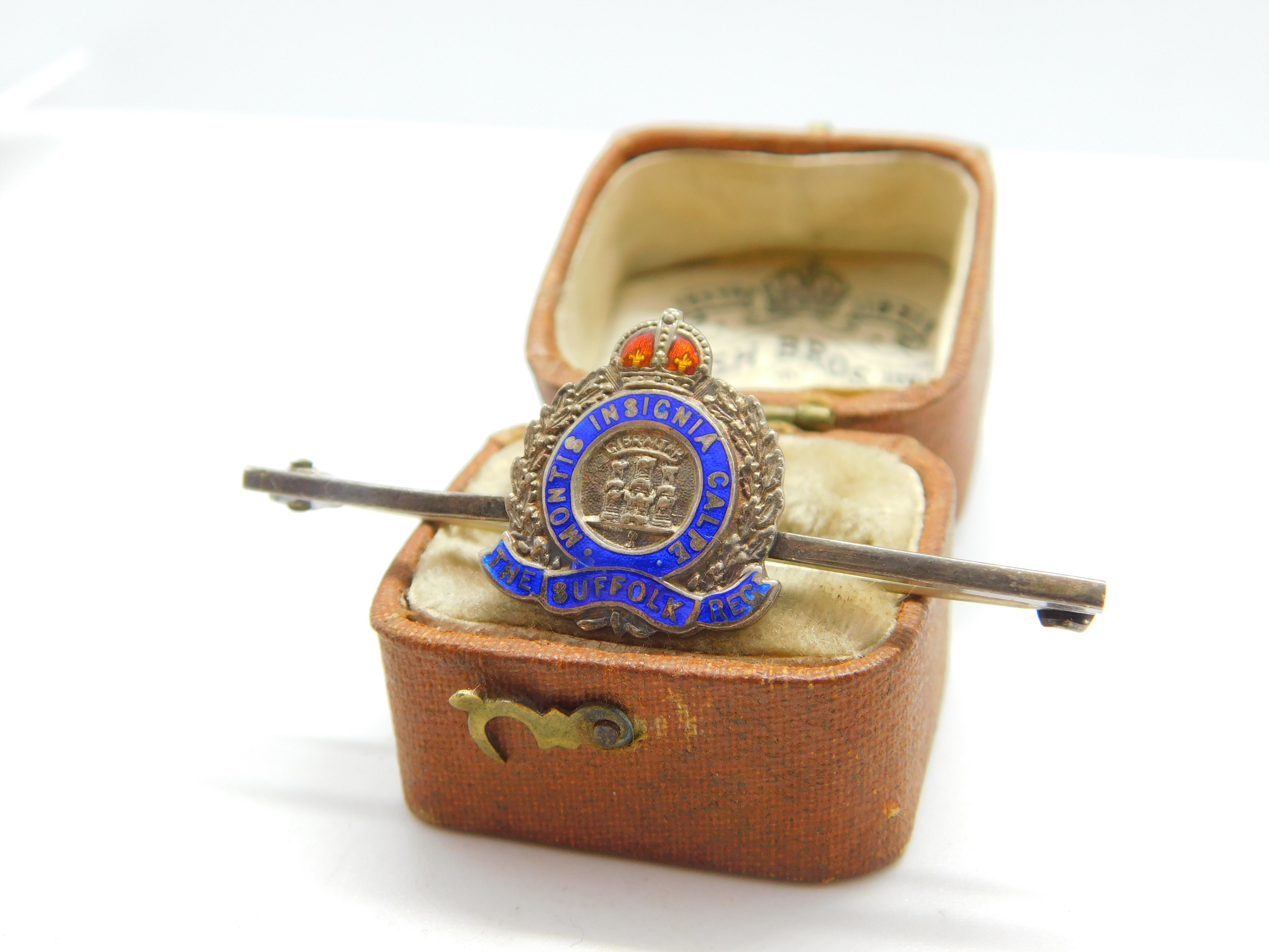 WWII-era Sterling Silver & Enamel Suffolk Regiment Sweetheart Brooch Antique