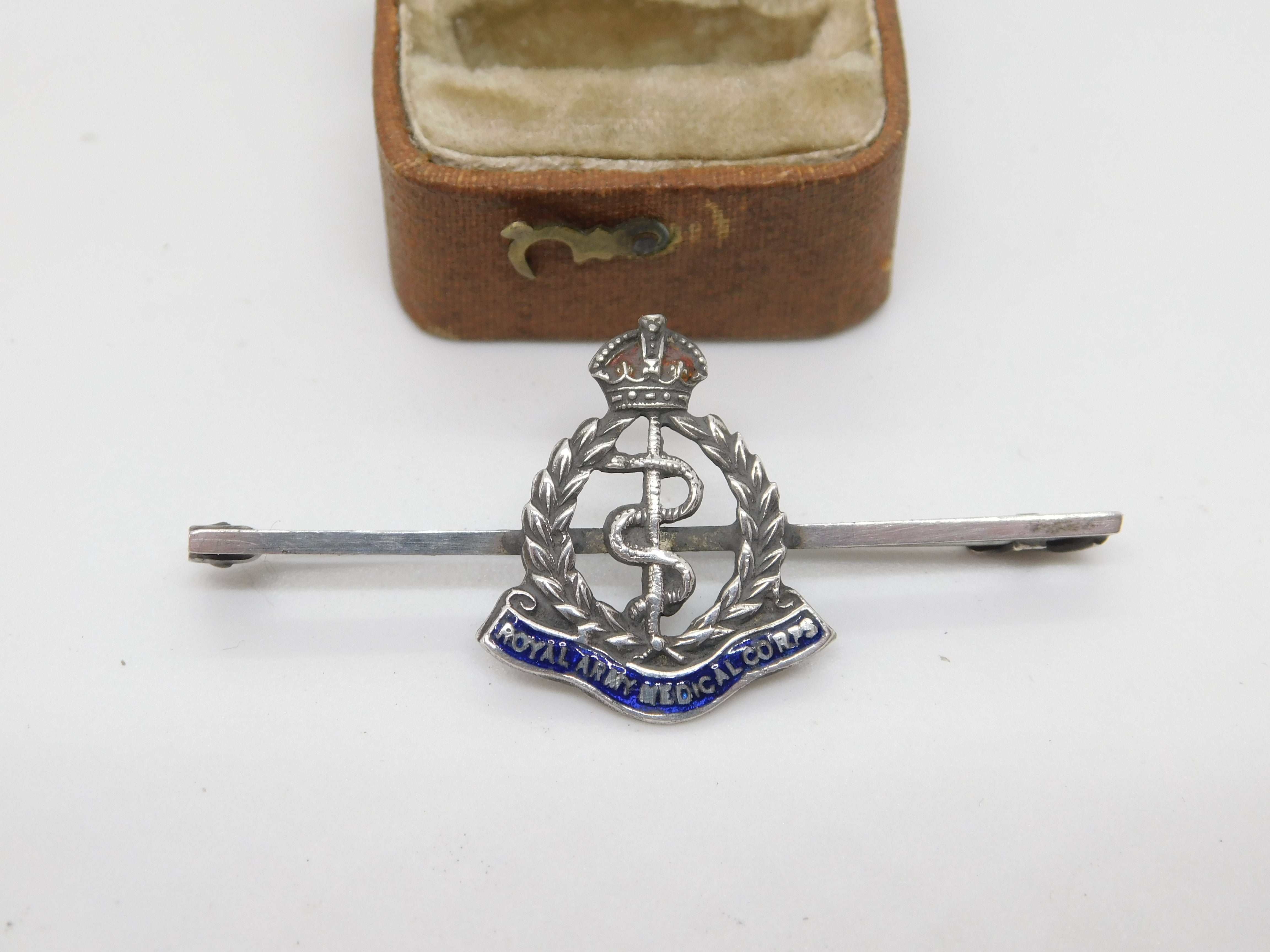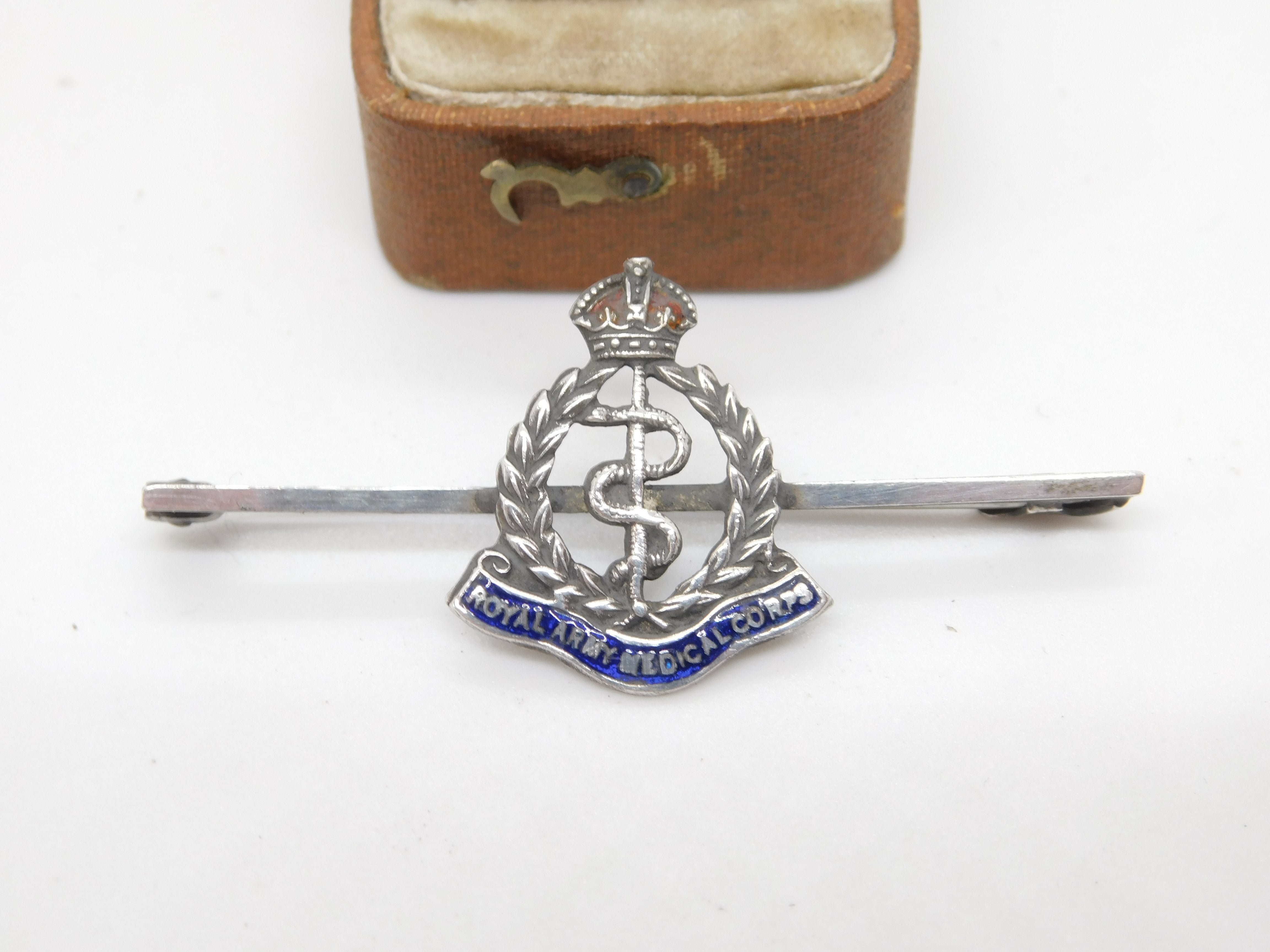 WWII Sterling Silver Enamel Royal Army Medical Corps Brooch TLM Antique