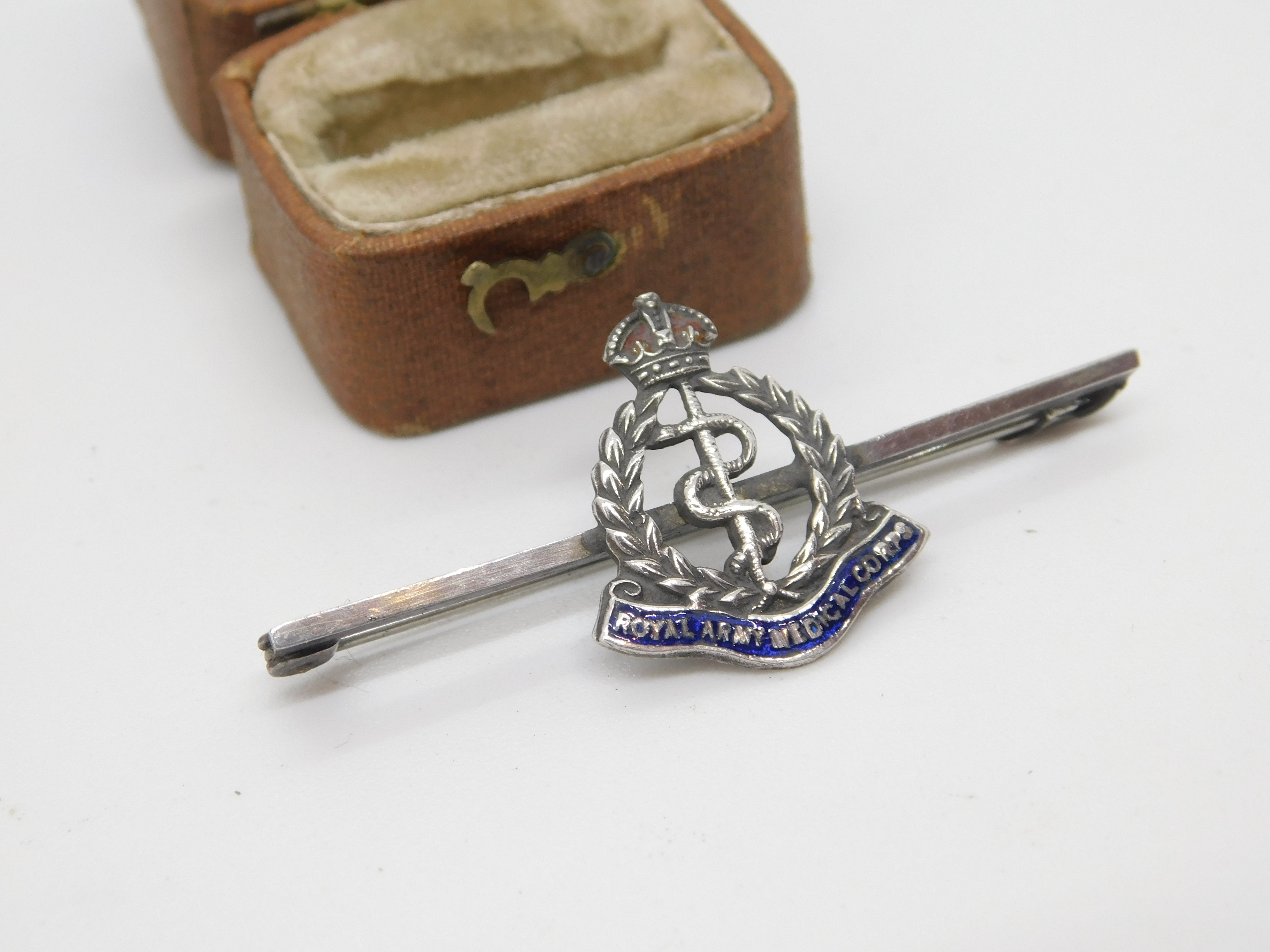 Details: A fantastic and wonderfully designed antique WWII sterling silver enamel Royal Army Medical Corps sweetheart brooch hallmarked to the everse by TLM c1940. This is a wonderful item that would make a perfect gift or addition to any collection. The BOX pictured is for PRESENTATION ONLY and is NOT included in the listings but used to frame the pictures unless specifically stated otherwise.