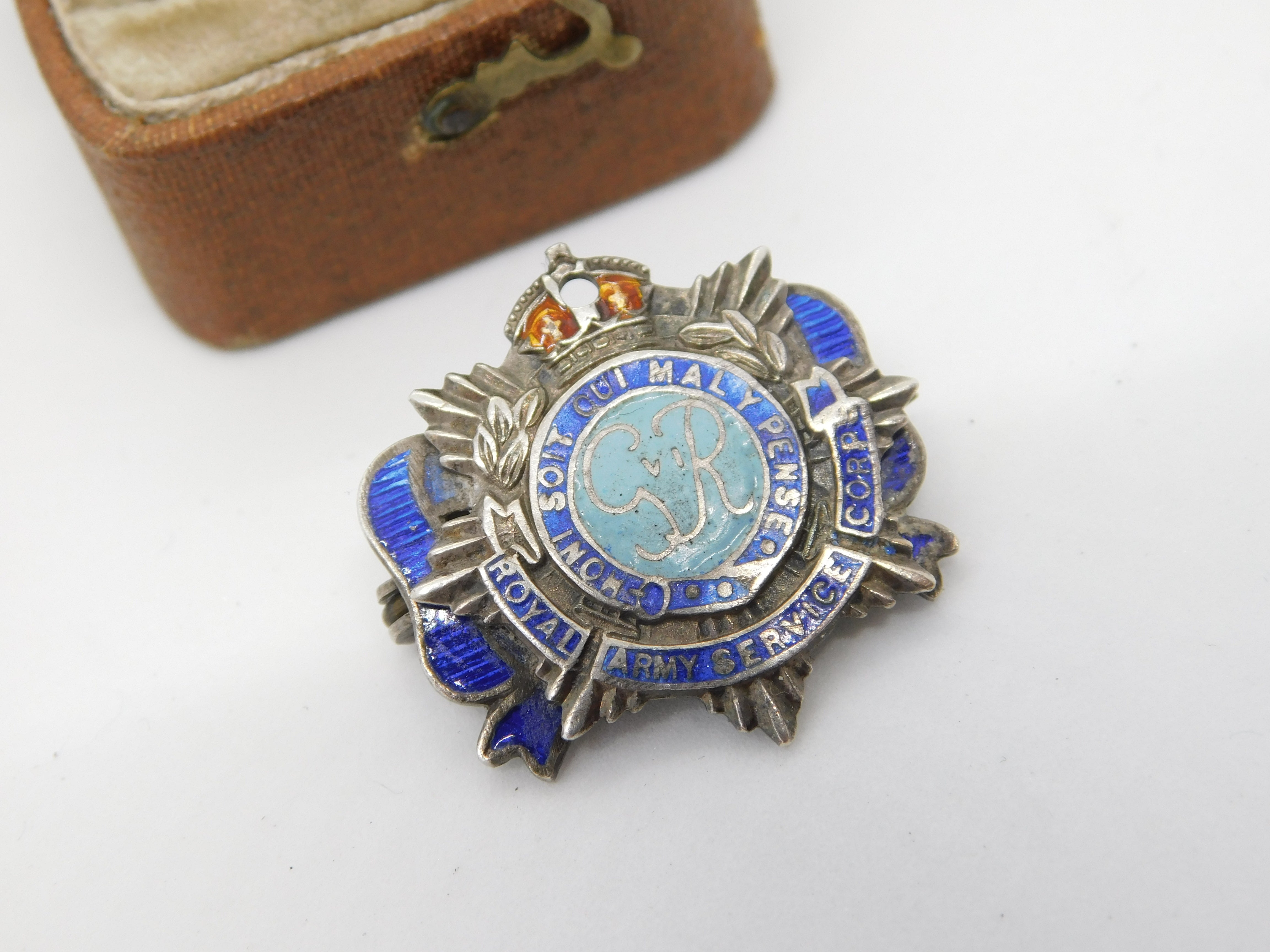 WWII Sterling Silver Enamel Royal Army Service Corps Sweetheart Brooch Antique