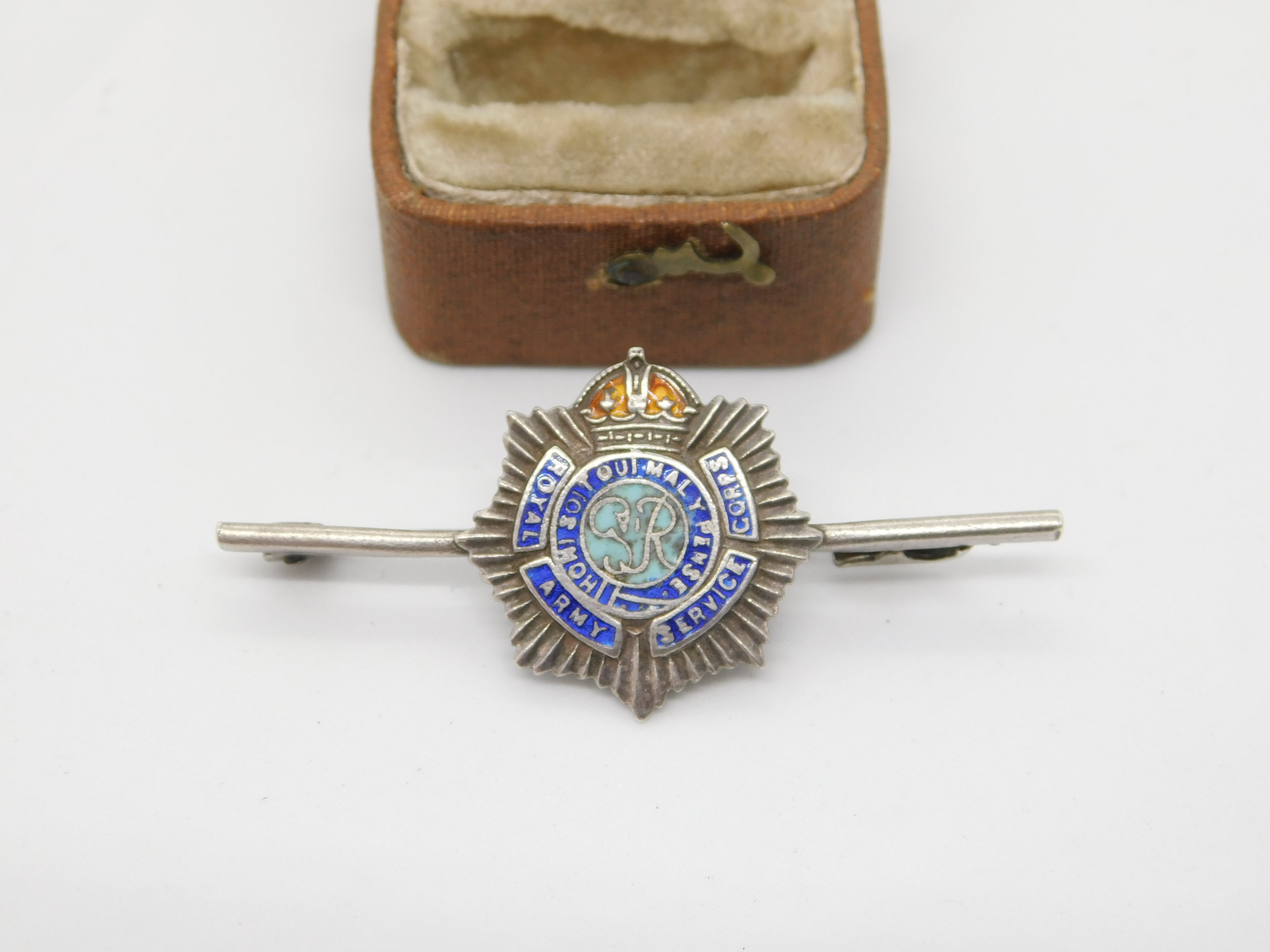 WWII Sterling Silver Enamel Royal Army Service Corps Sweetheart Brooch Antique