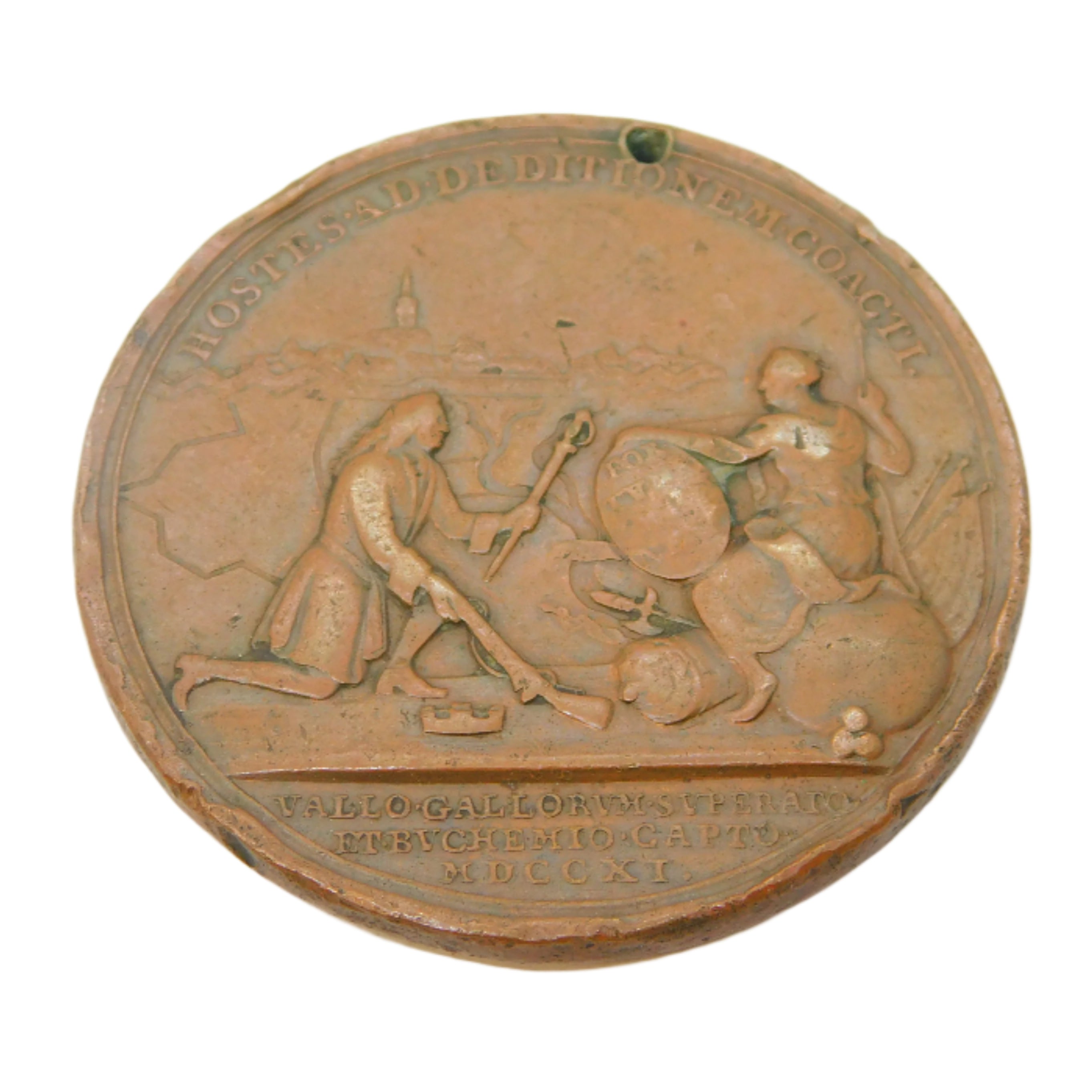Queen Anne Copper 'Capture of Bouchain' Celebration Medal Antique 1711