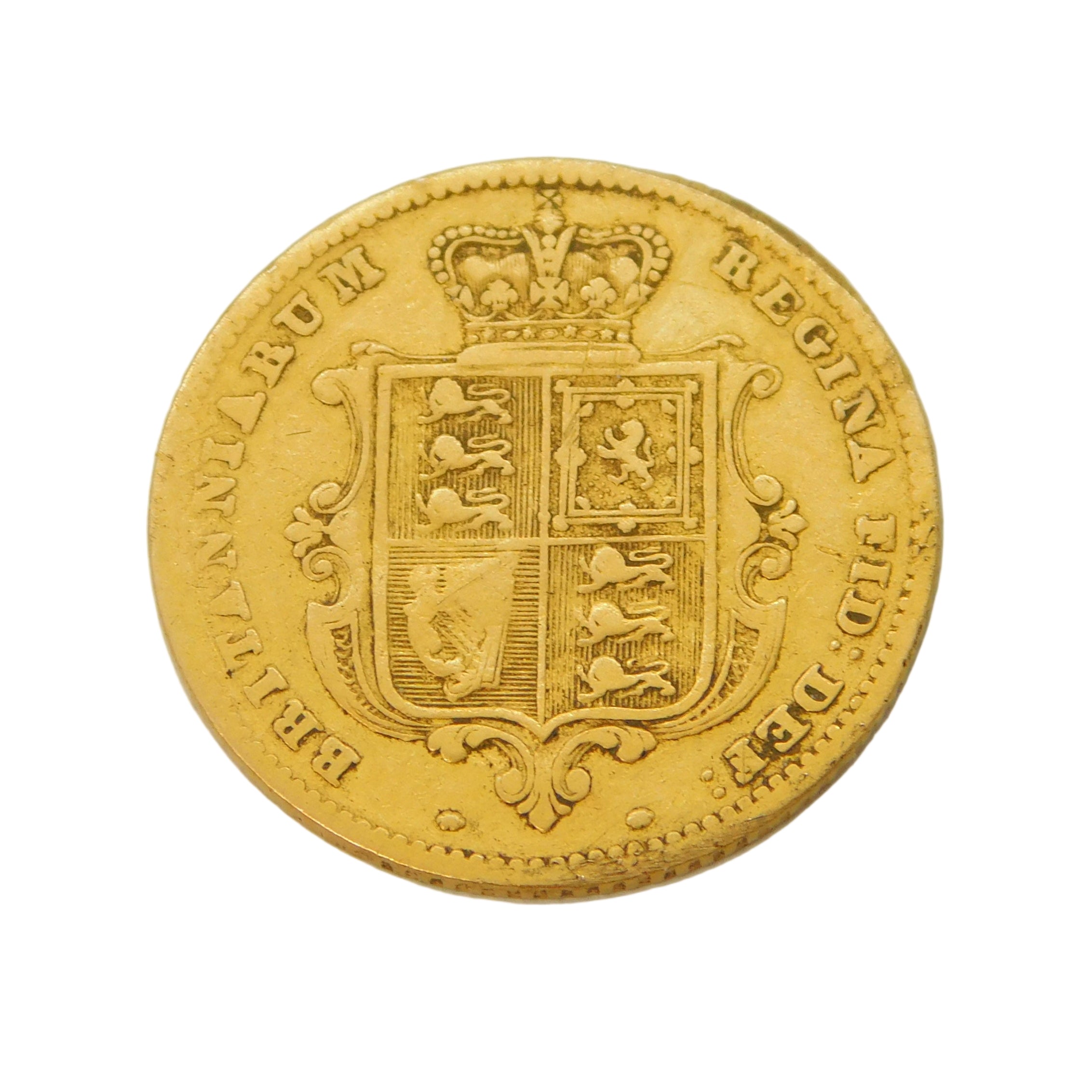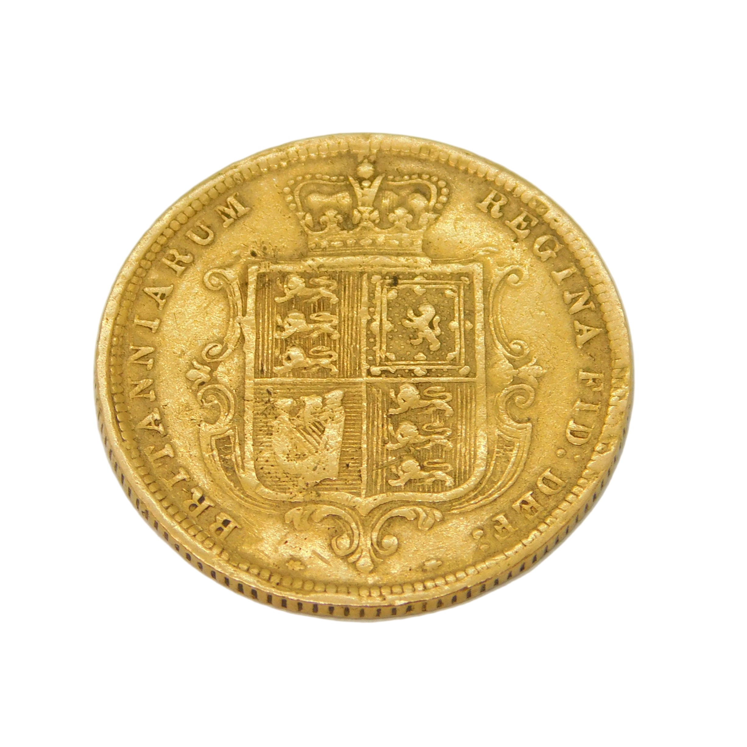 Queen Victoria 22ct Gold Shield-Back Half Sovereign Coin Antique 1858