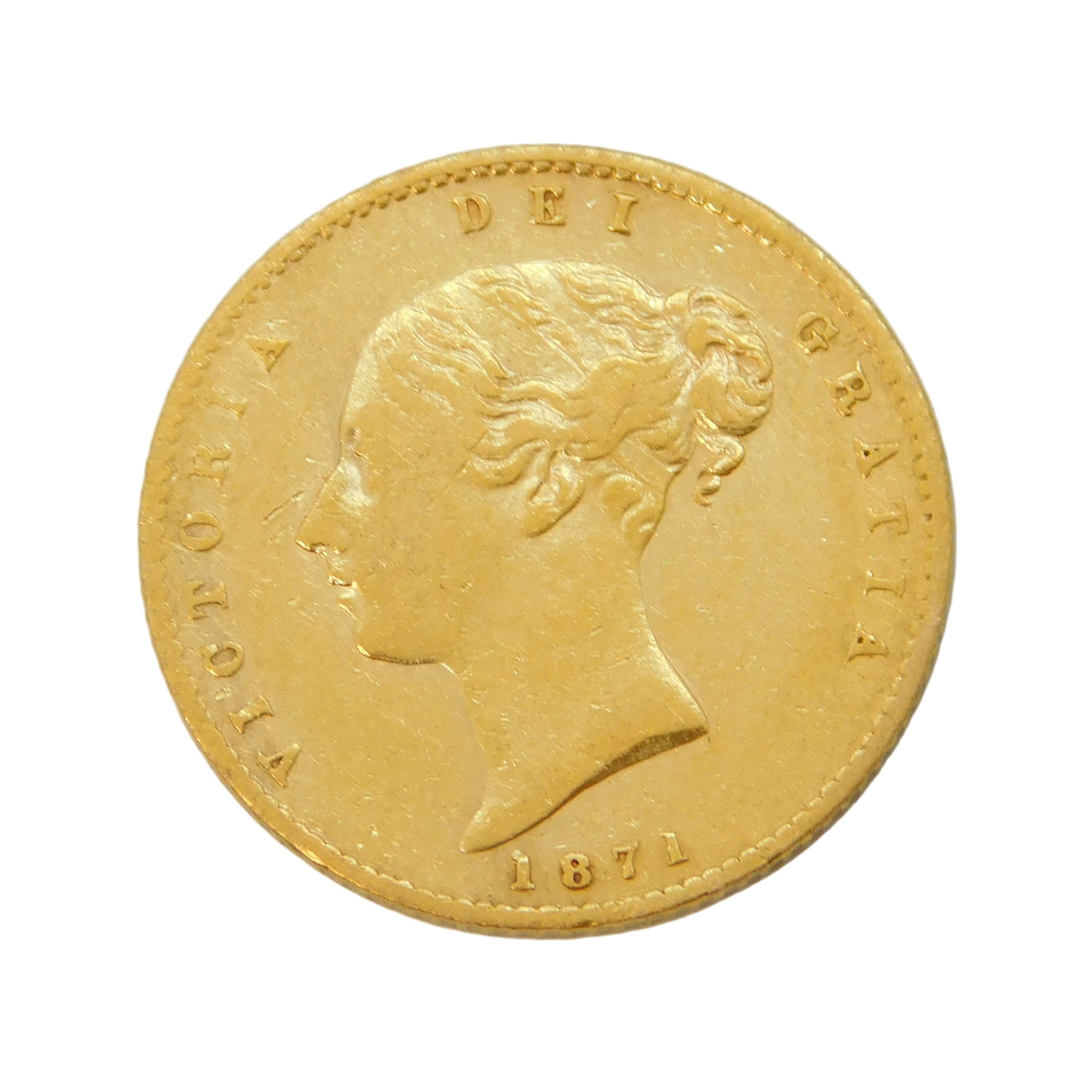 Queen Victoria 22ct Yellow Gold Shield-Back Half Sovereign Coin 1871 Antique