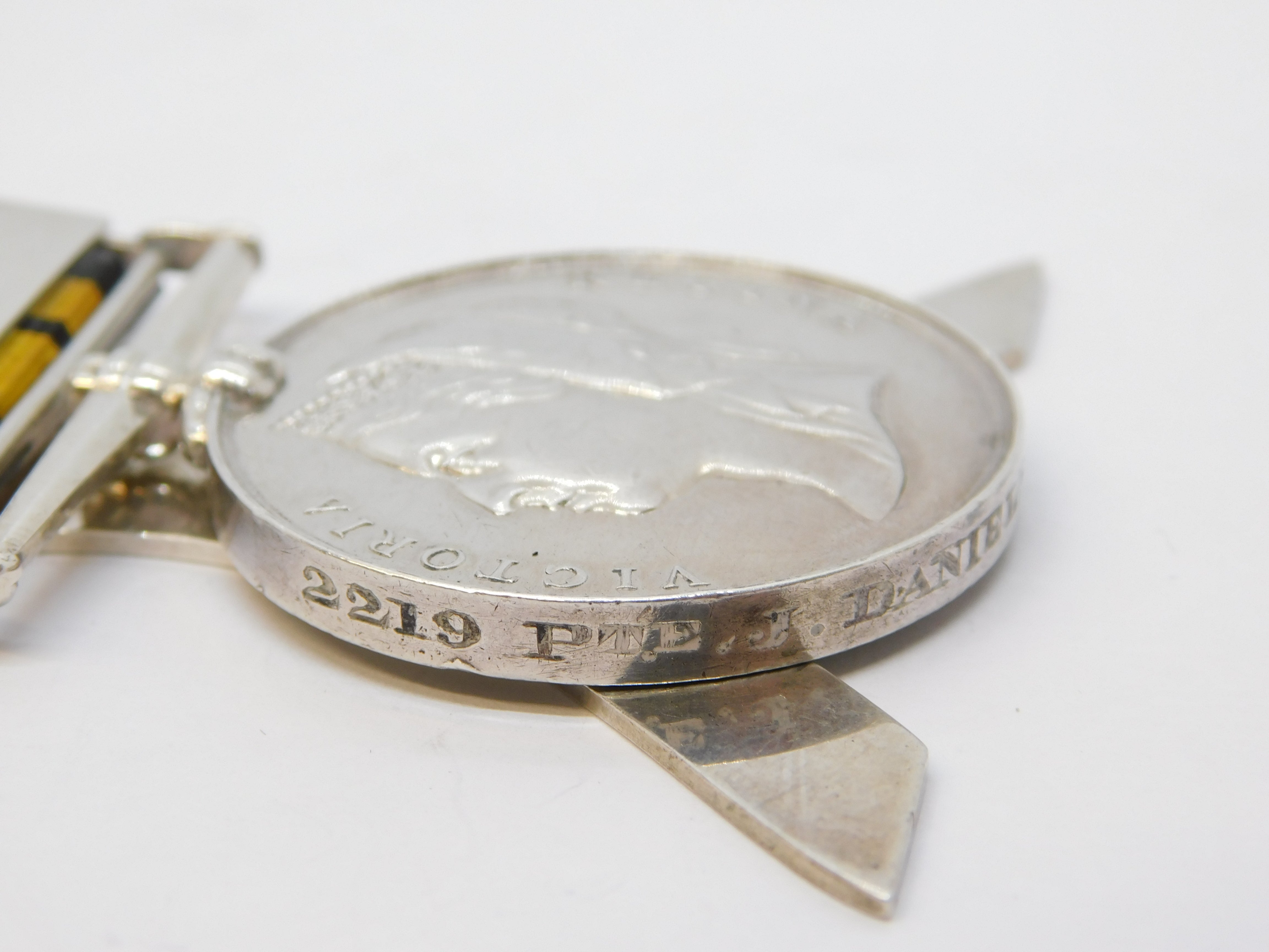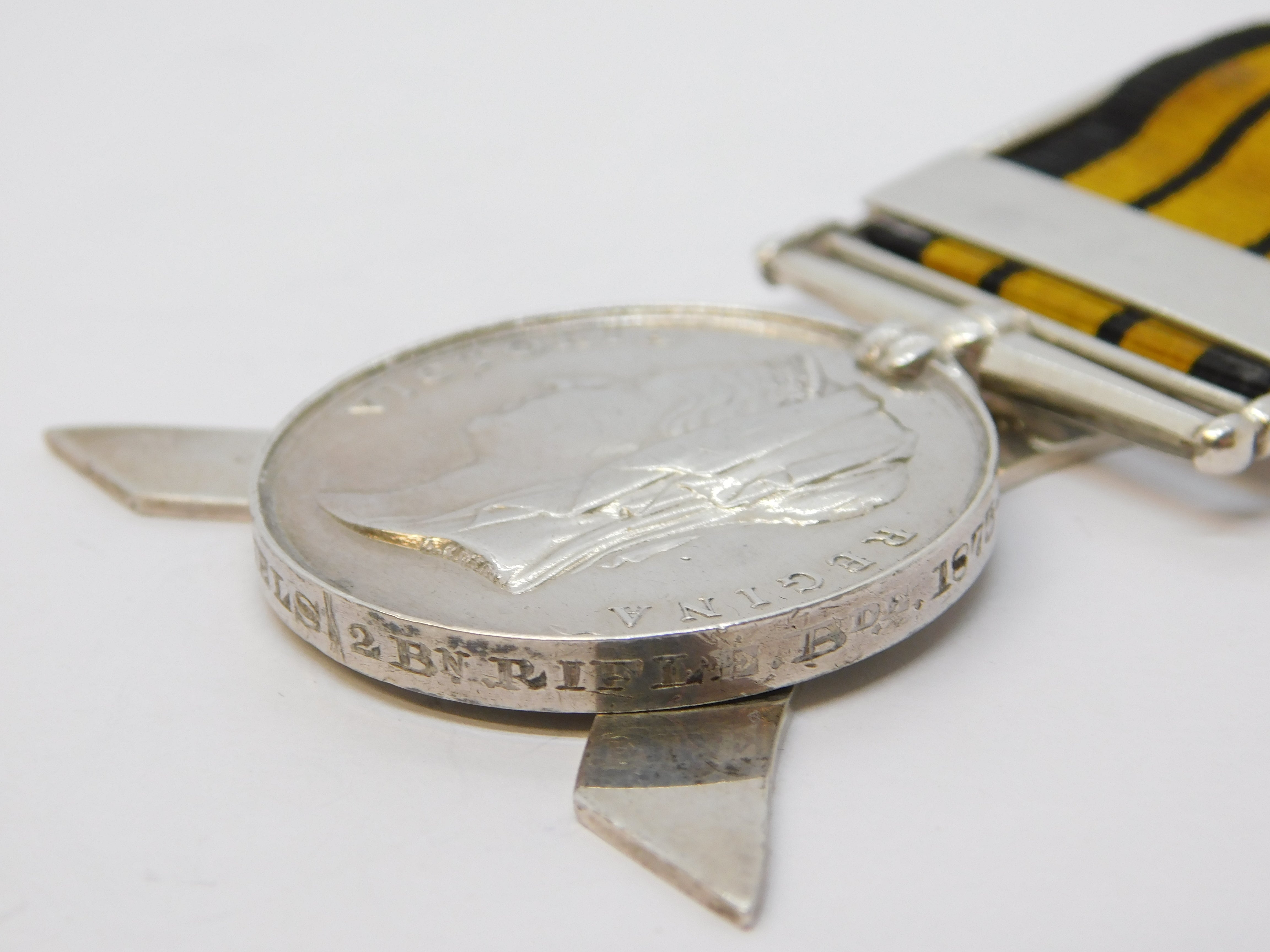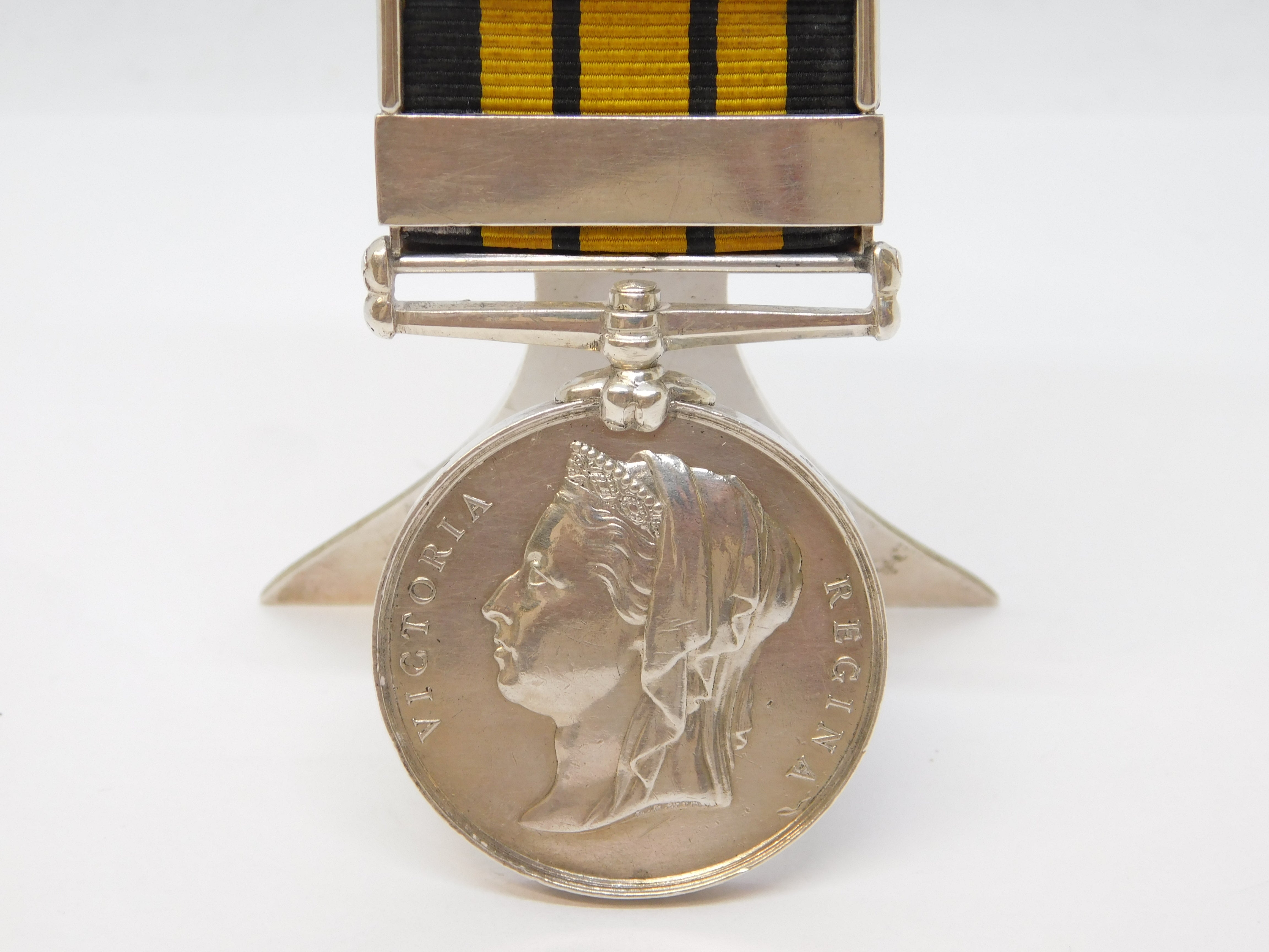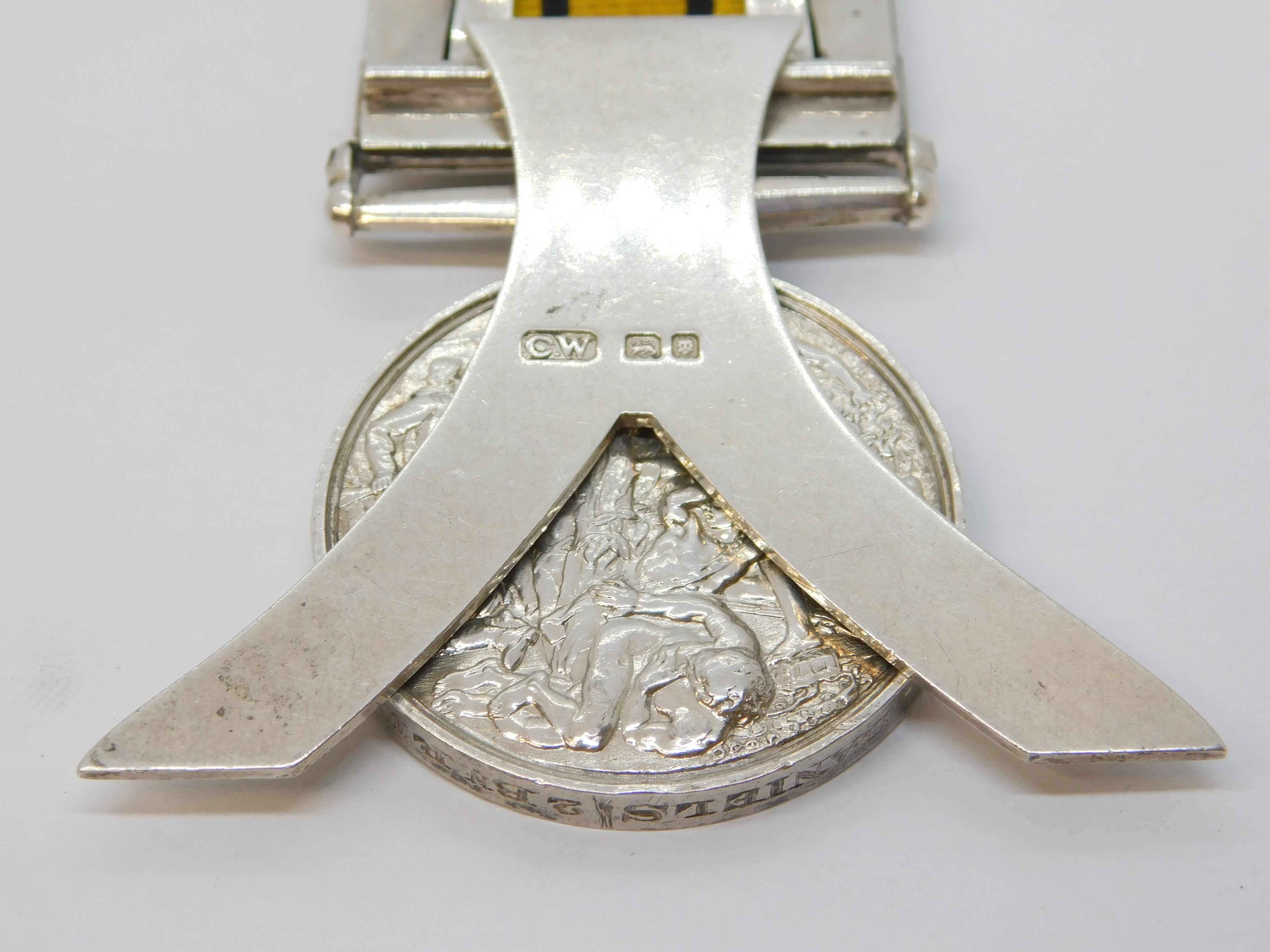 Details: A fantastic and wonderfully designed antique Edwardian sterling silver menu holder or place setting crafted from an original Victorian British Army Ashantee Medal issued in 1874 to PTE J Daniels of the 2nd Rifle Brigade who on research was sent back to Gibraltar during the campaign following sickness, hallmarked Birmingham 1907 to the menu holder aspect. The medal could be removed from the holder is desired. This is a wonderful item that would make a perfect gift or addition to any collection.