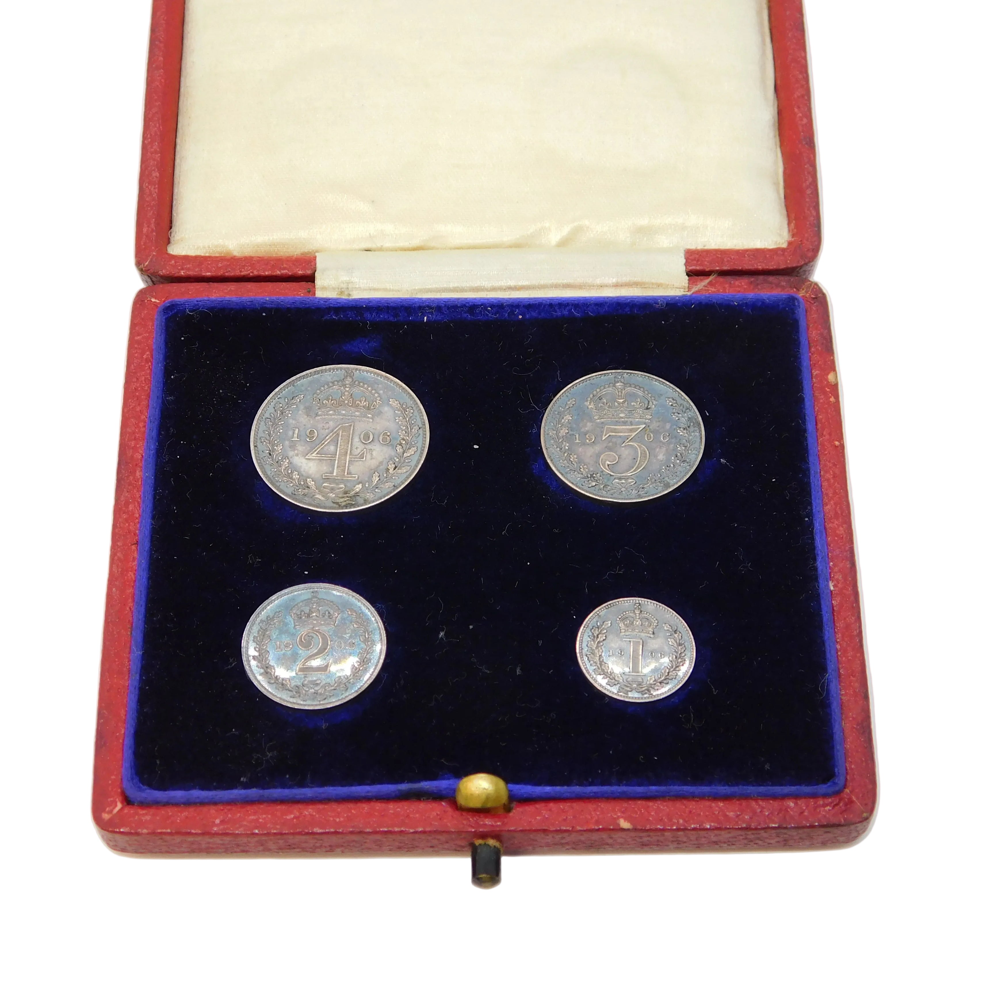 King Edward VII Original Boxed Silver Proof Maundy Coin Set Antique 1906