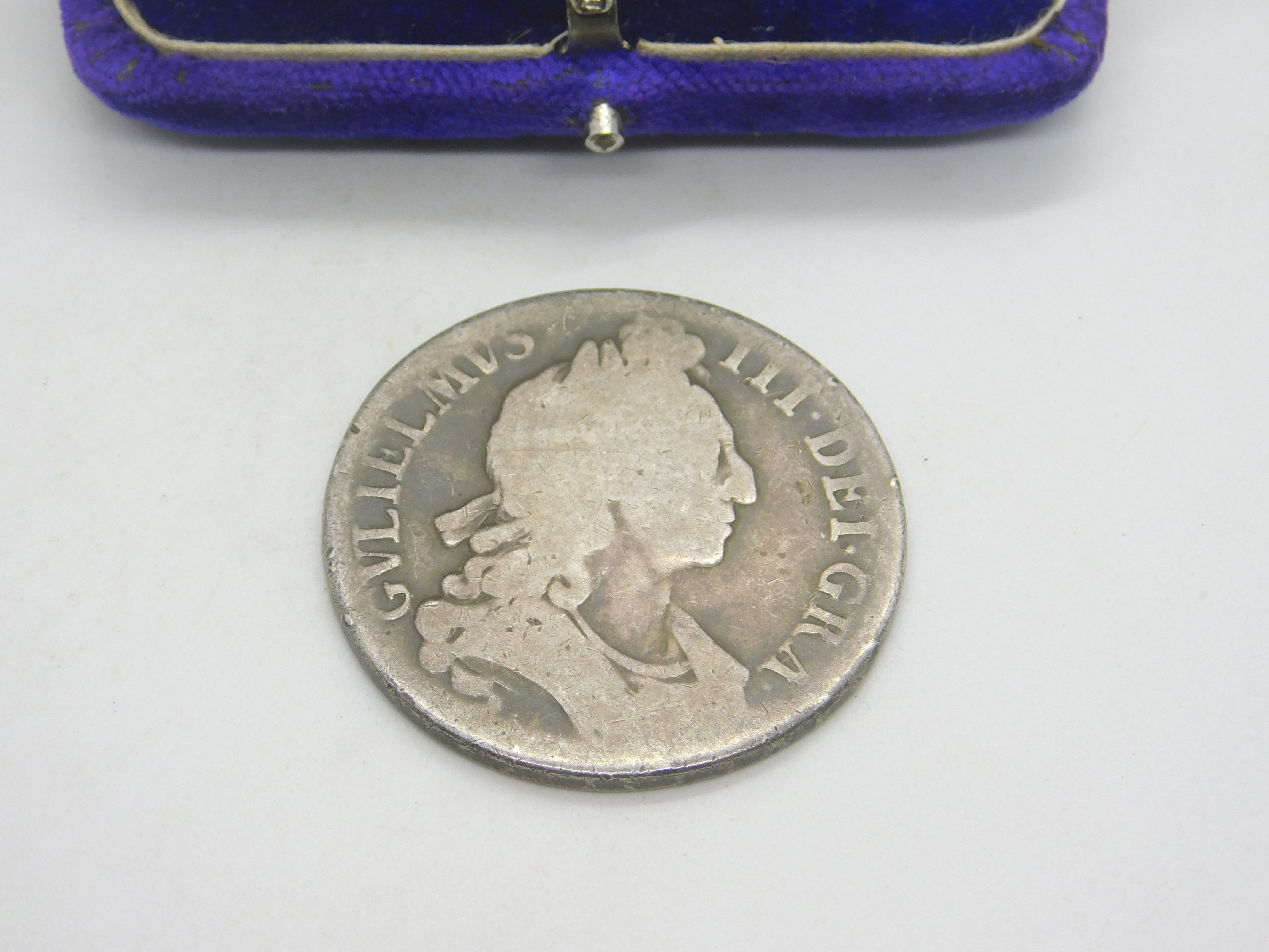 King William III Sterling Silver Crown Coin Antique c1696 Fair Condition