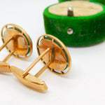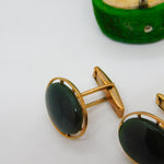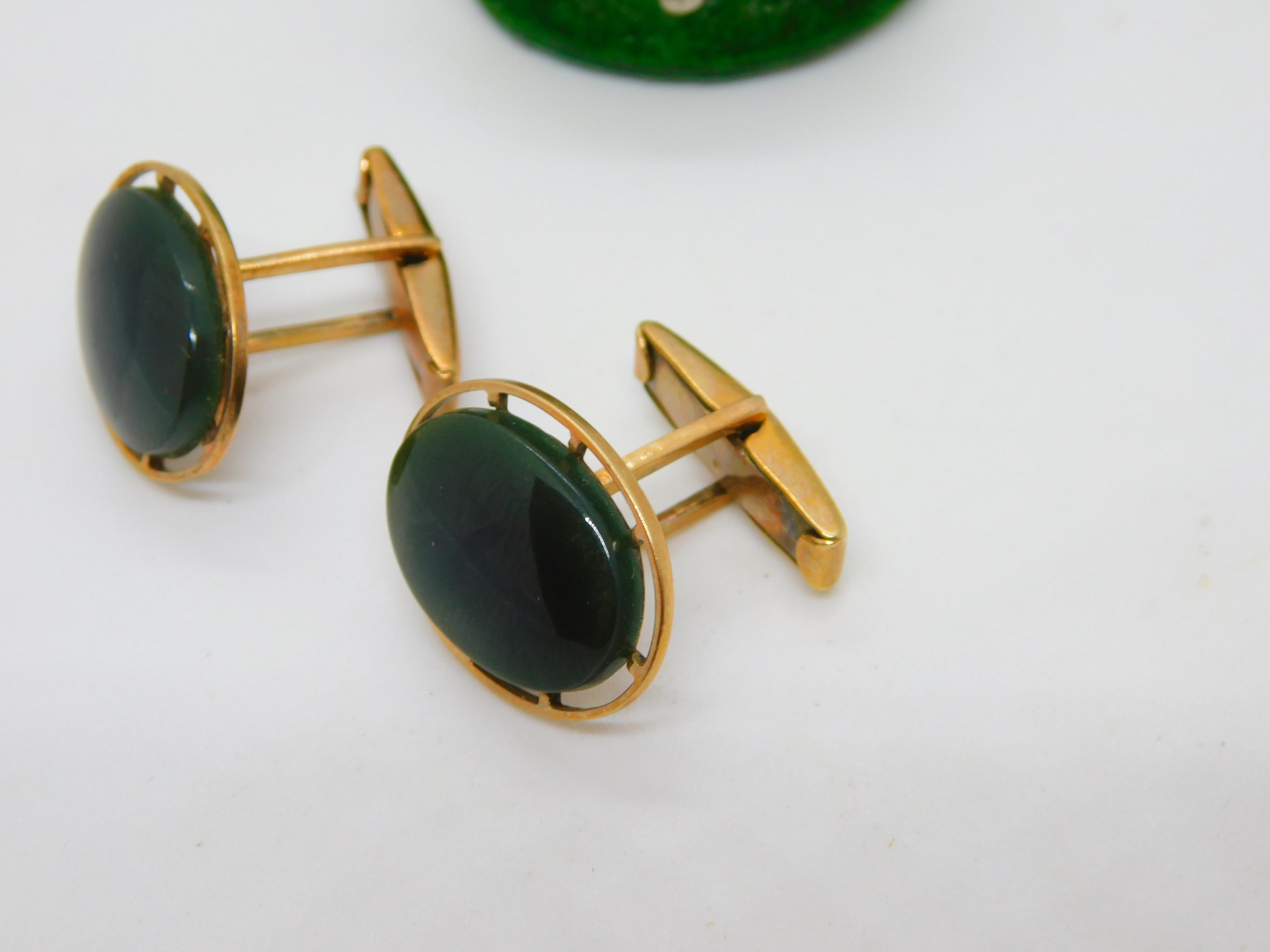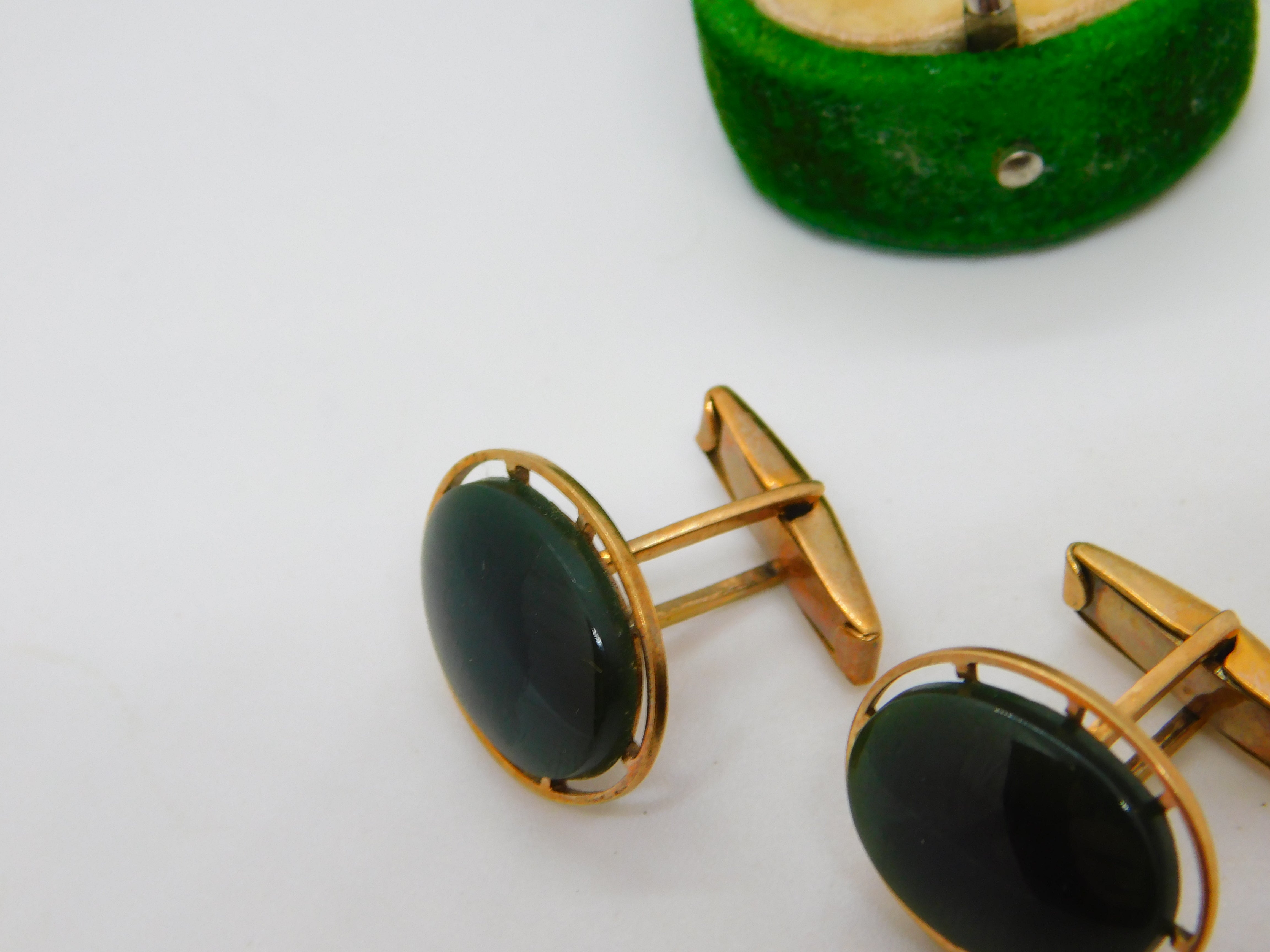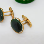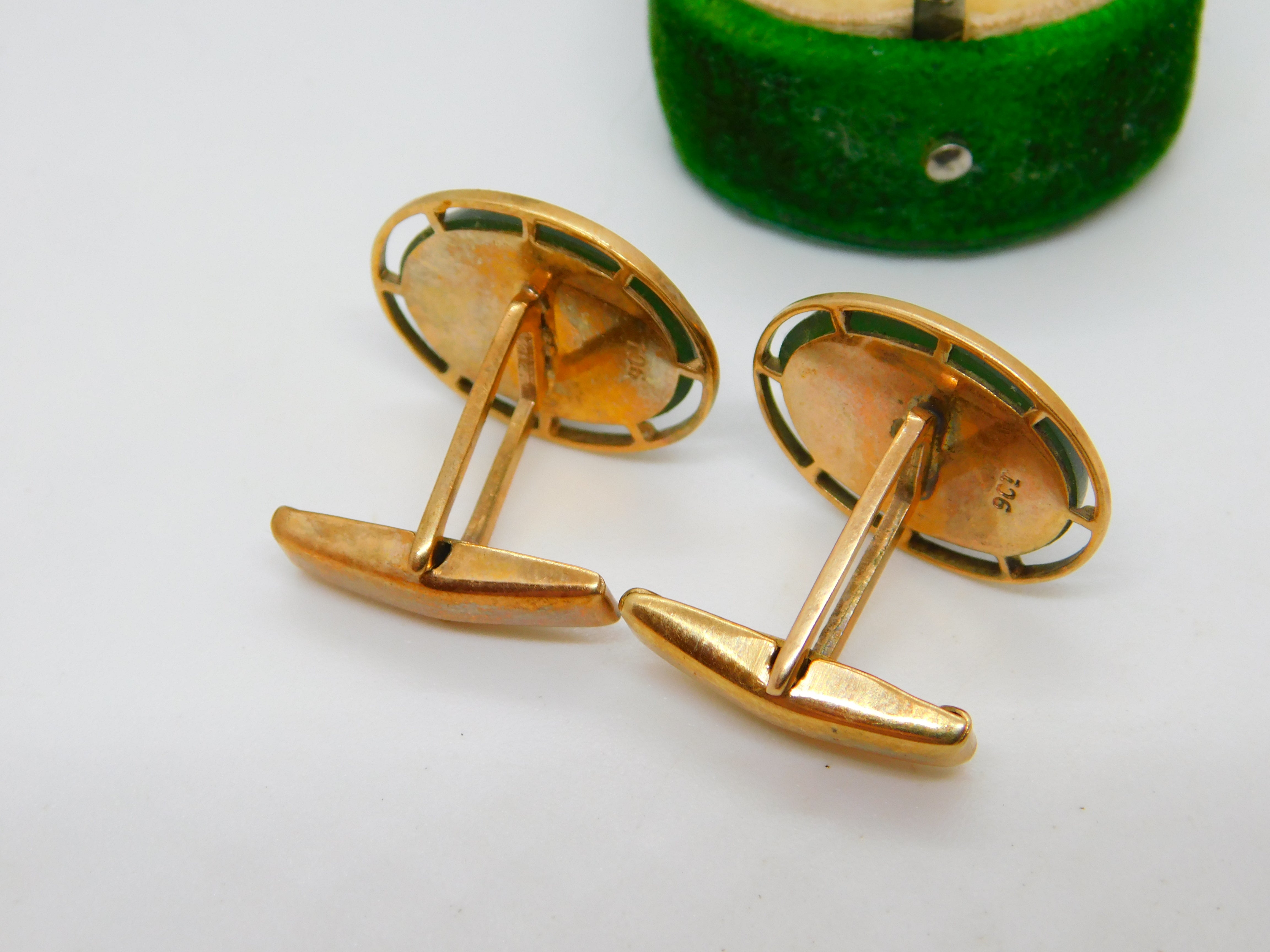 9ct Yellow Gold Nephrite Jade Set Gents Cufflinks Antique c1920 Art Deco