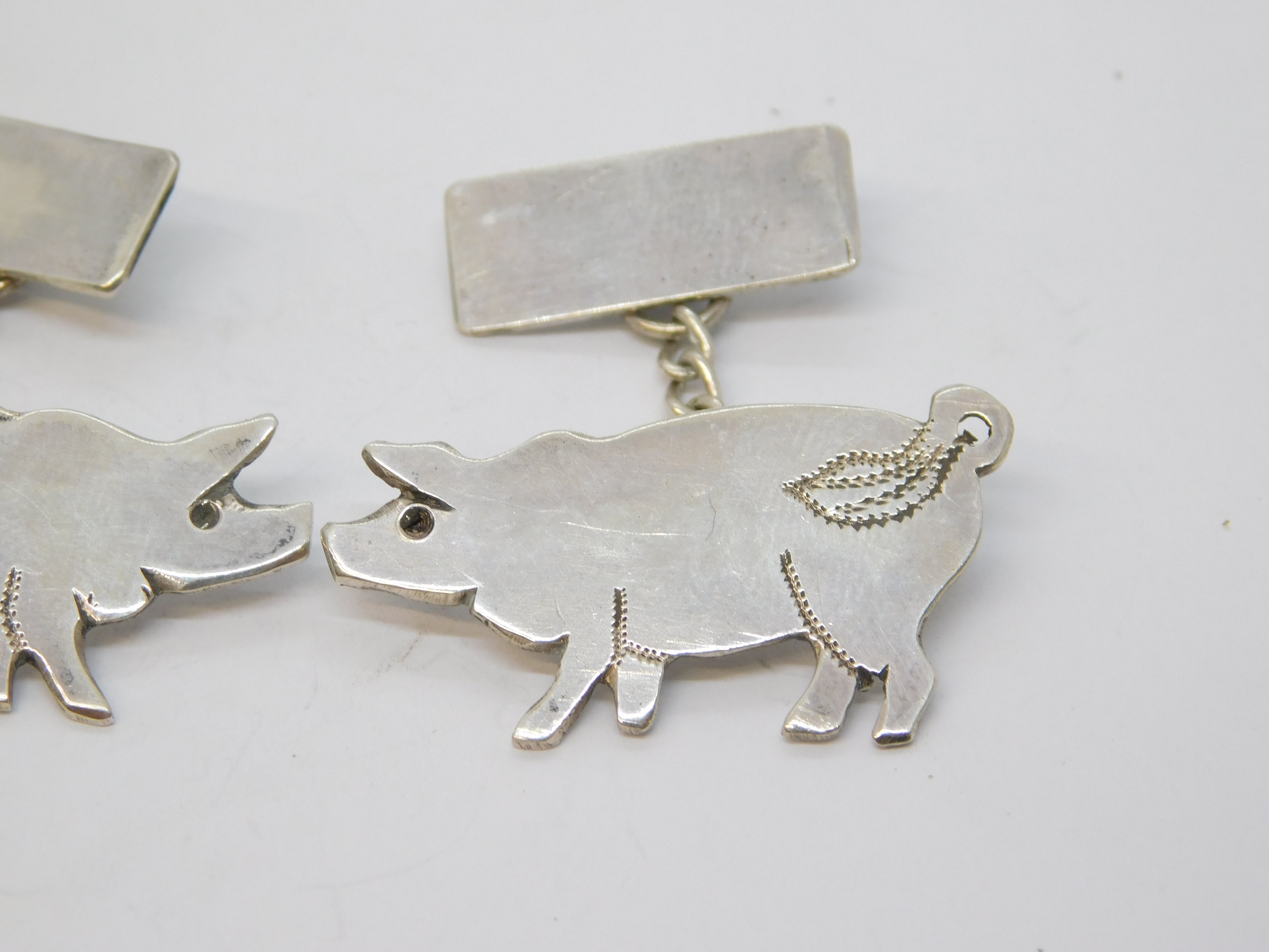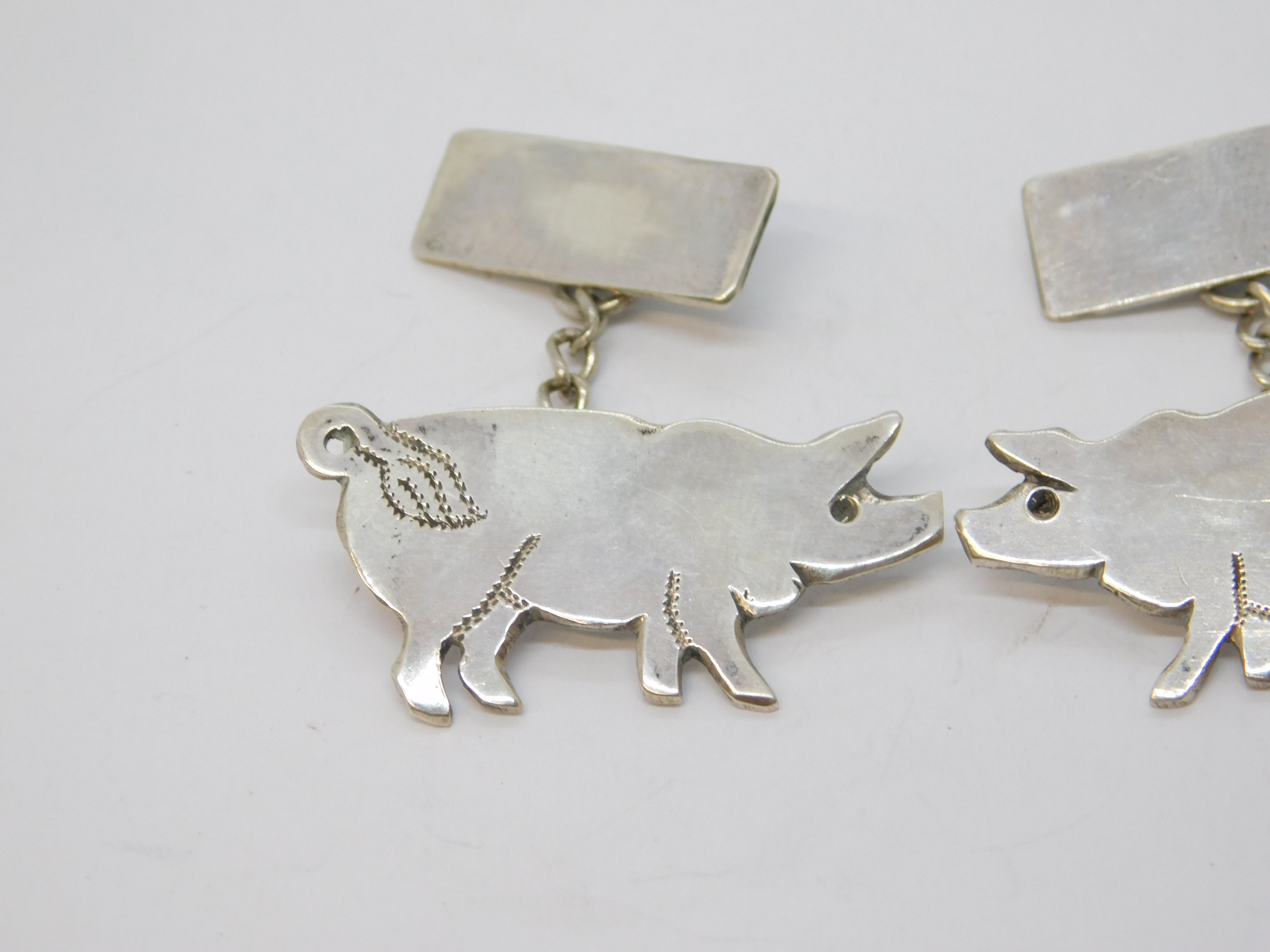 Pair of Sterling Silver Gents Pig Cufflinks Vintage 1999 London Studio Jewellery