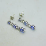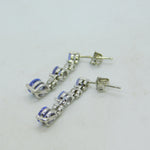18ct White Gold, Tanzanite & Diamond Droplet Stud Earrings Vintage c2000