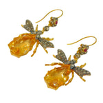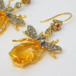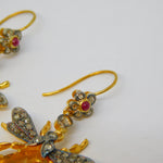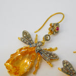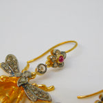 9ct Gold, Silver, Ruby, Diamond & Citrine Set Insect Bug Hook Earrings Vintage