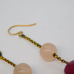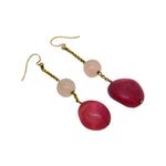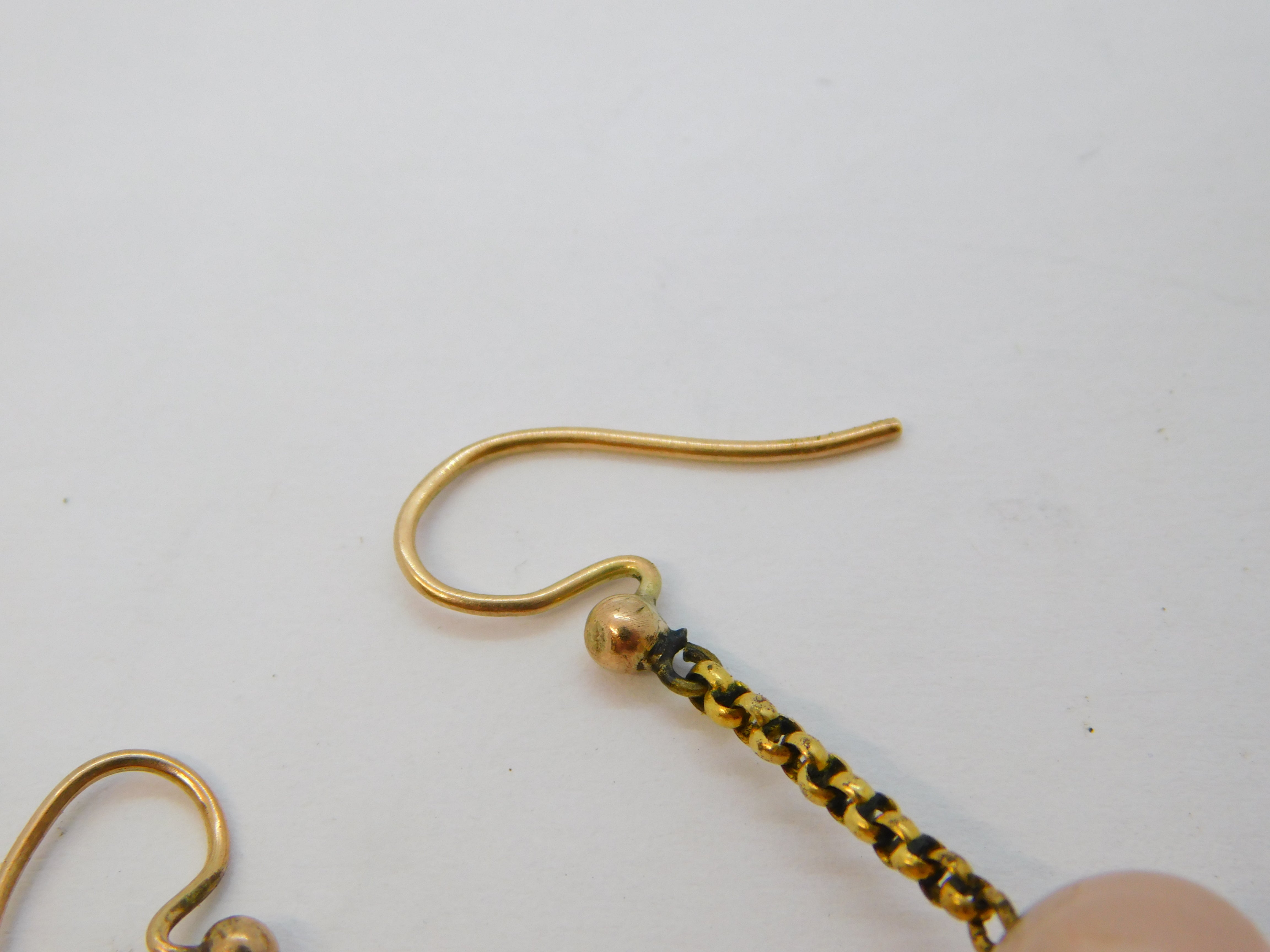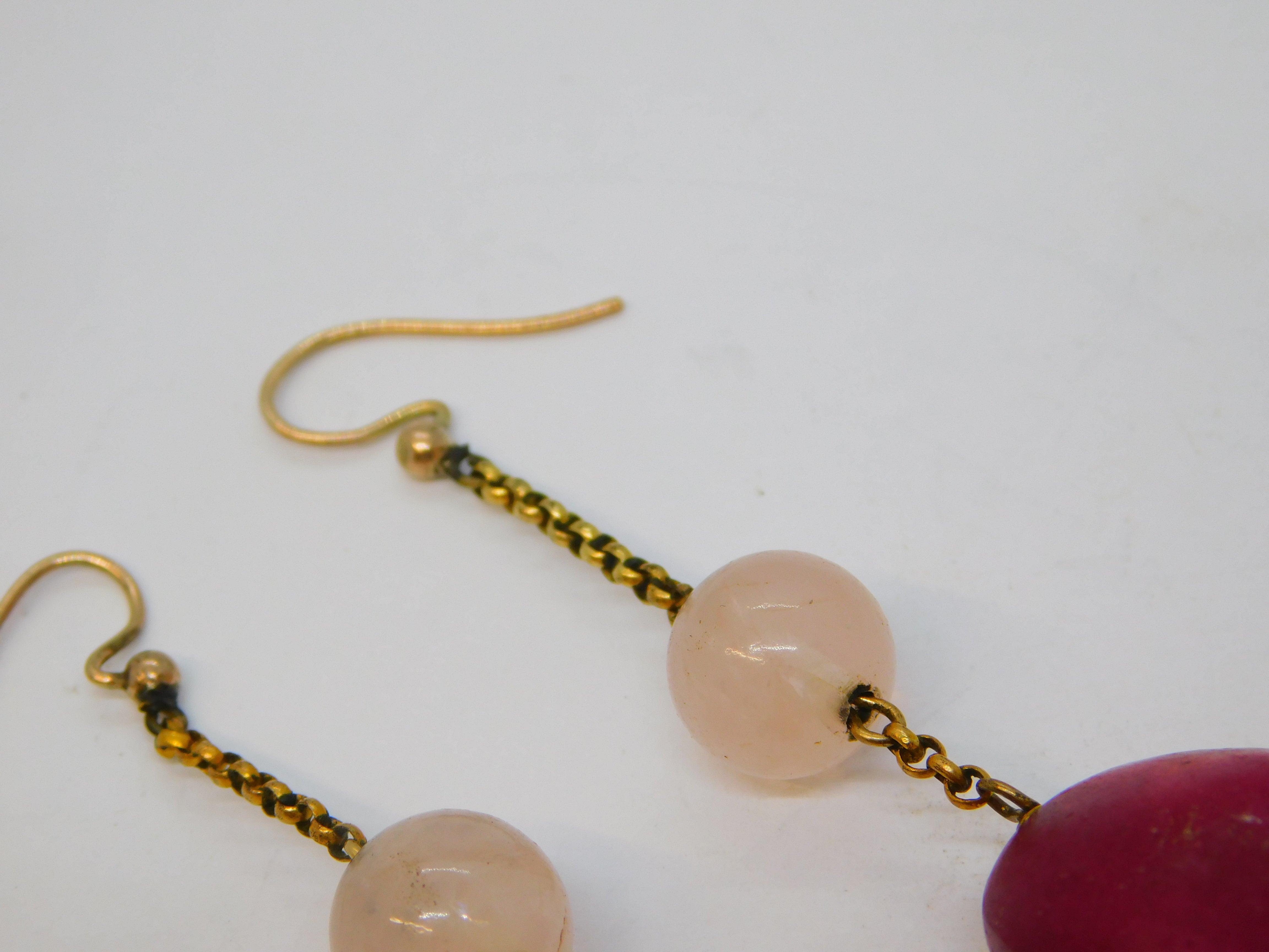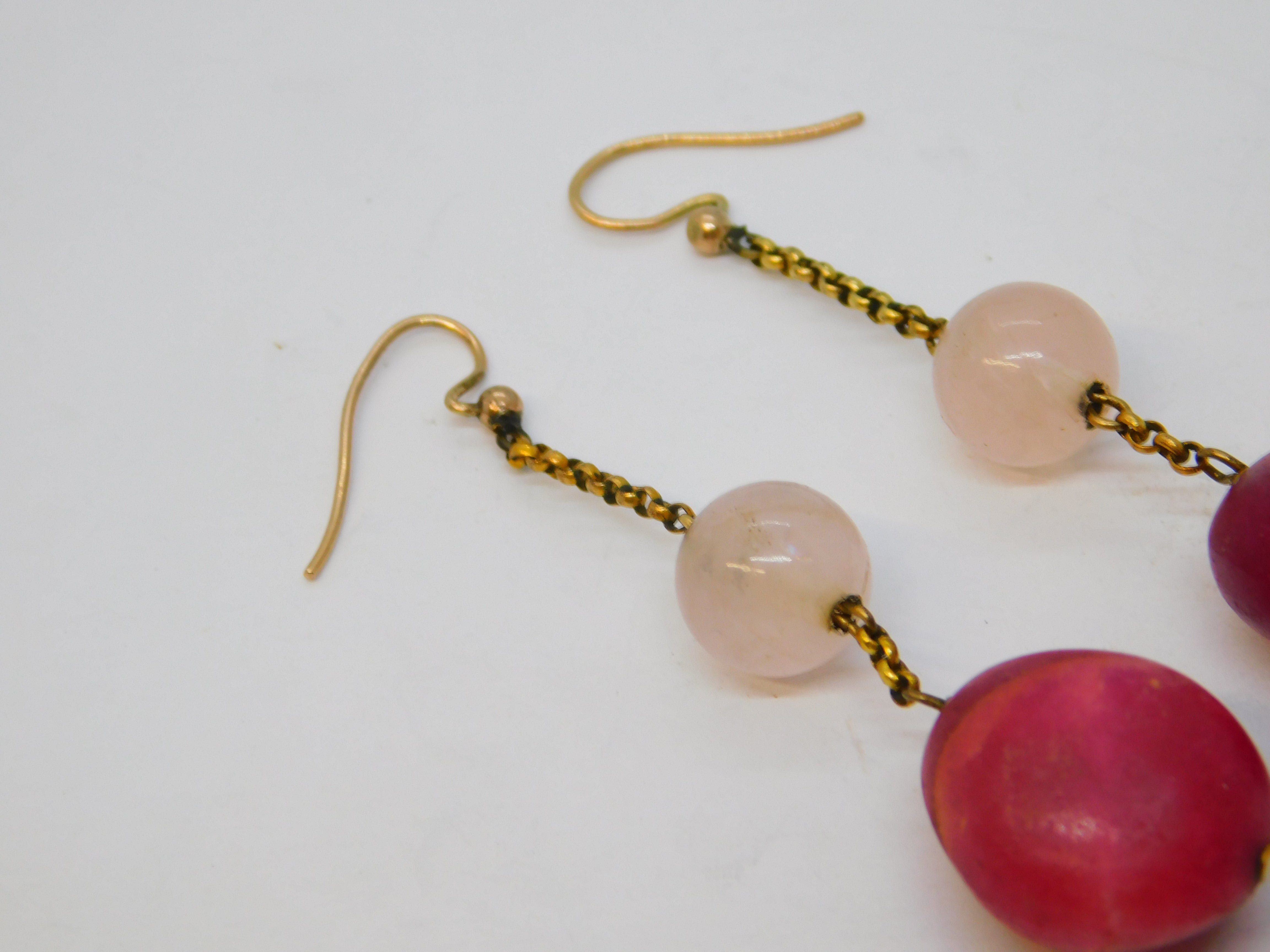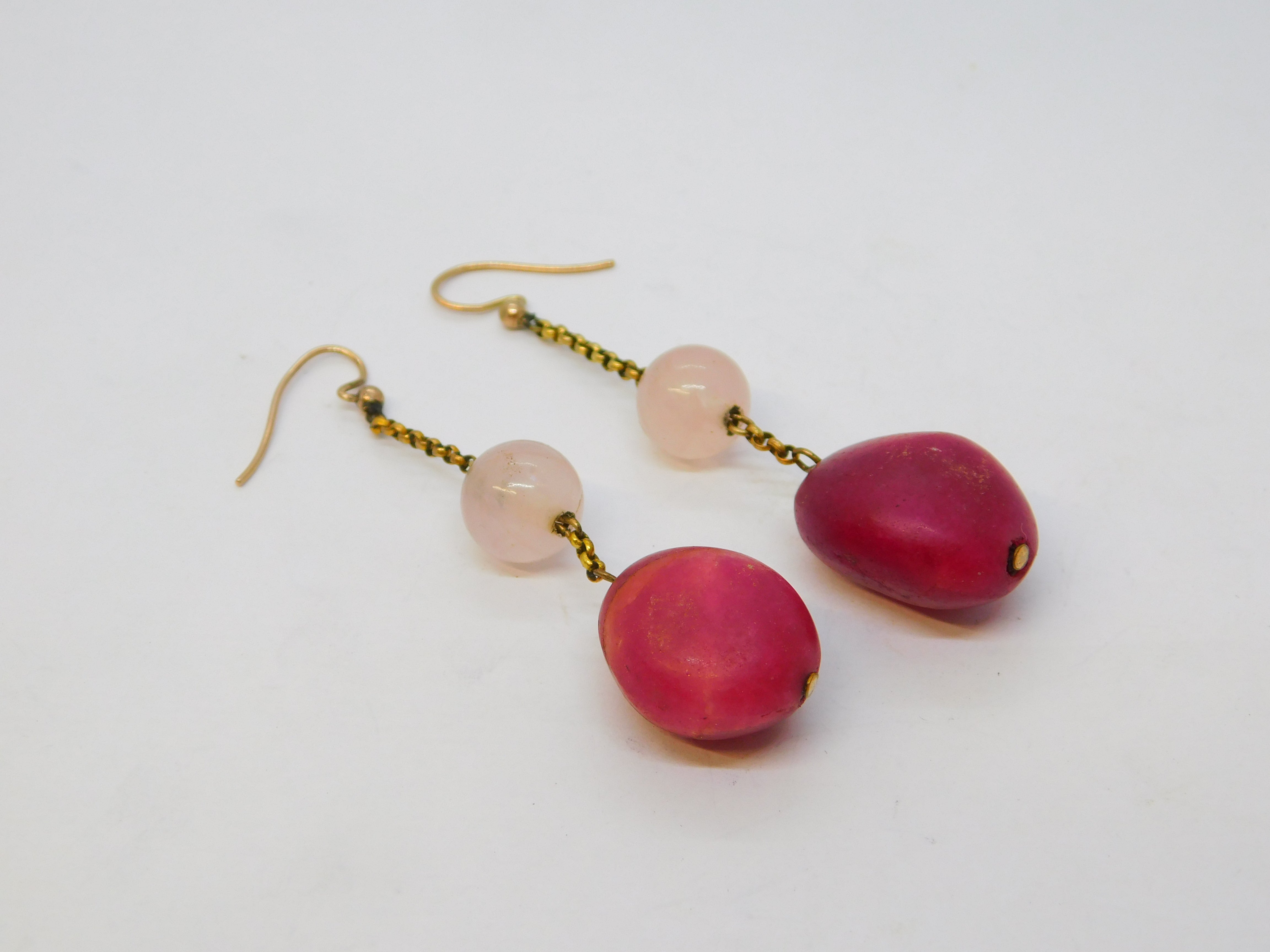 9ct Rose Gold Natural Red Quartz & Rose Quartz Drop Earrings Antique c1920