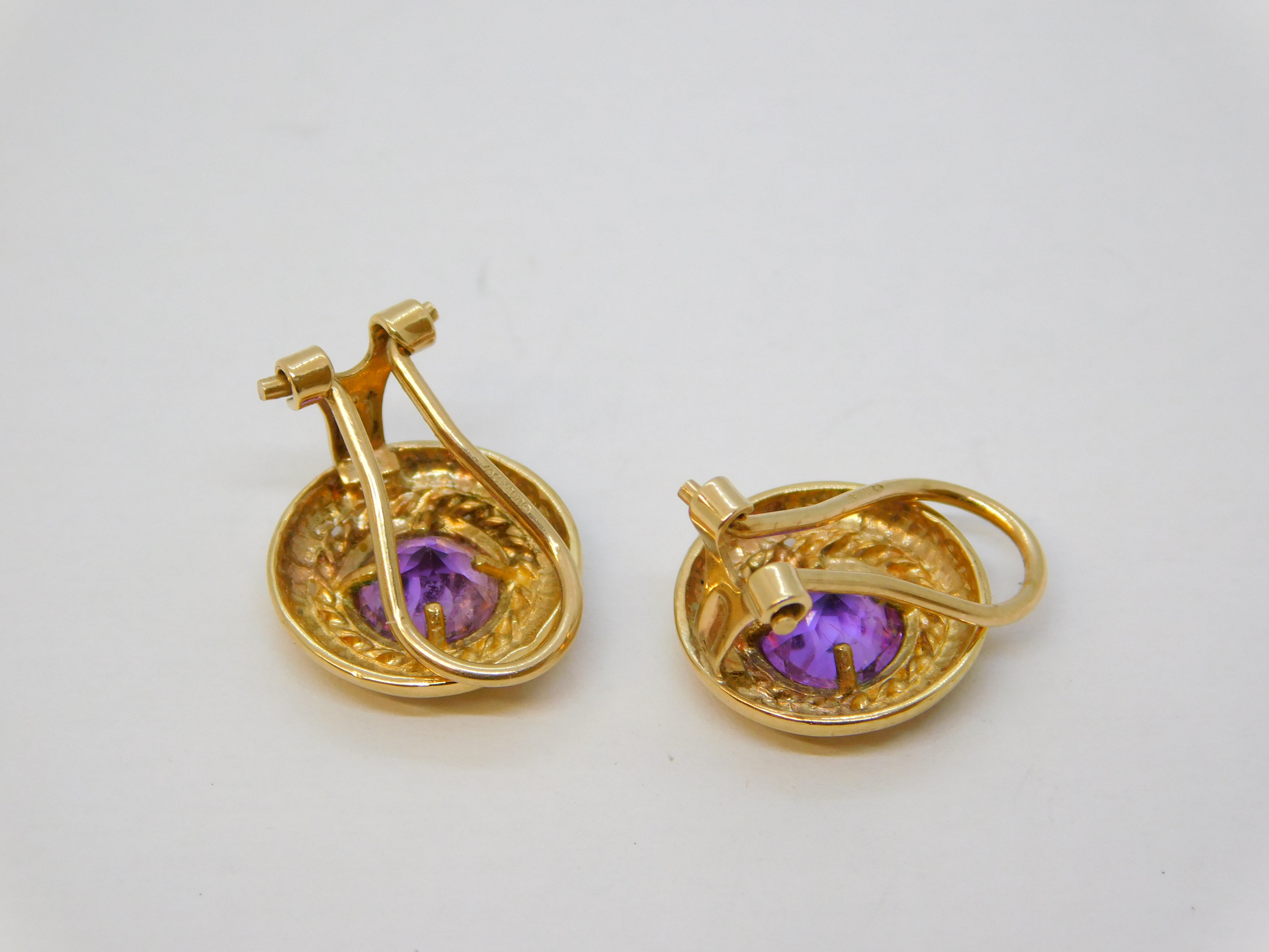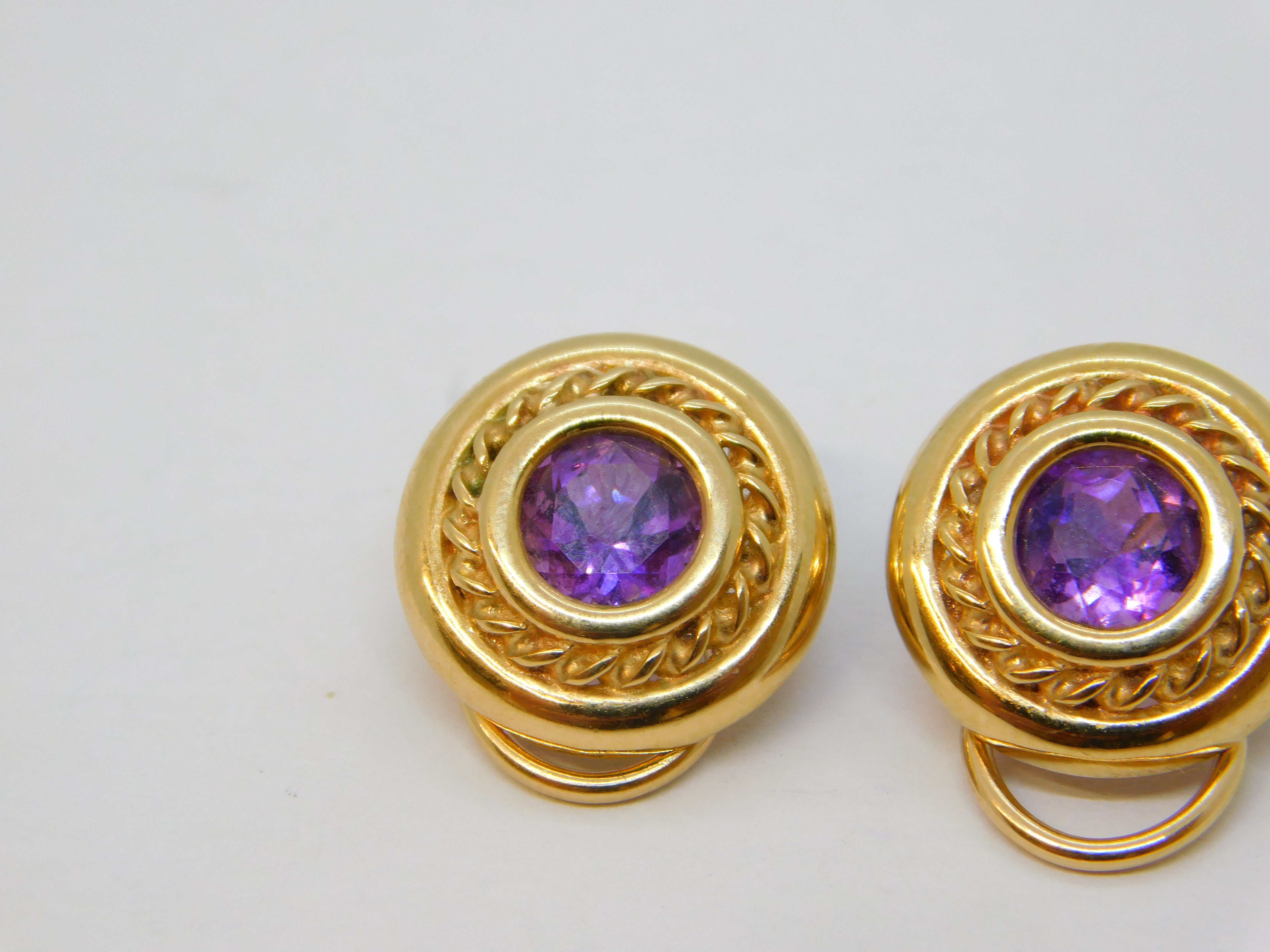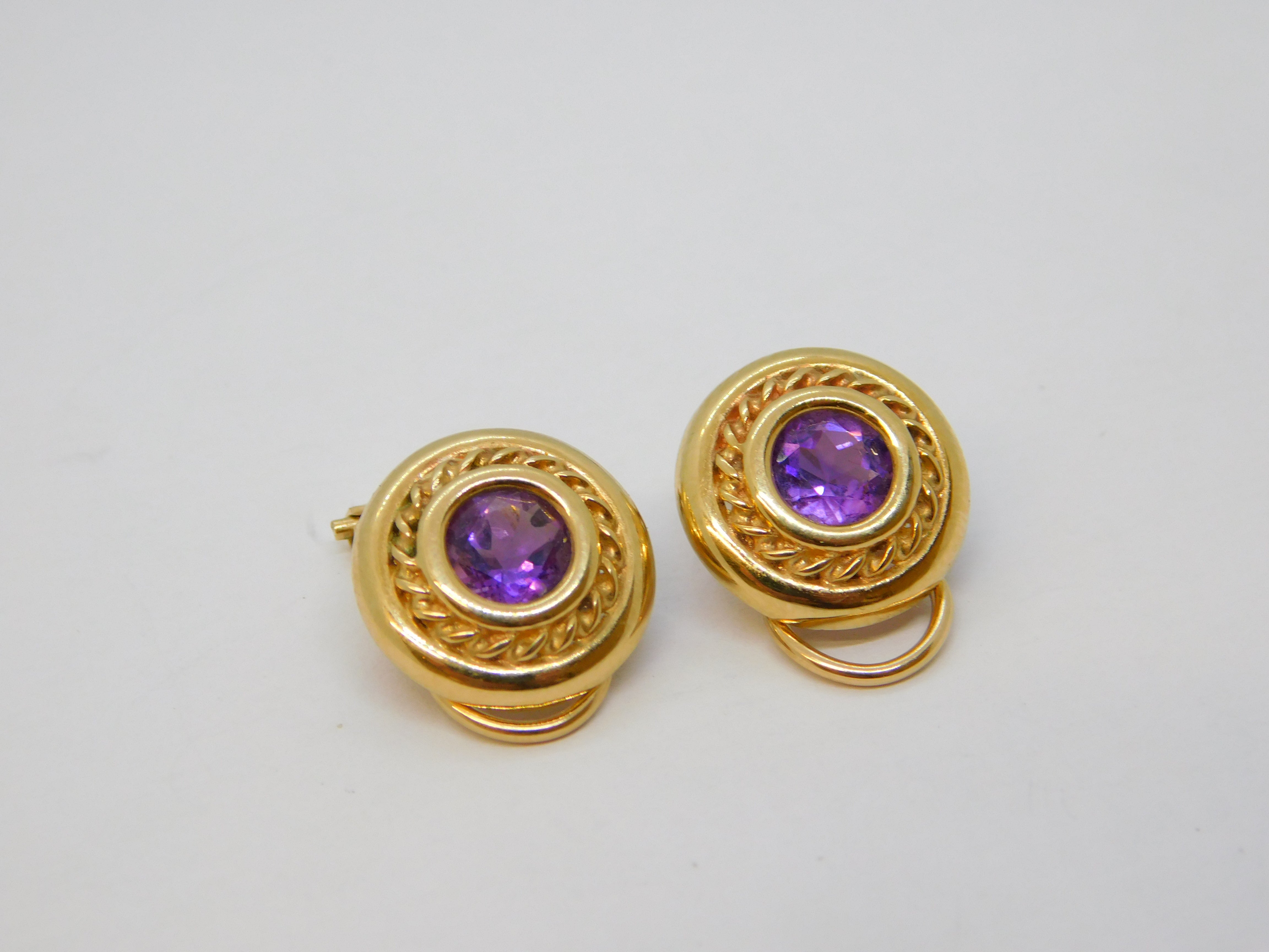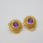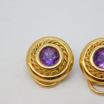 9ct Yellow Gold & Amethyst Set Clip-On Earrings Vintage c1990 Birmingham