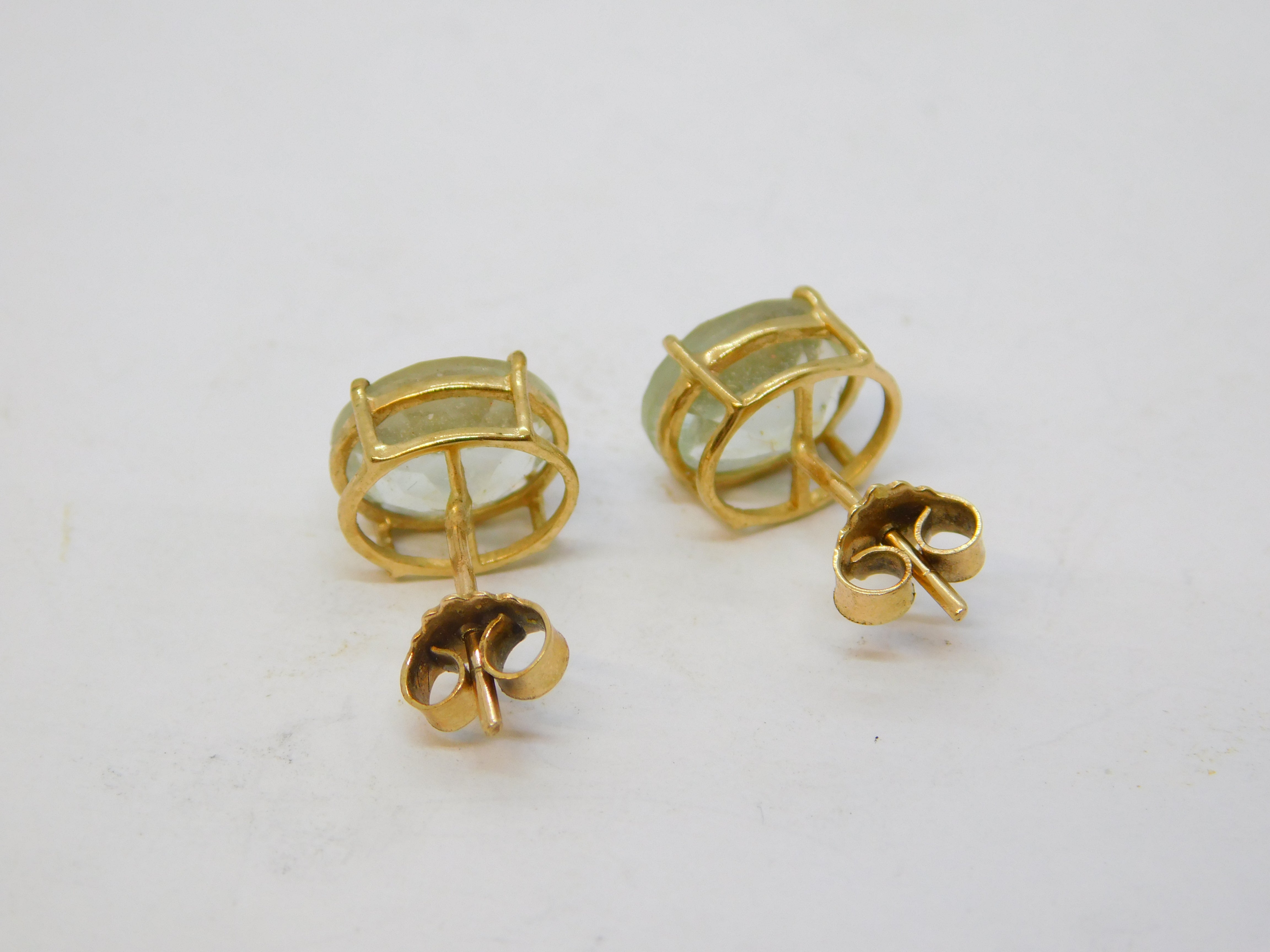 9ct Yellow Gold Faceted Blue Topaz Stud Earrings Vintage c1970