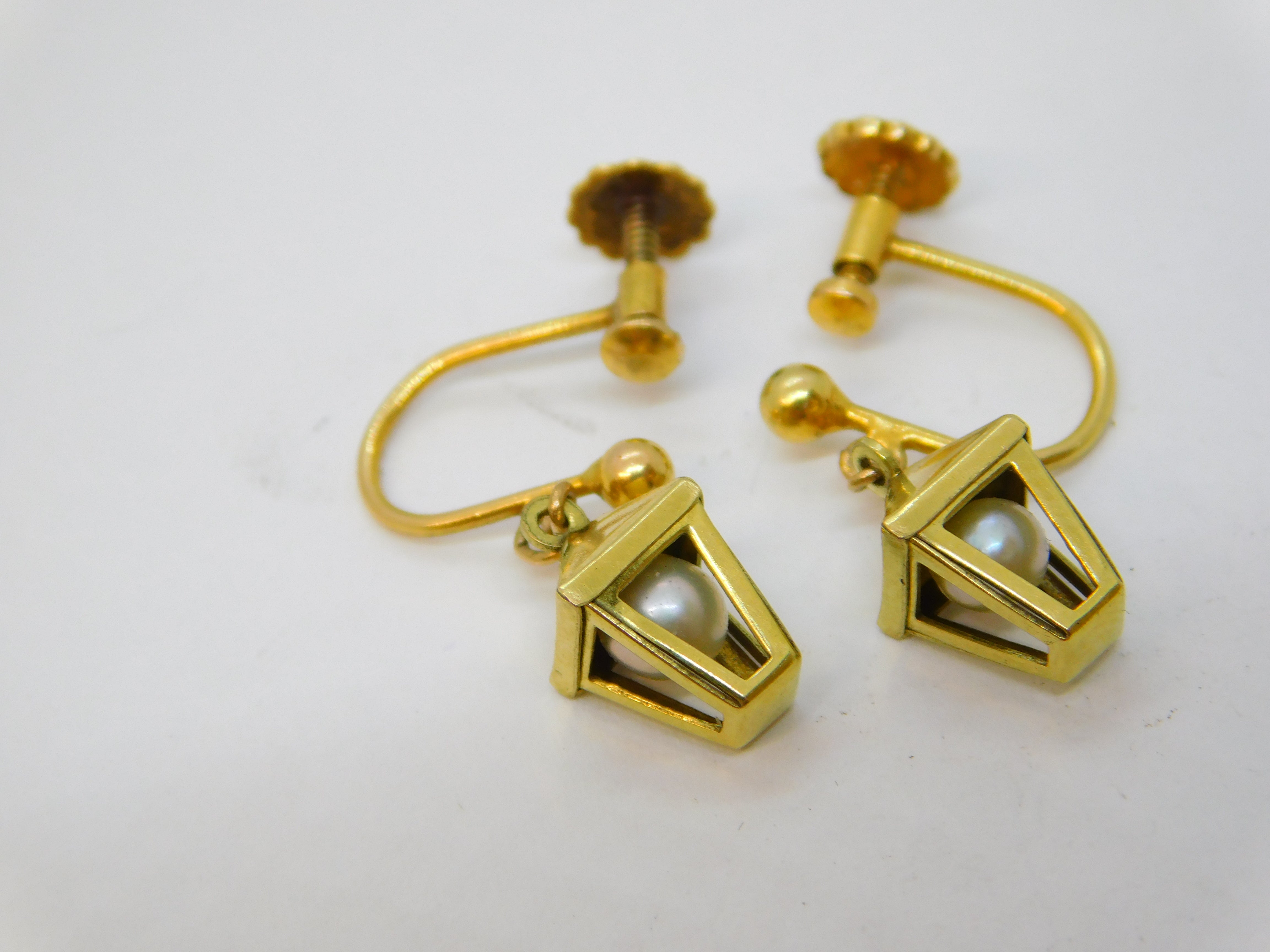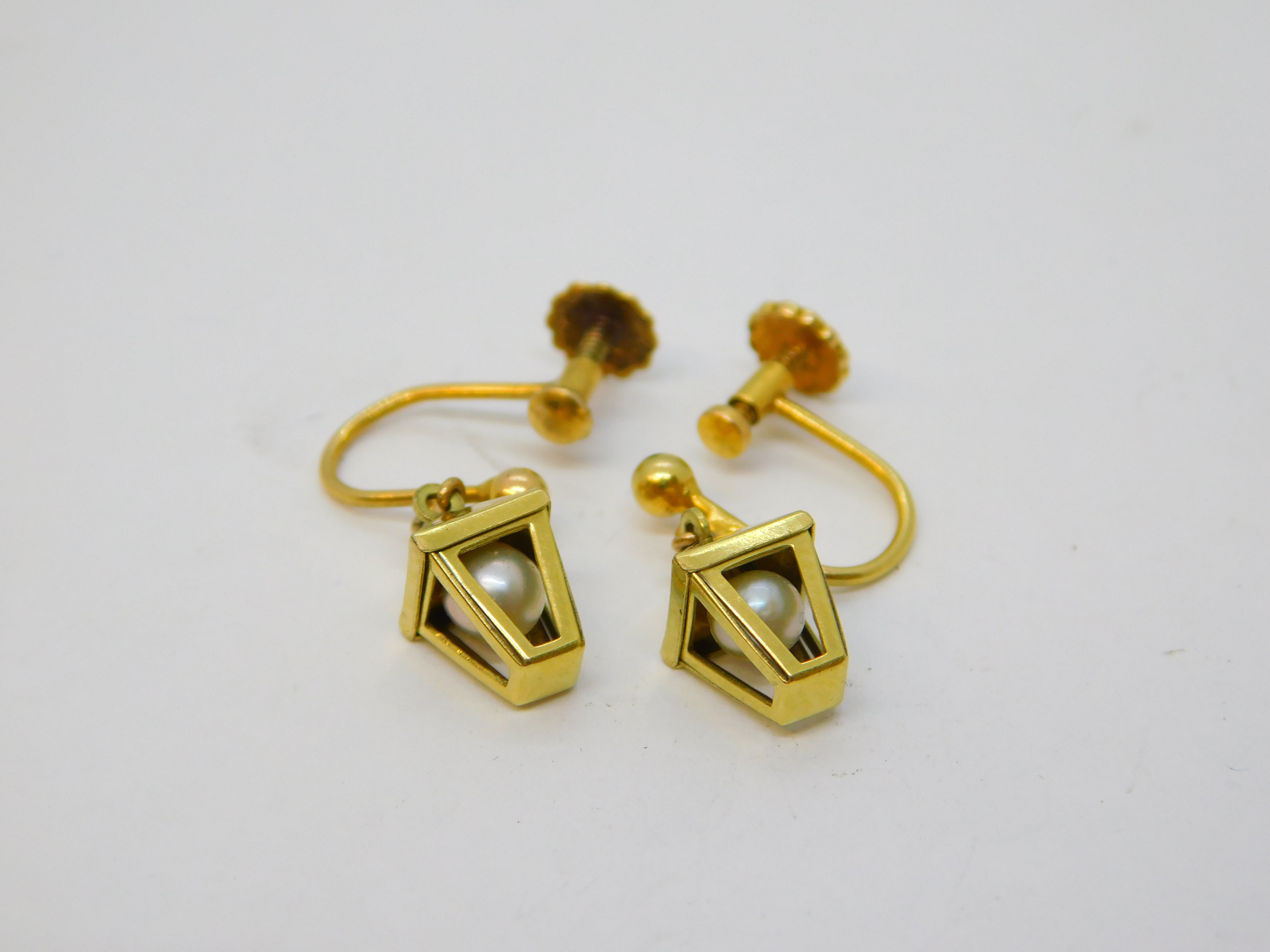 Details: A fantastic and wonderfully designed antique art deco 9ct yellow gold & pearl set lantern form screw-back earrings hallmarked to the reverse c1920. This is a wonderful item that would make a perfect gift or addition to any collection. We are more than happy to provide XRF reports for items upon request.