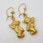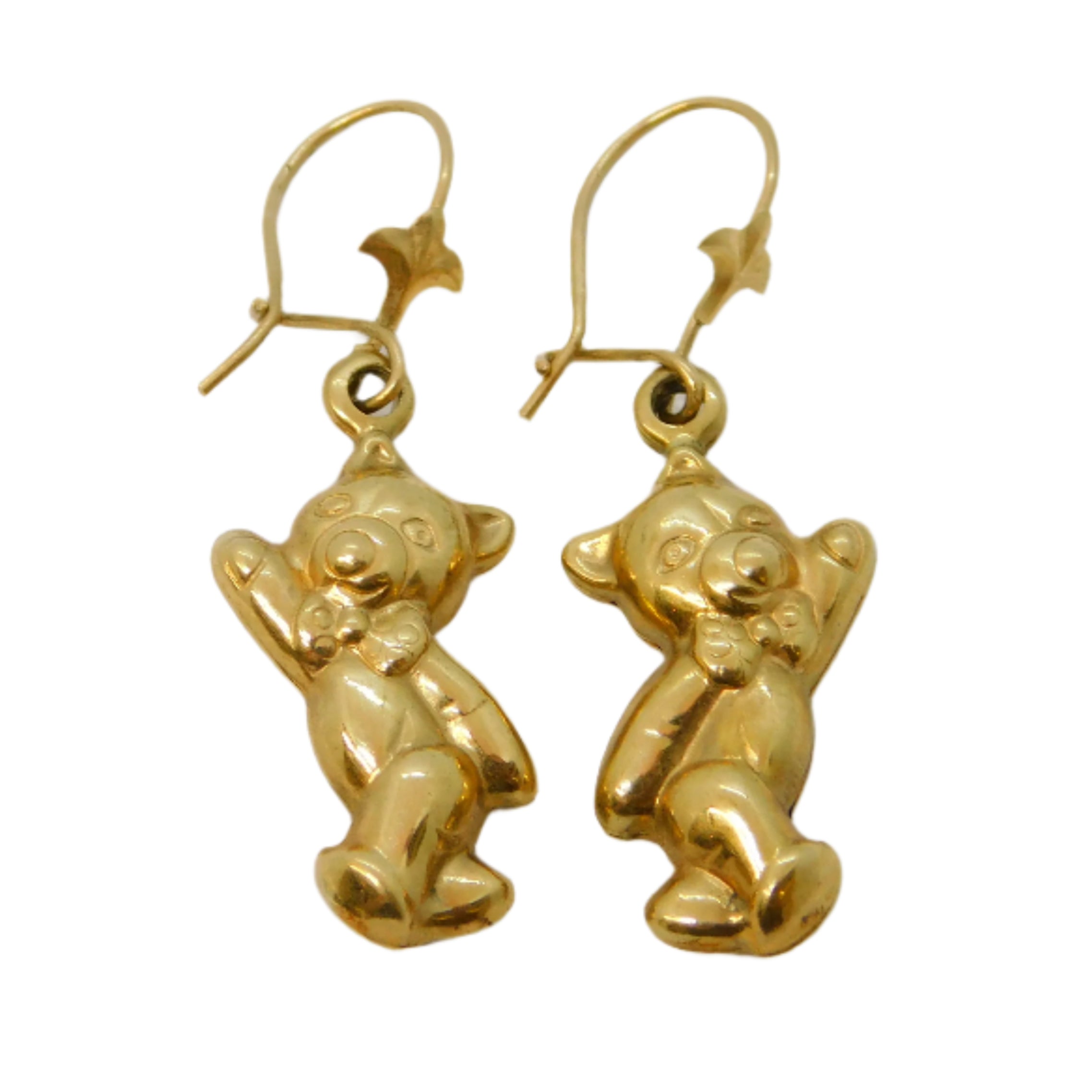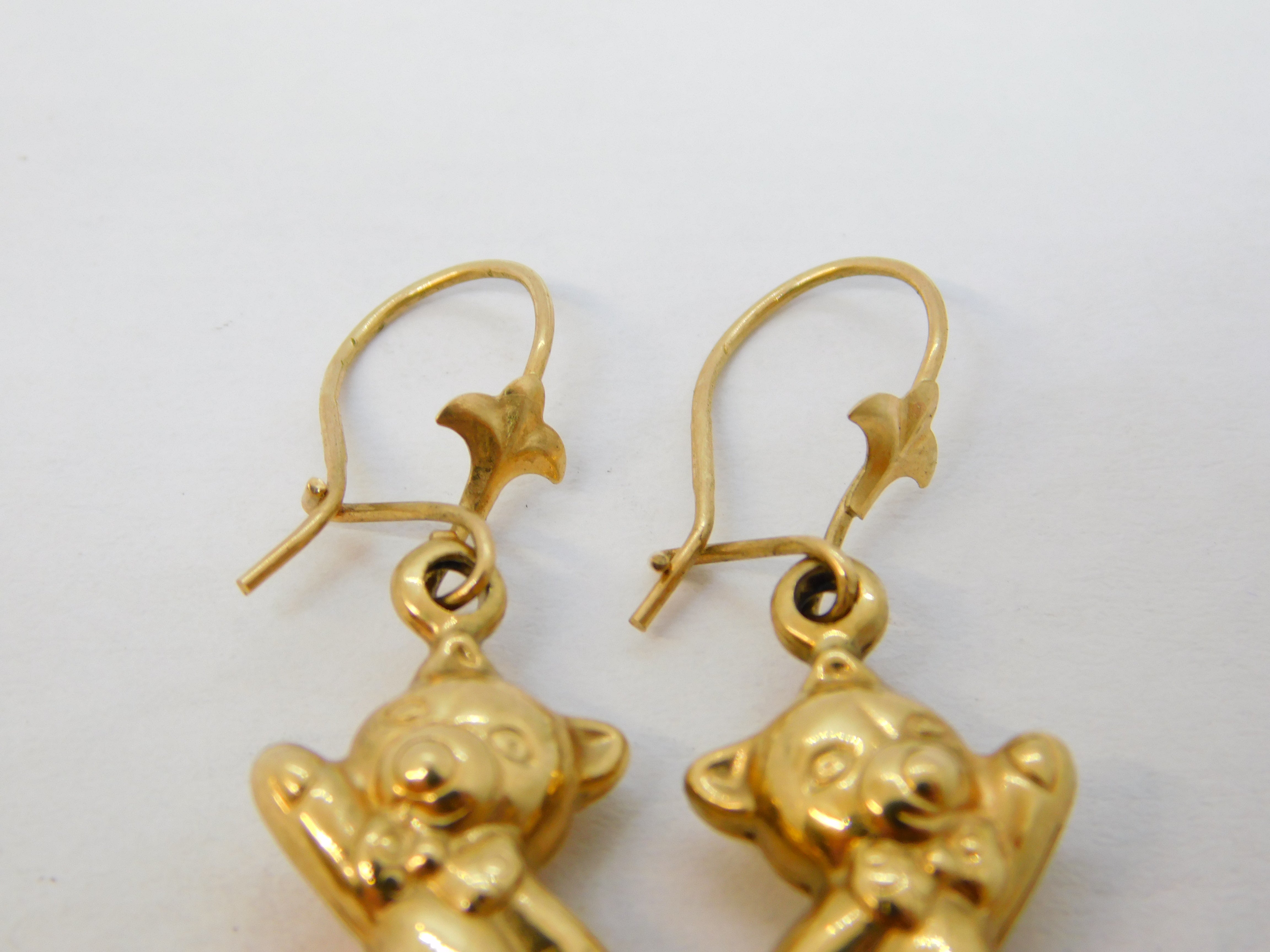 Pair of 9ct Yellow Gold Happy Teddy Bear Hook Earrings Vintage 2007 Sheffield