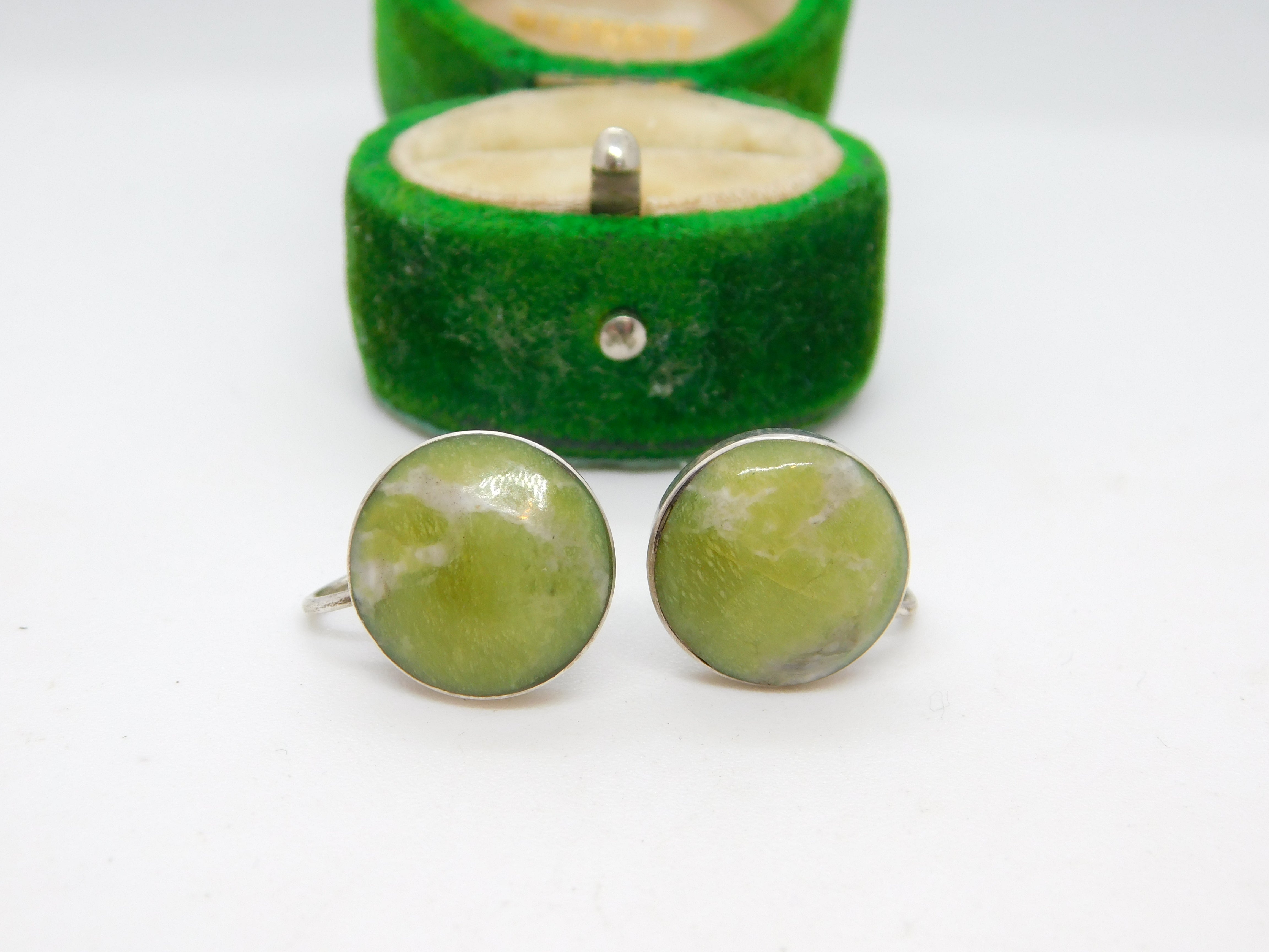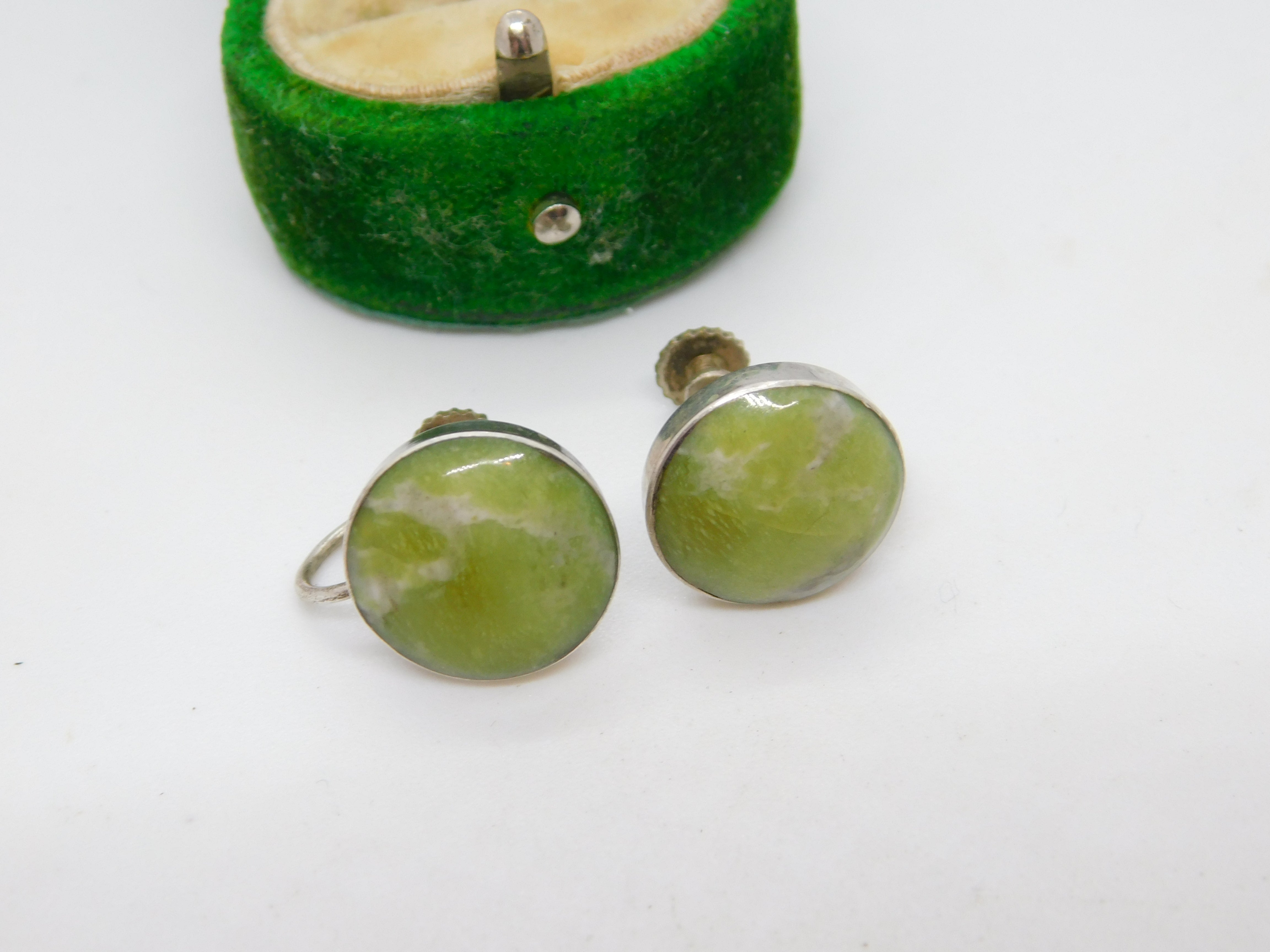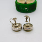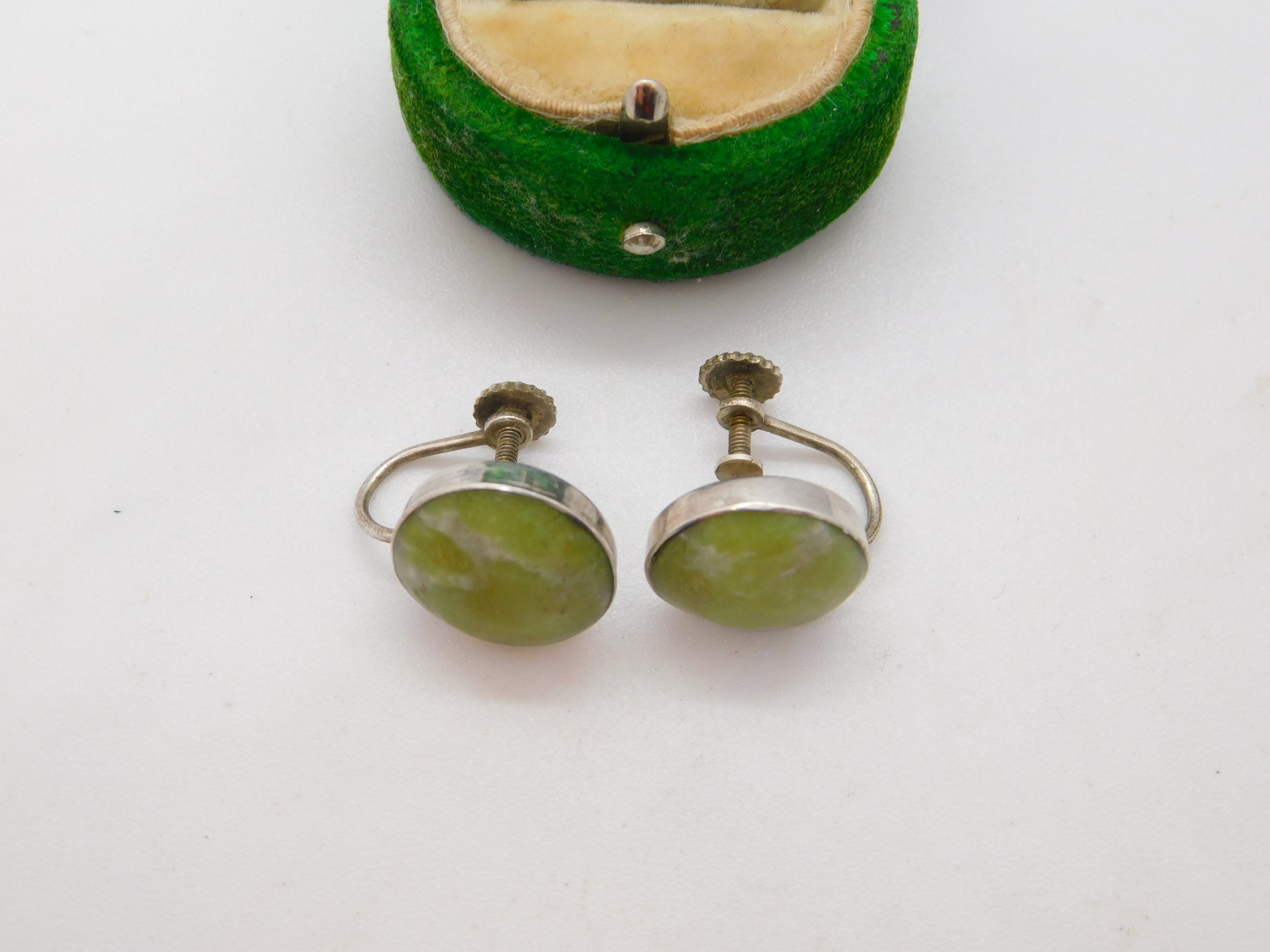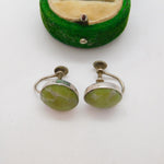 Pair of Sterling Silver Connemara Marble Screw-Back Earrings Antique c1930