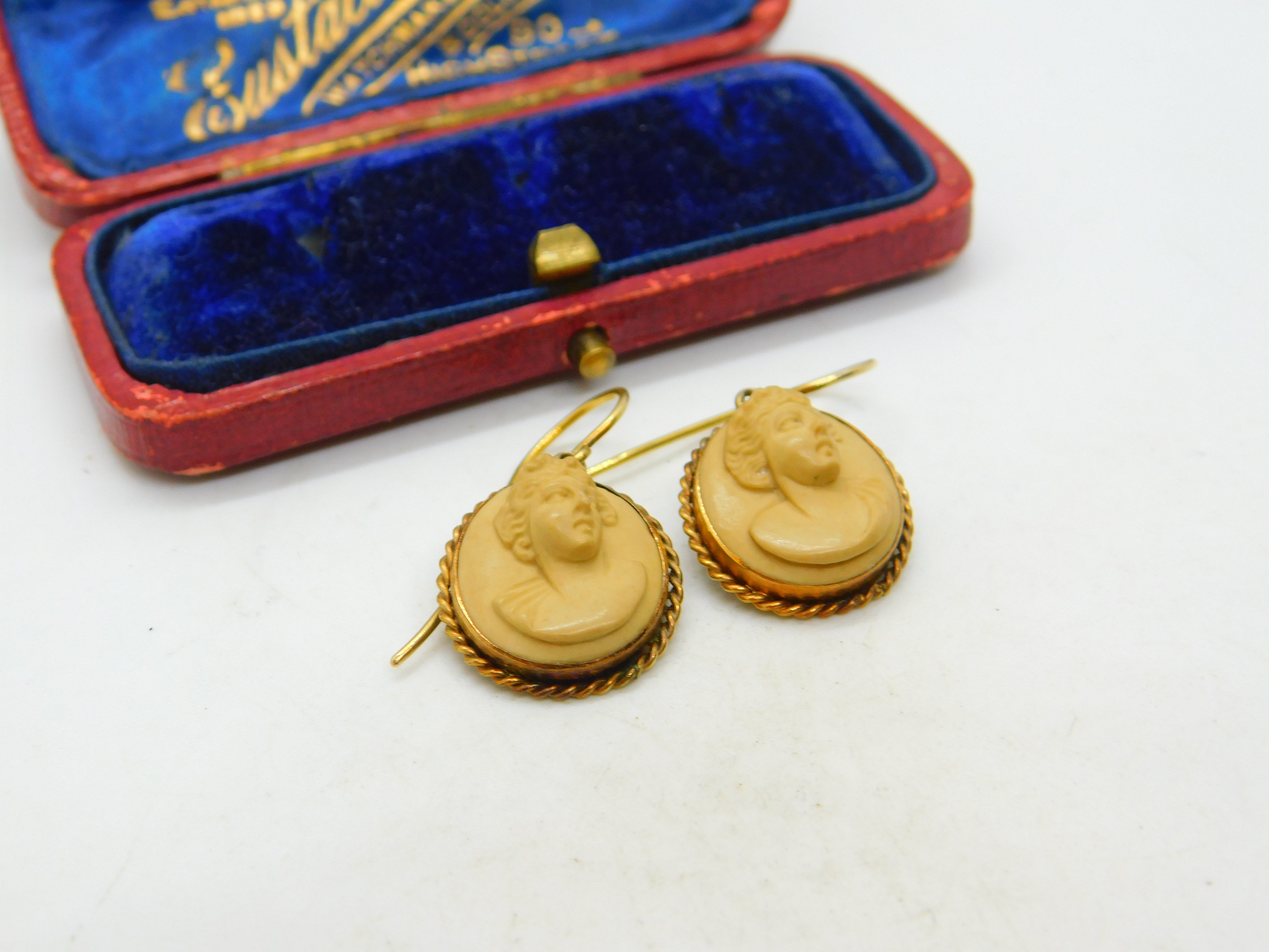 Details: A fantastic and wonderfully designed antique regency grand tour period carved lava cameo earrings in the form of a female bust with super detail and high relief presentation c1830 - the gold has been XRF tested. This is a wonderful item that would make a perfect gift or addition to any collection. The BOX pictured is for PRESENTATION ONLY and is NOT included in the listings but used to frame the pictures unless specifically stated otherwise.