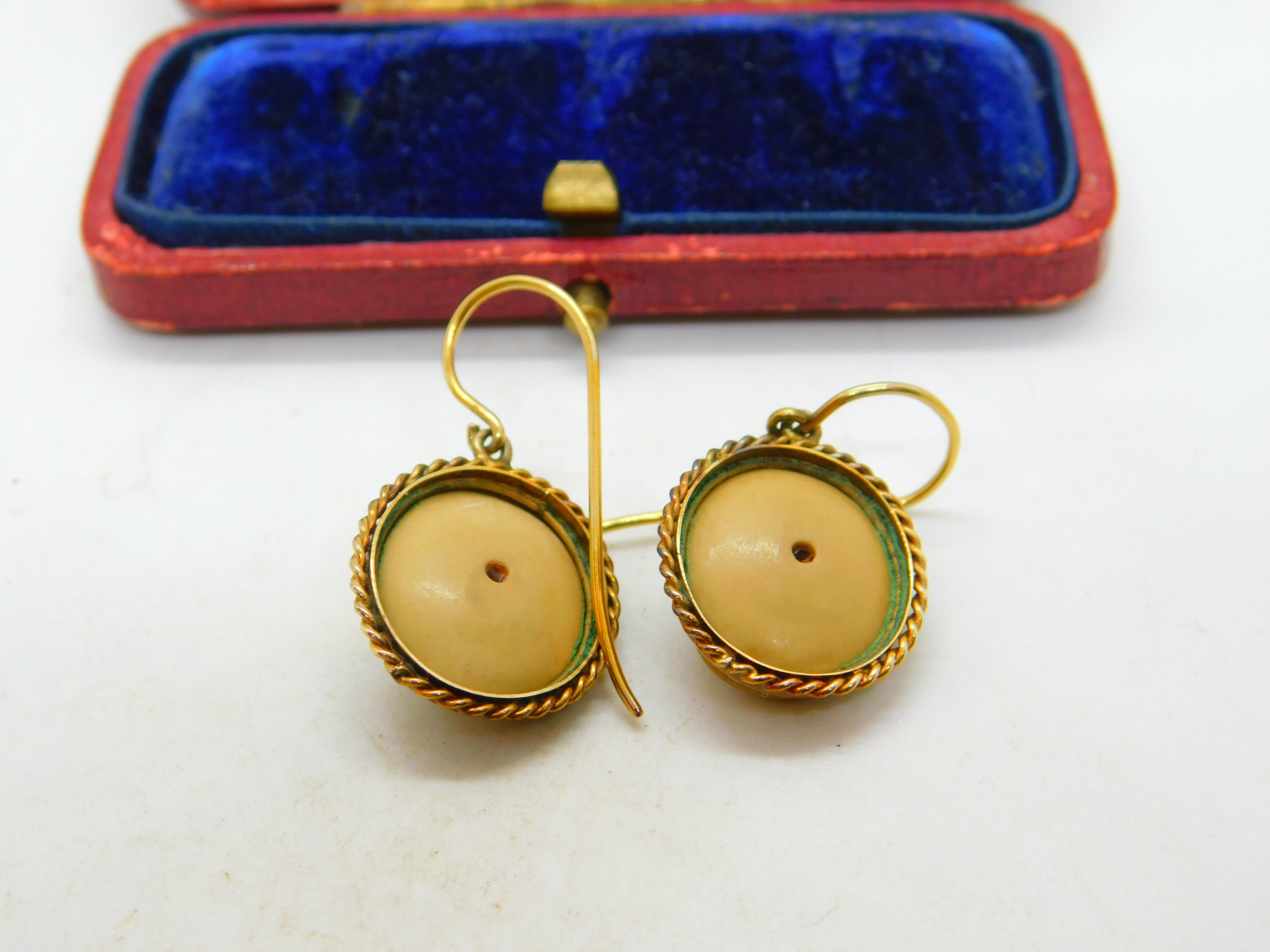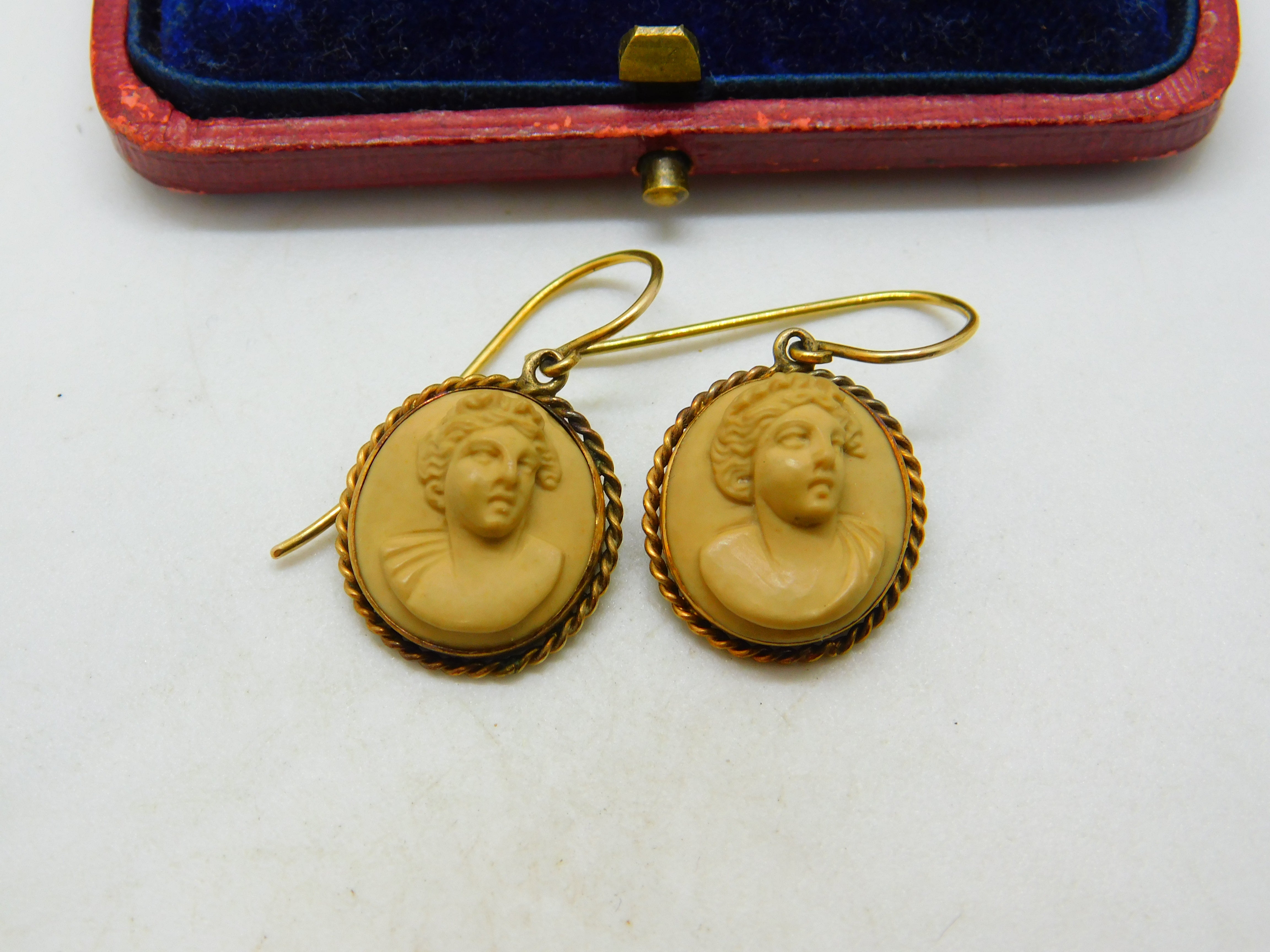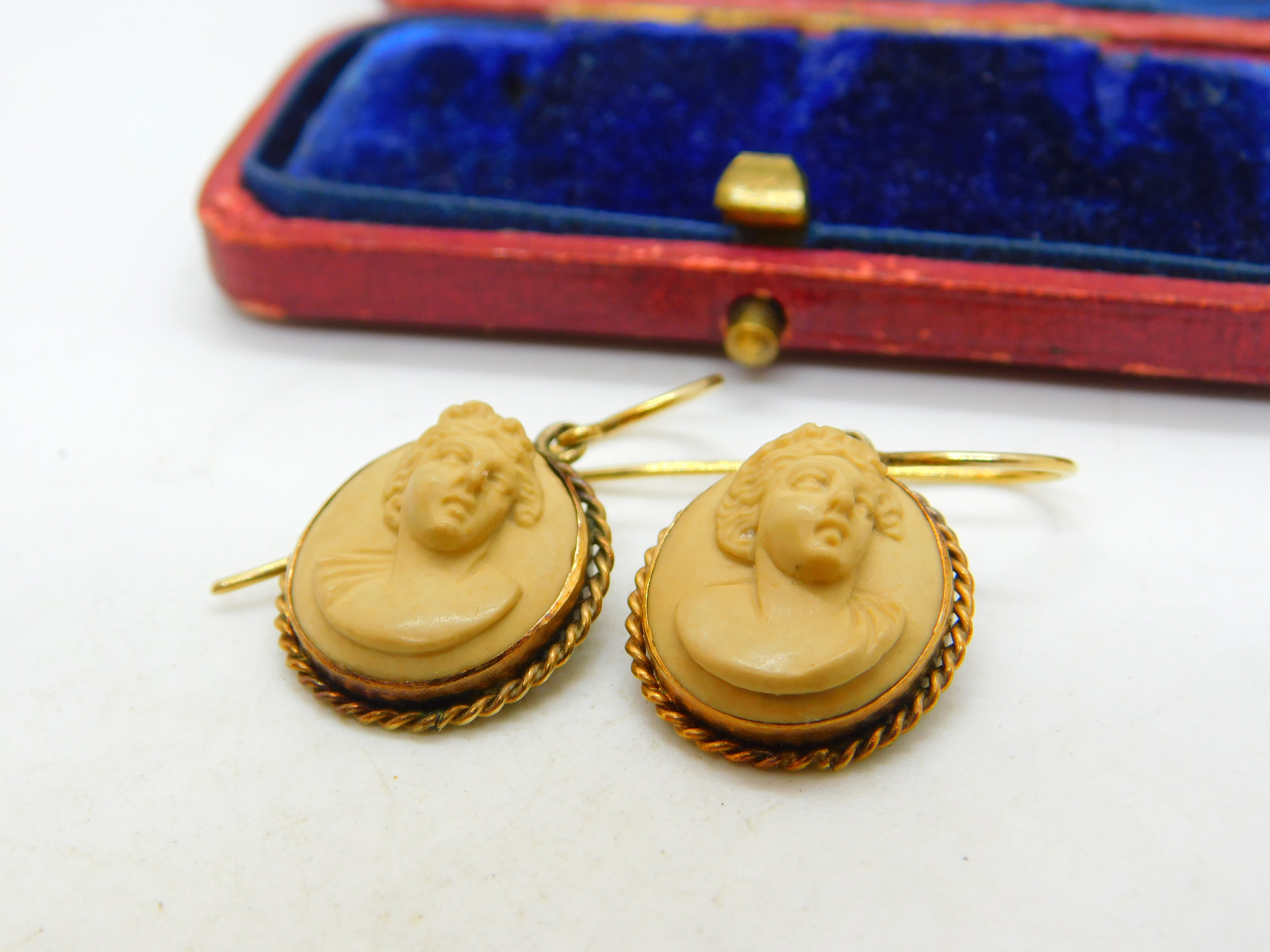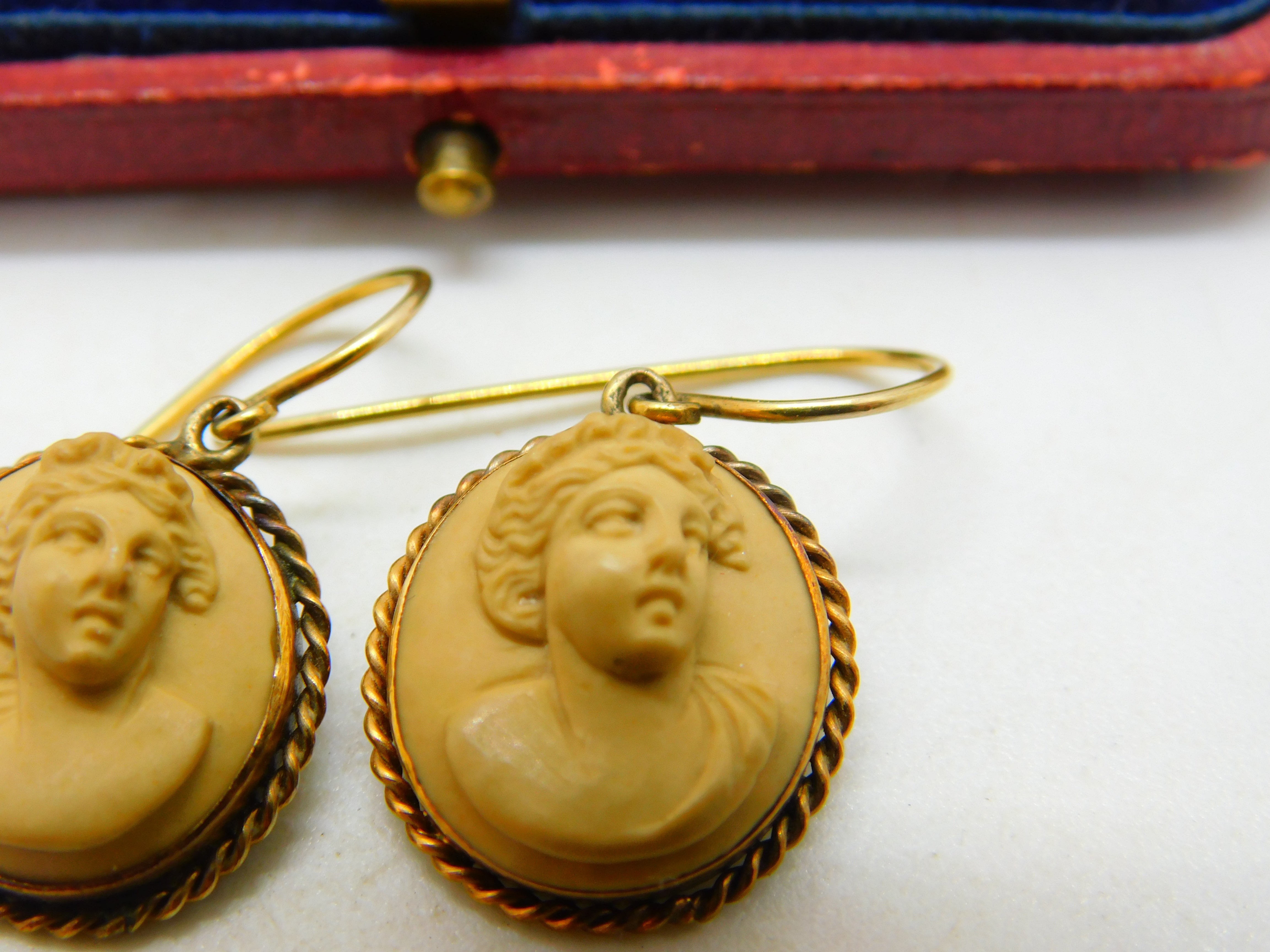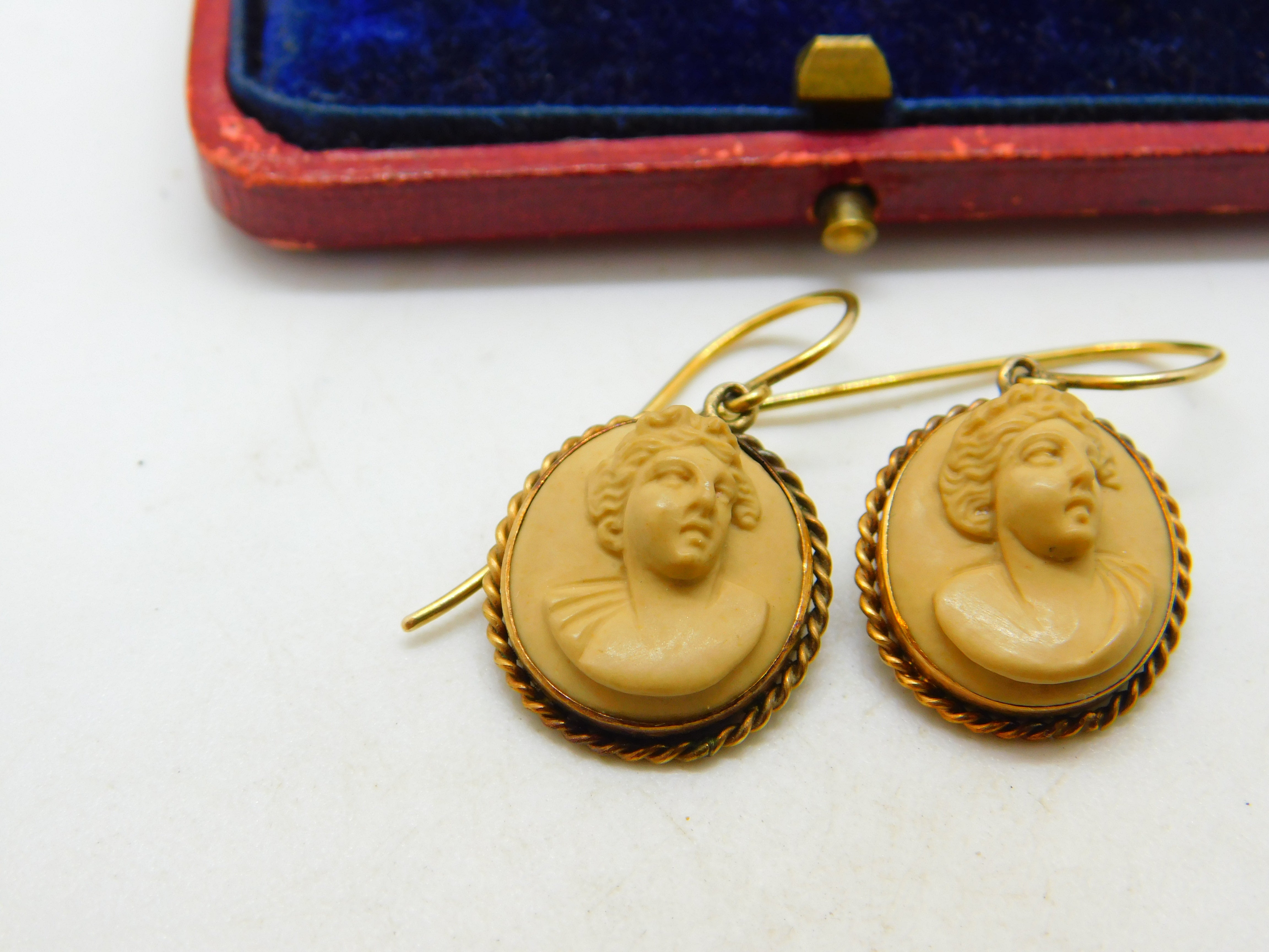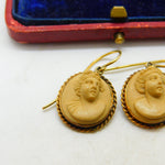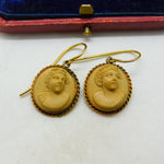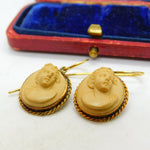 Regency Grand Tour 9ct Gold Carved Lava Female Cameo Earrings Antique c1830