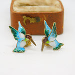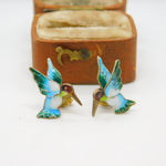 Sterling Silver Colourful Enamel Hummingbird Stud Earrings Antique c1930 Deco