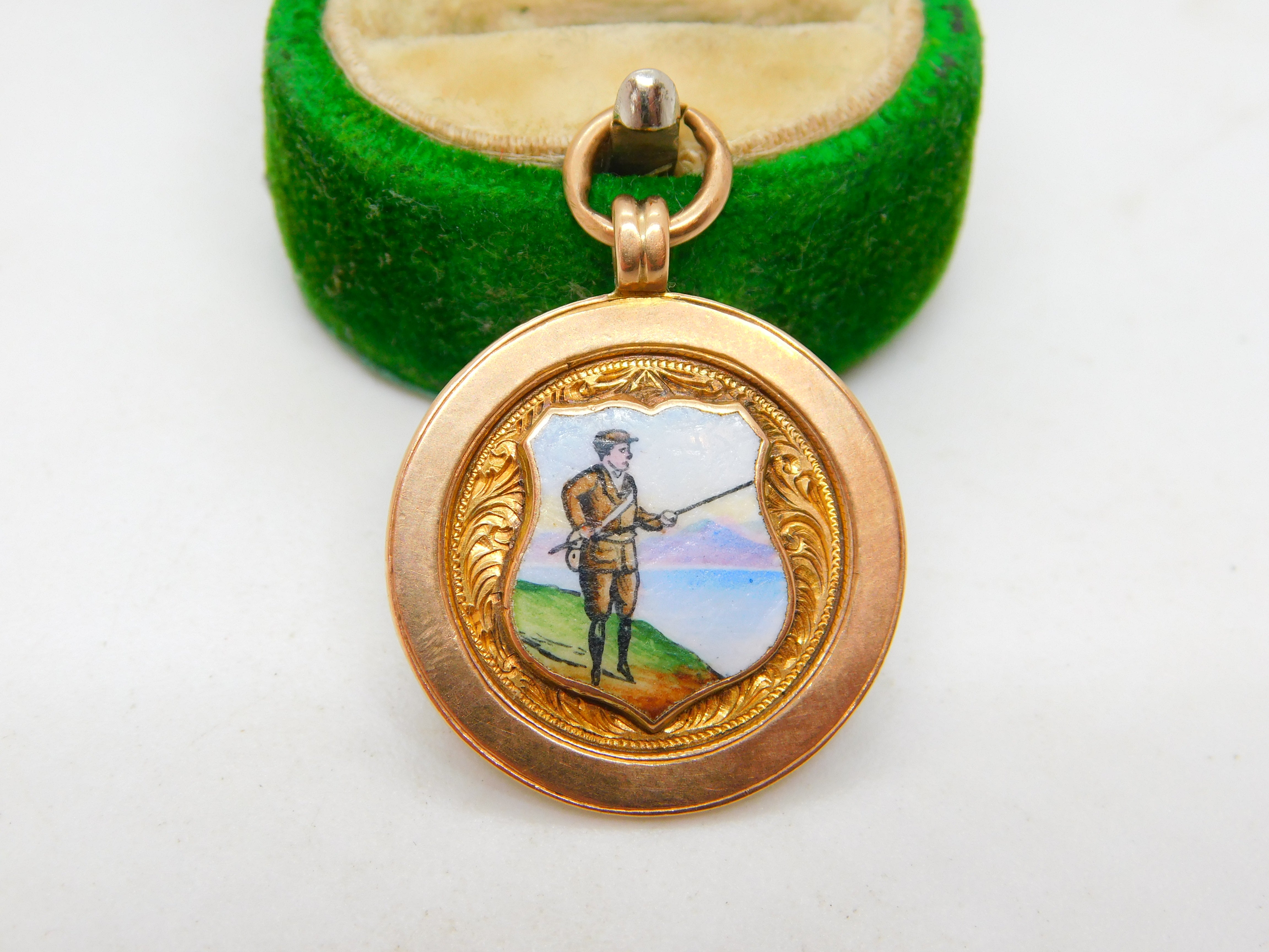 Details: A fantastic and wonderfully designed antique art deco 9ct rose gold & colourful enamel mounted angling or fishing club fob medal hallmarked Chester 1921. This is a wonderful item that would make a perfect gift or addition to any collection. The BOX pictured is for PRESENTATION ONLY and is NOT included in the listings but used to frame the pictures unless specifically stated otherwise.