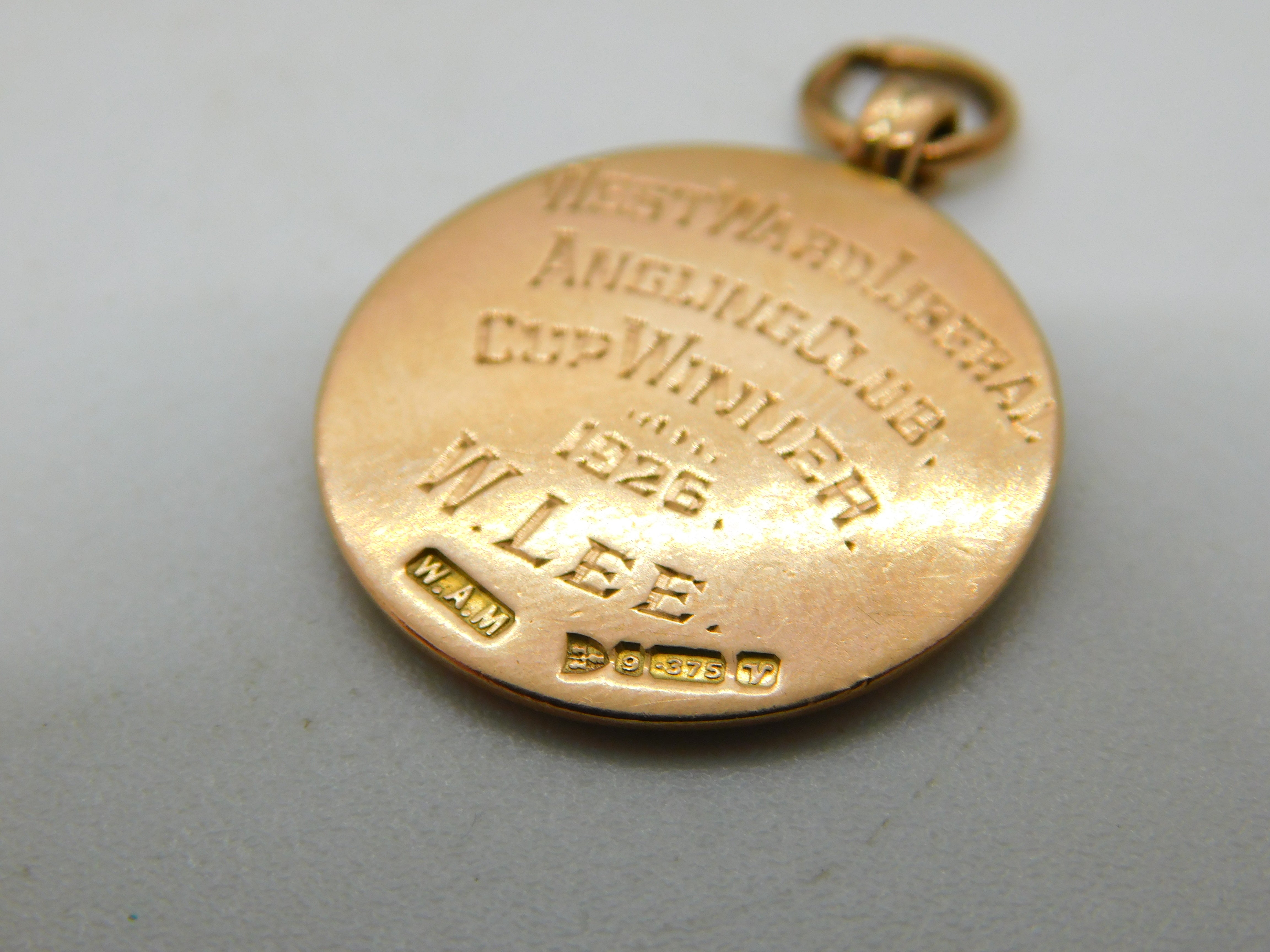 9ct Yellow Gold Enamel Angling Fishing Fob Antique 1921 Chester Art Deco
