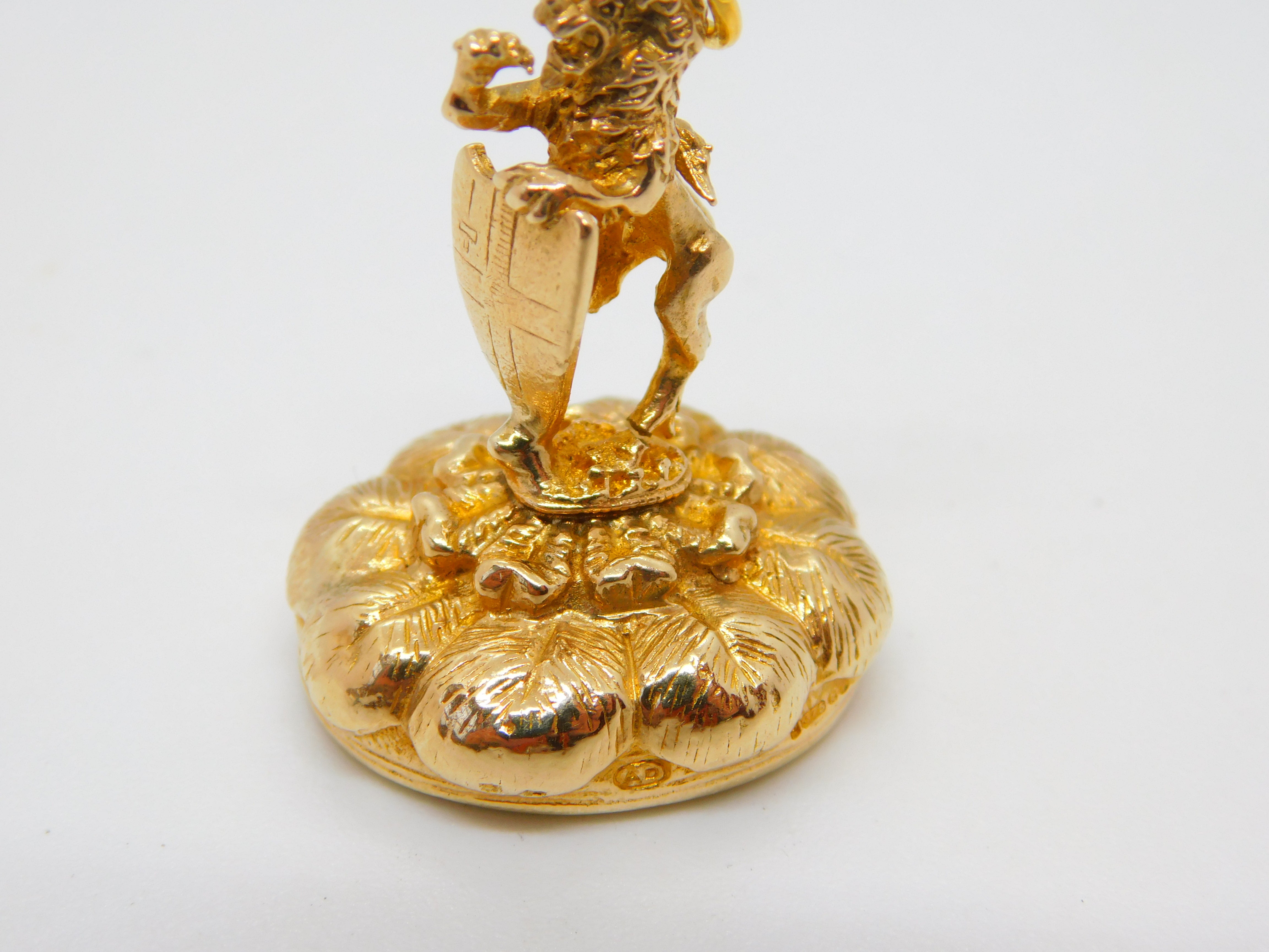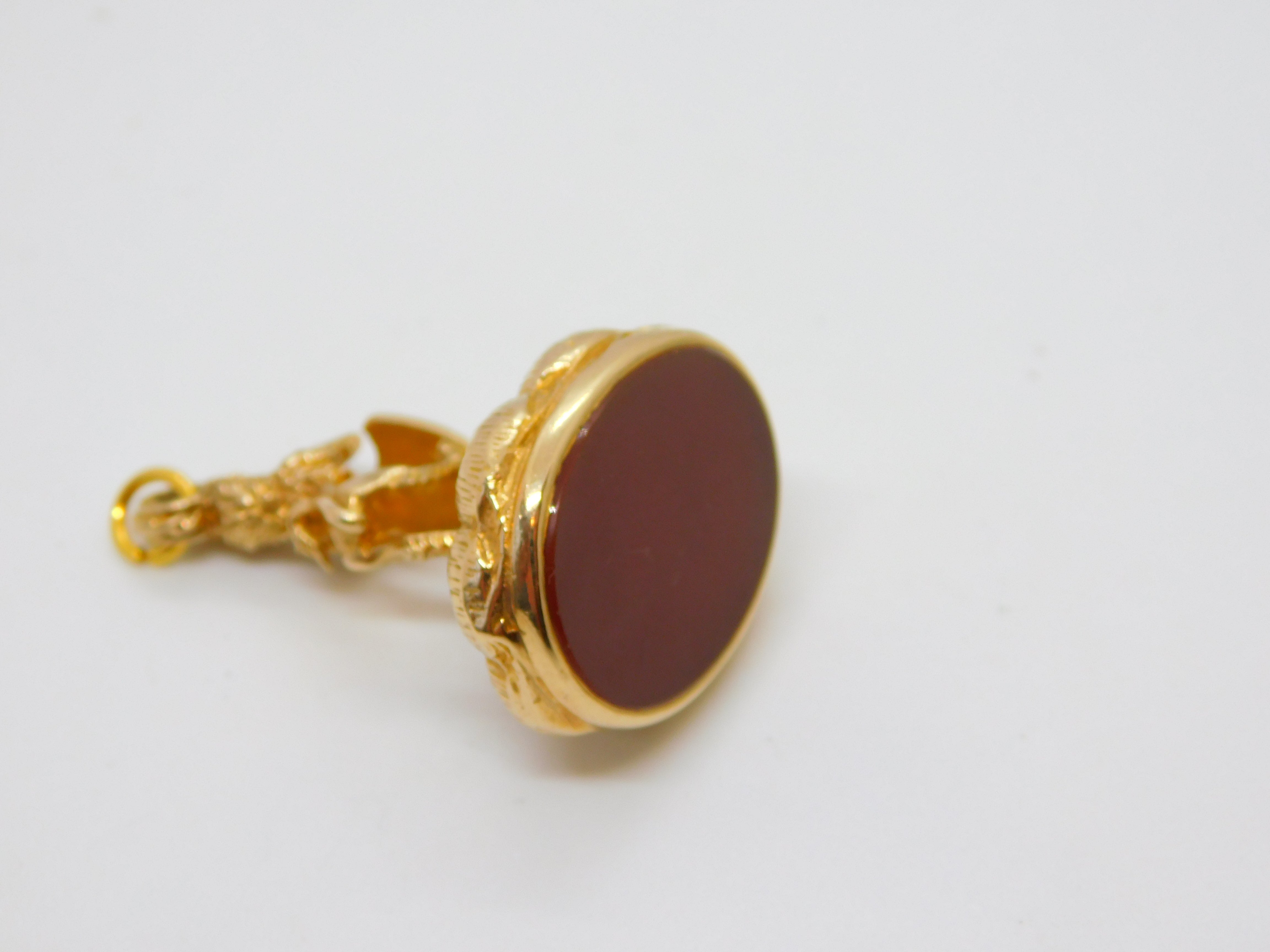 9ct Yellow Gold Regal Lion & Shield Carnelian Set Fob Seal Vintage 1966 London