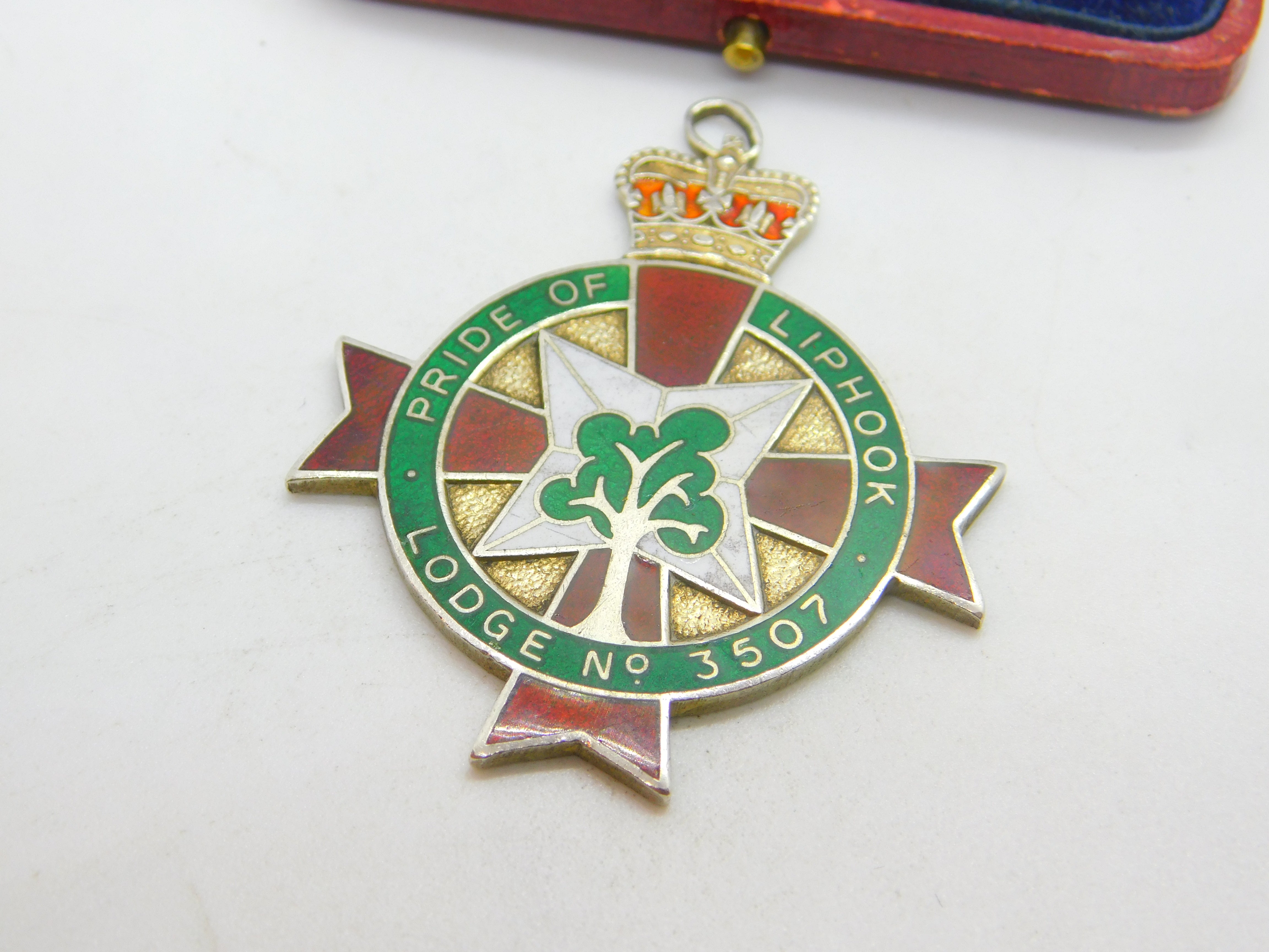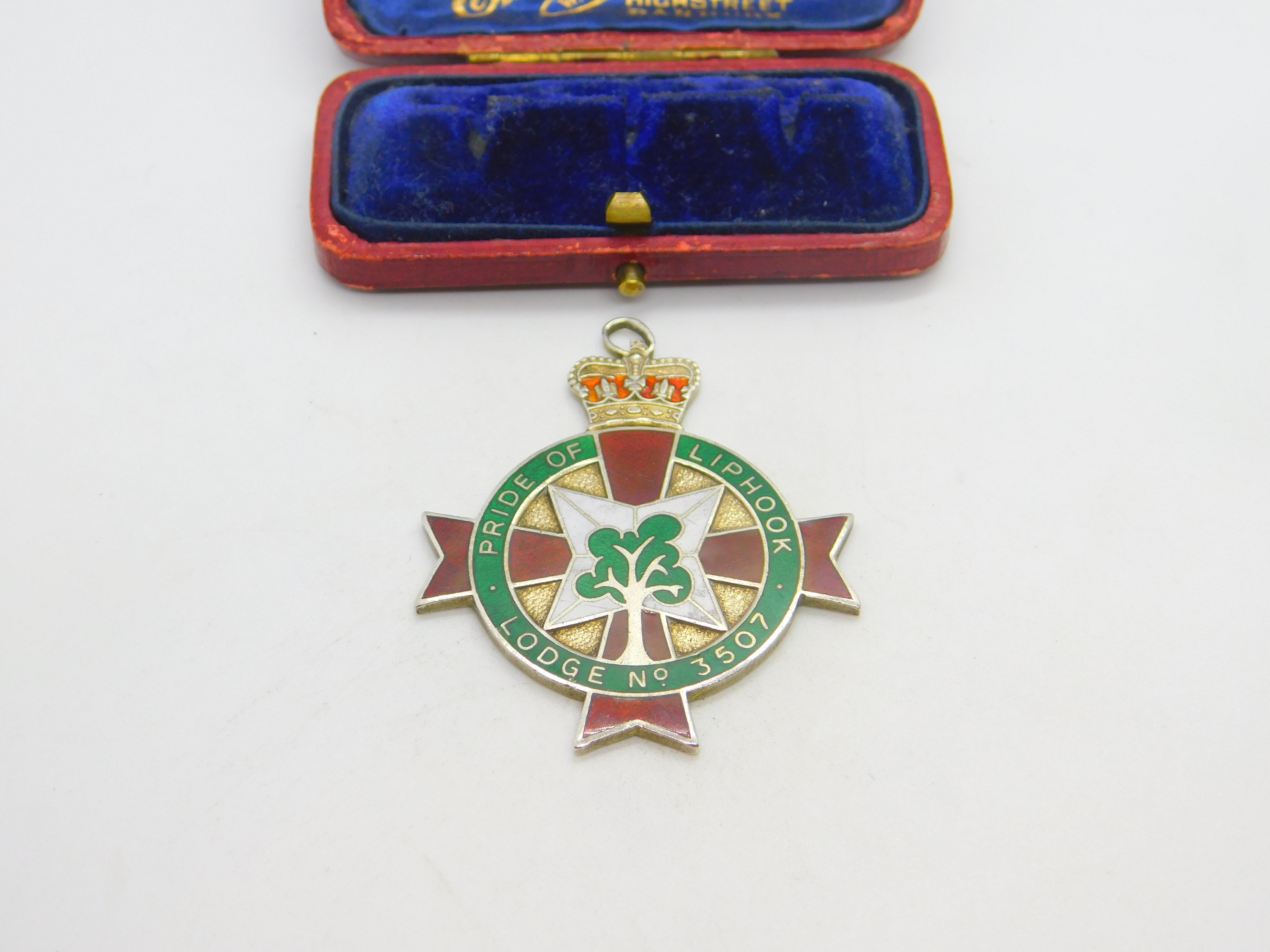 Sterling Silver & Enamel 'Pride of Liphook' Masonic Fob Medal 1971 Birmingham