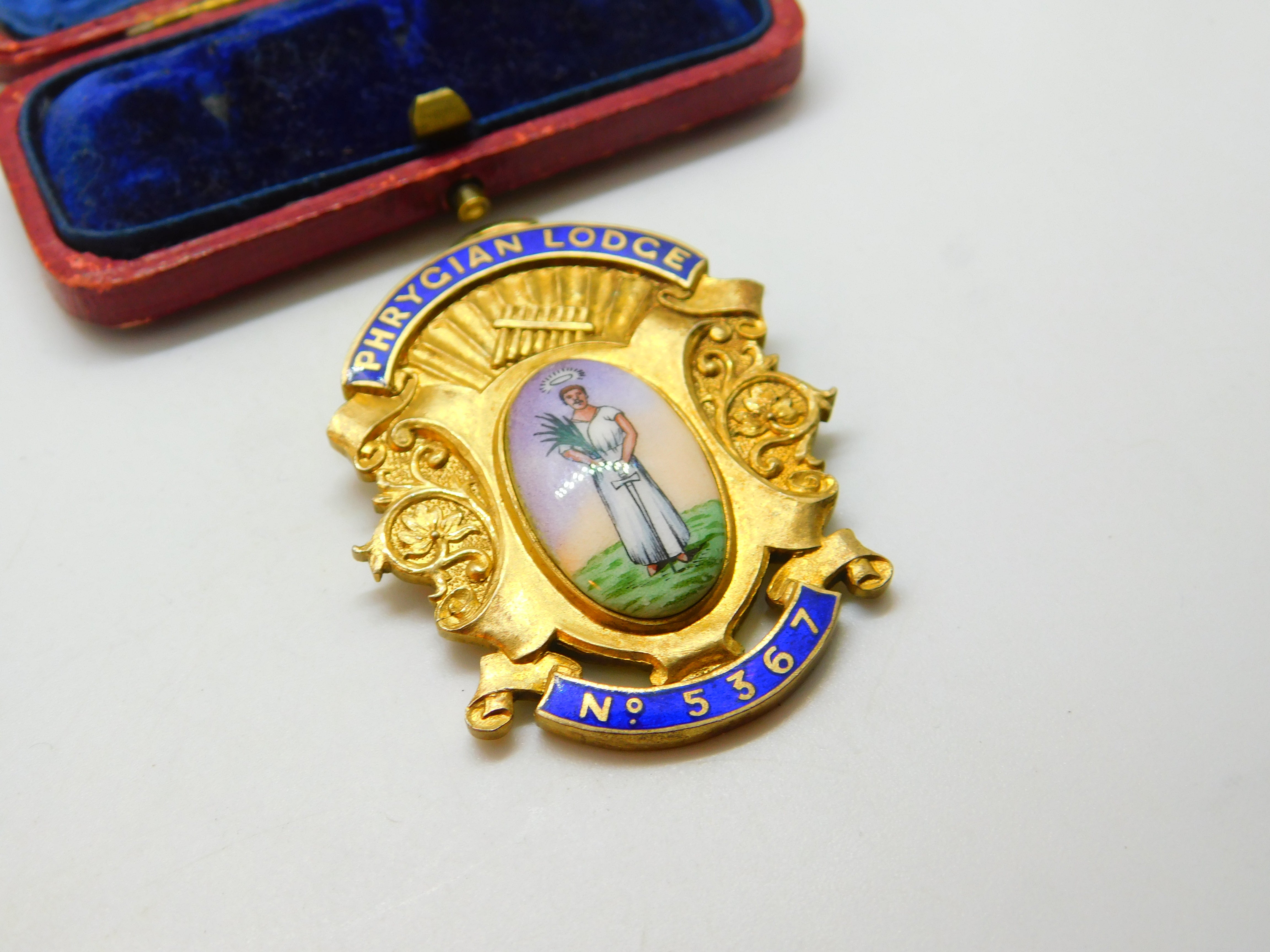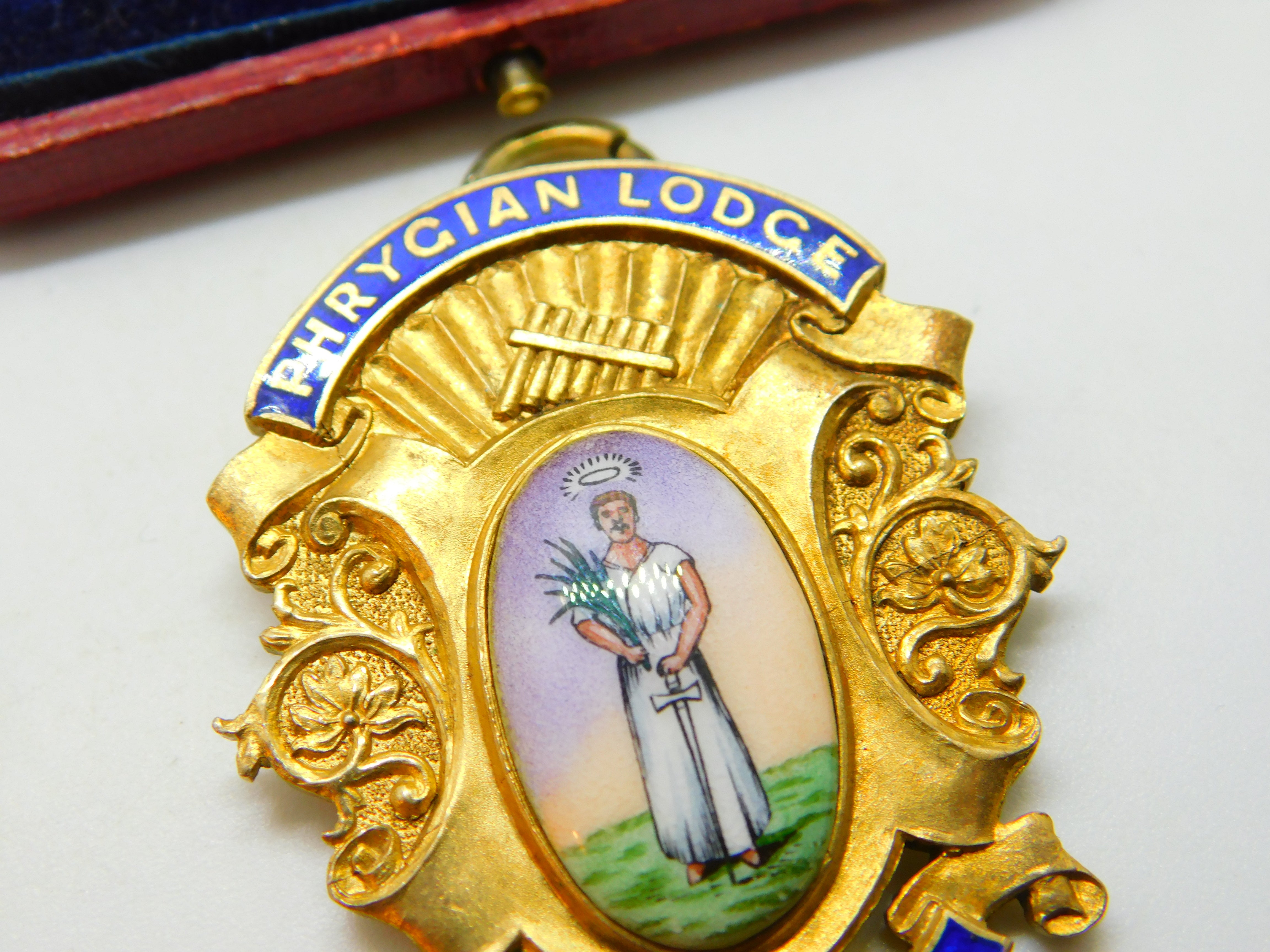 Sterling Silver Gilt & Enamel 'Phrygian Lodge' Masonic Fob Pendant Antique c1913