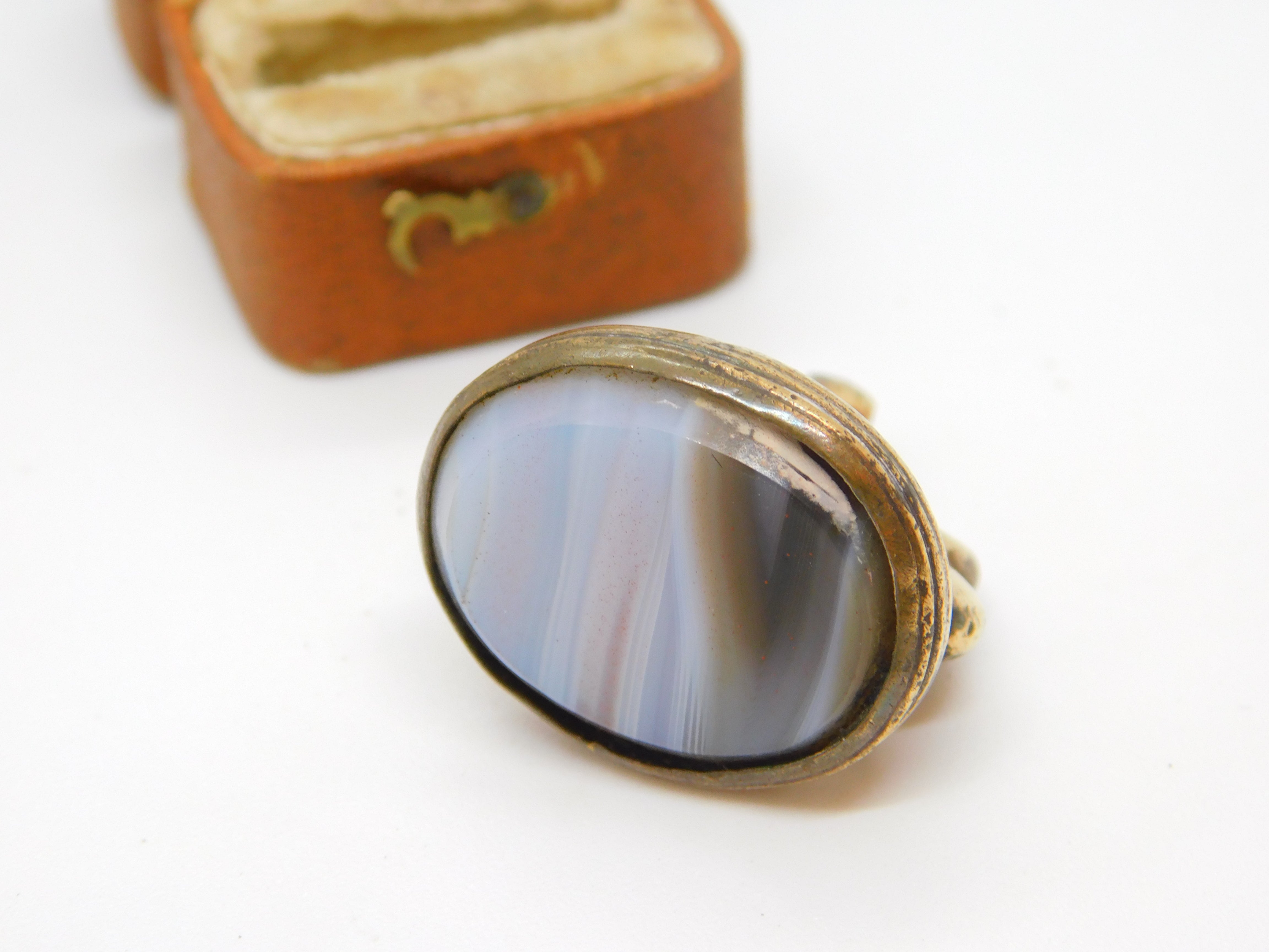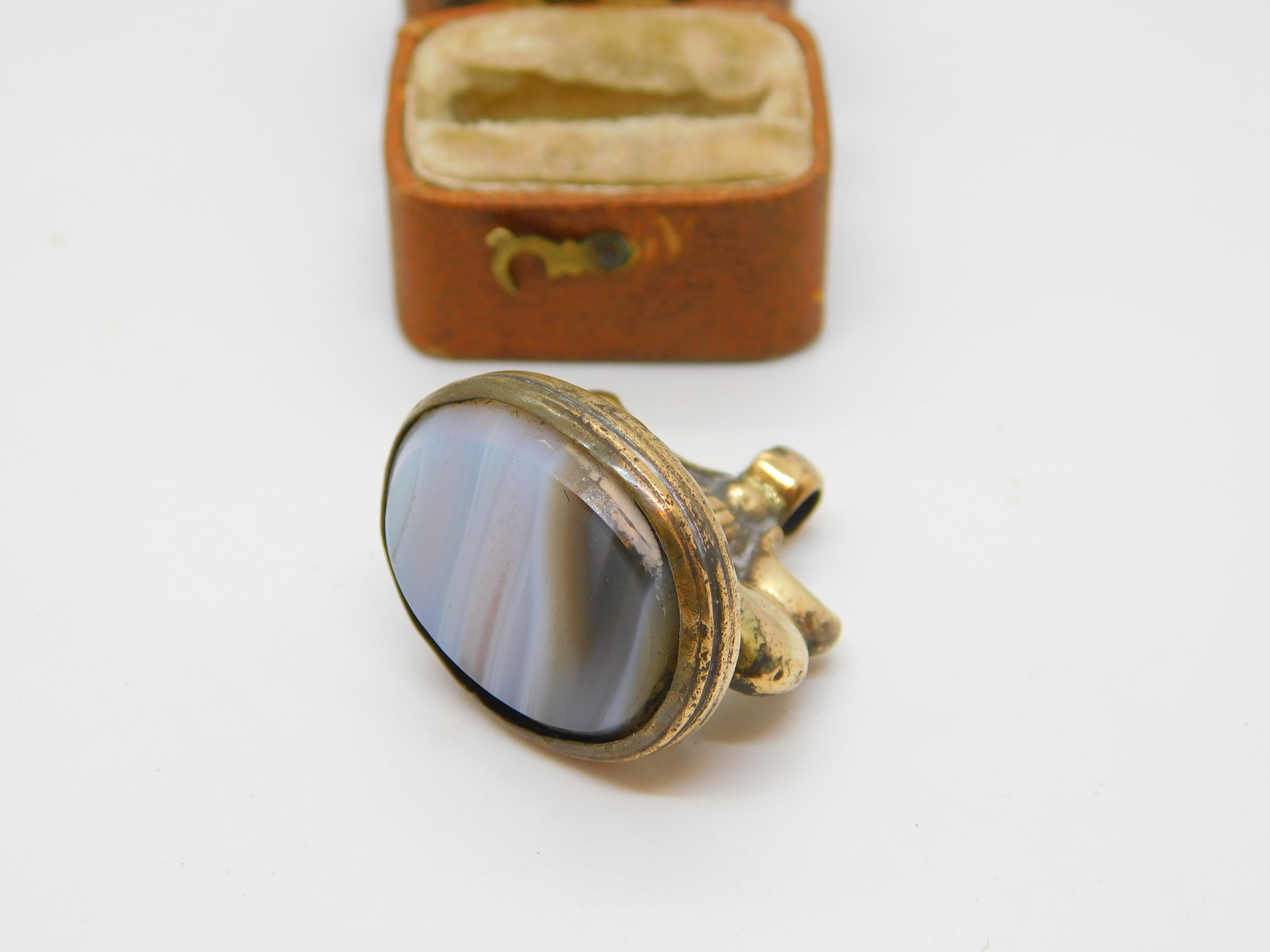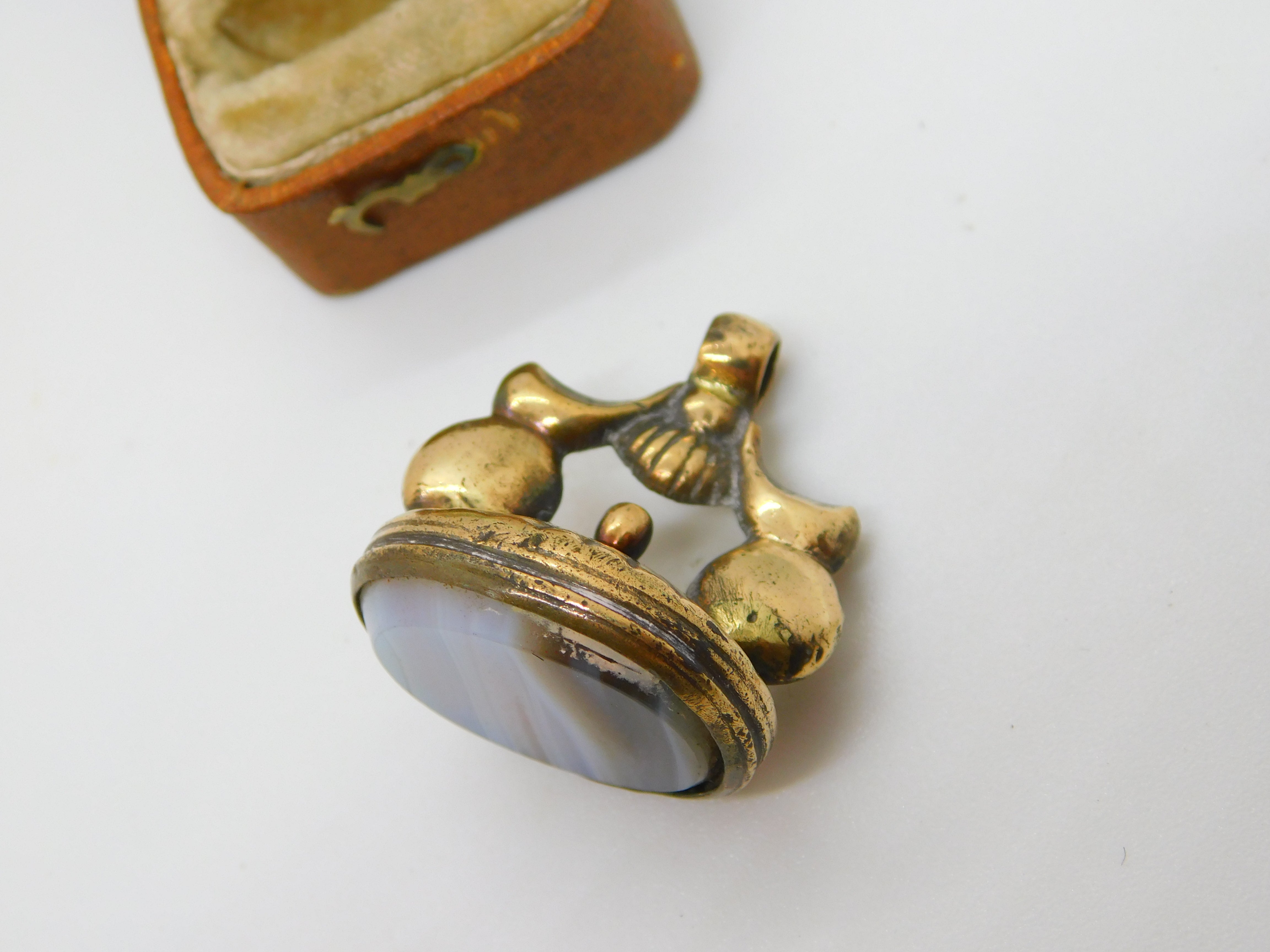 Victorian Rolled Gold & Montrose Agate Set Scales of Justice Fob c1840 Antique