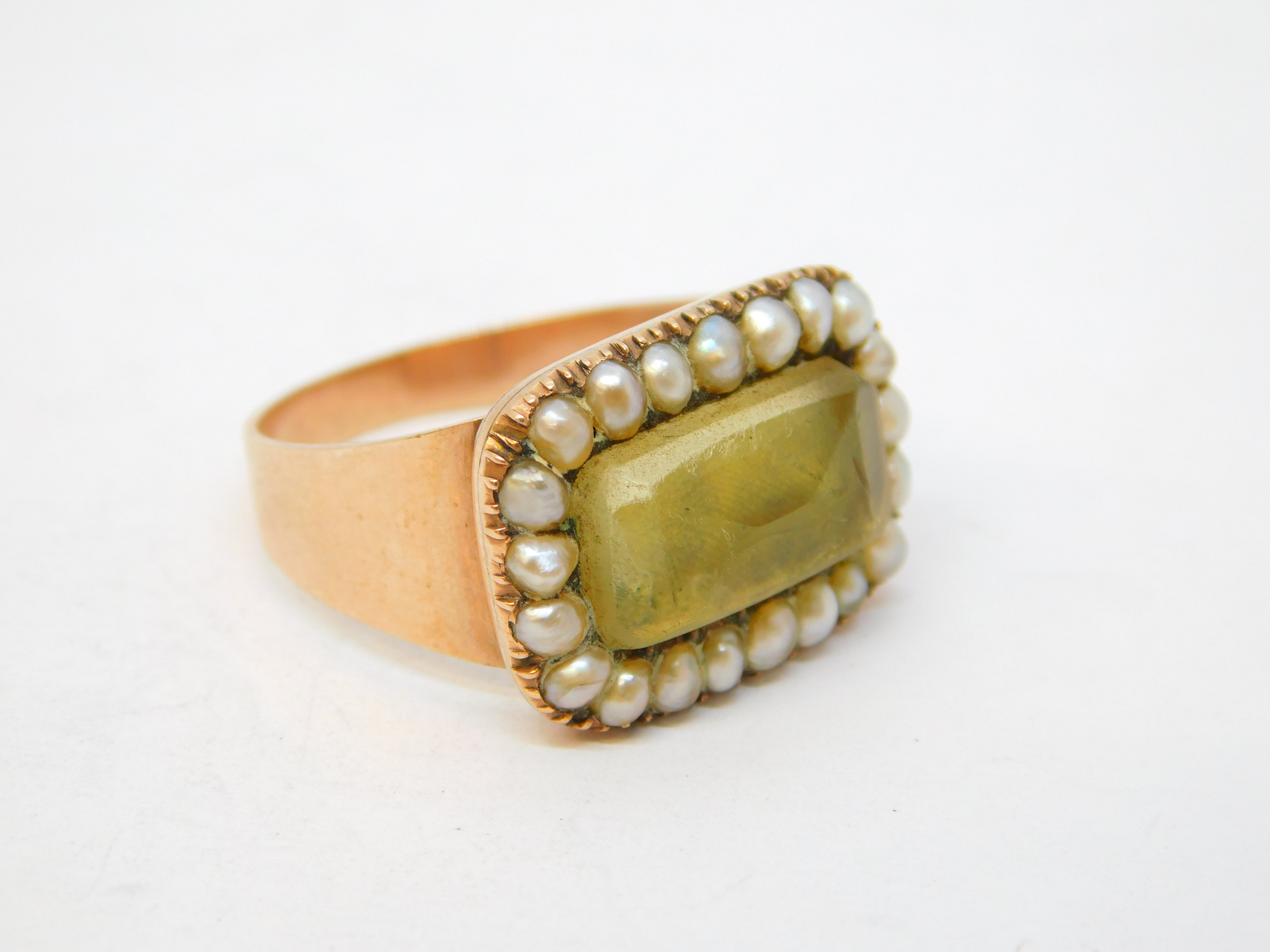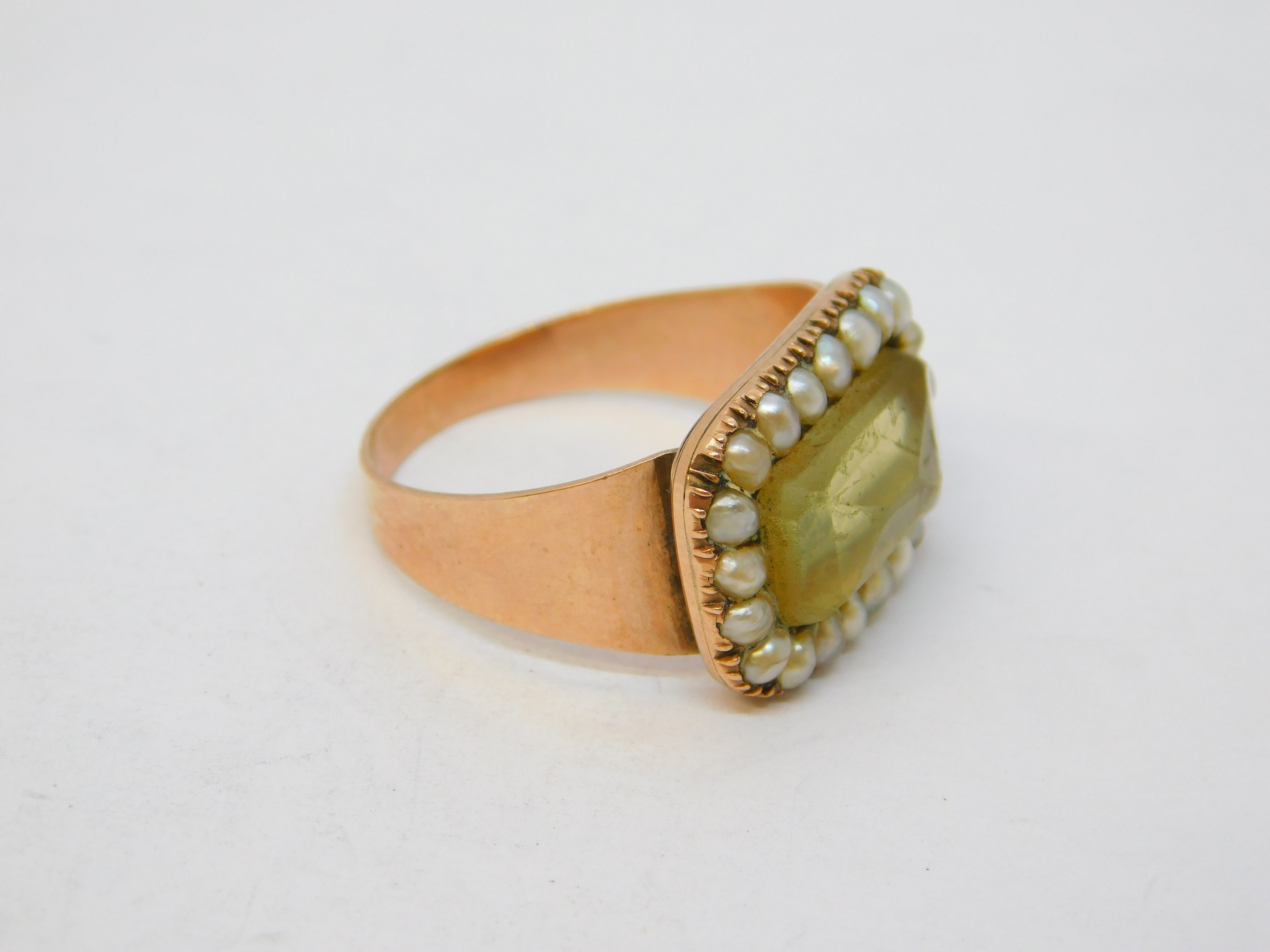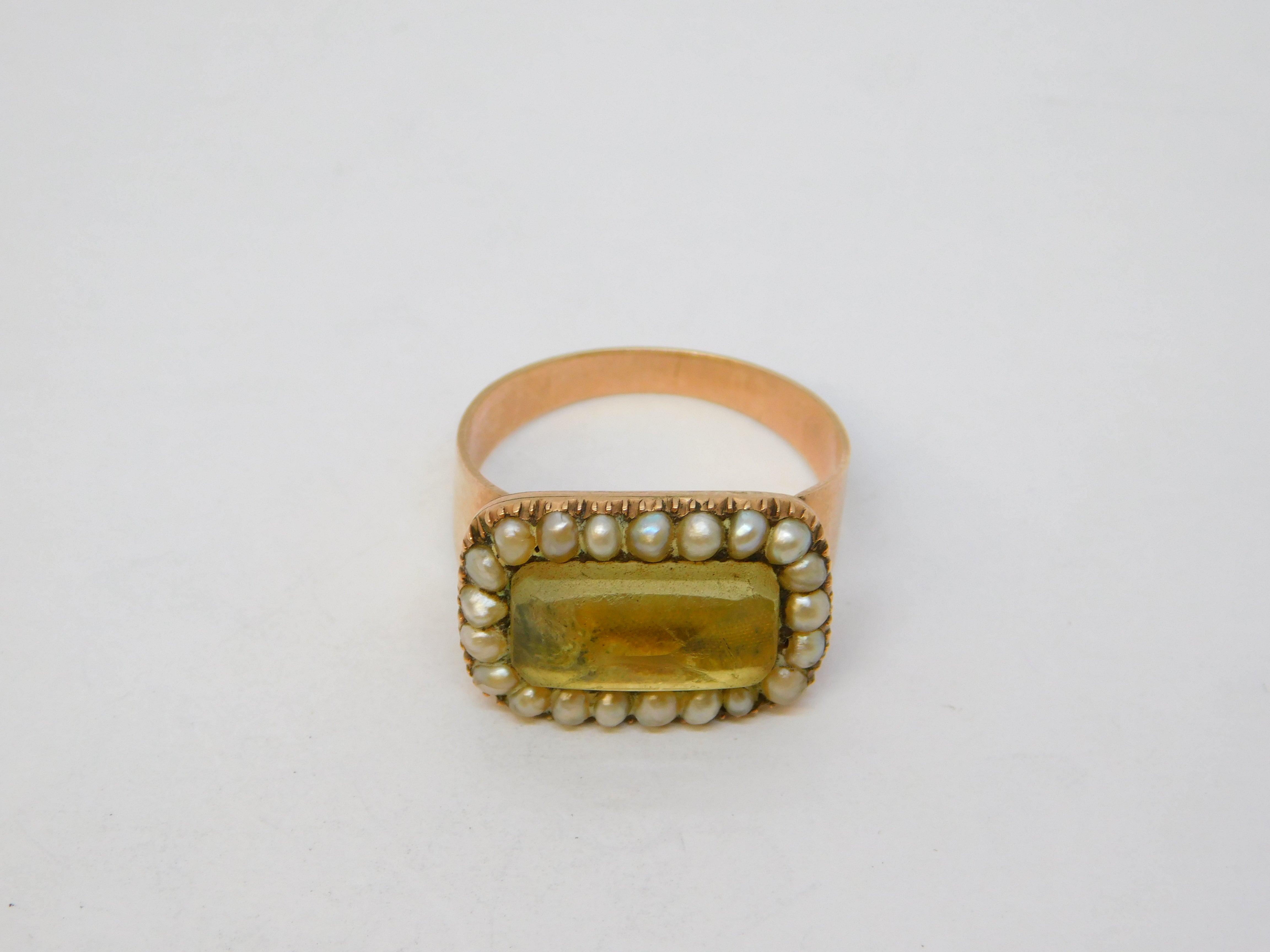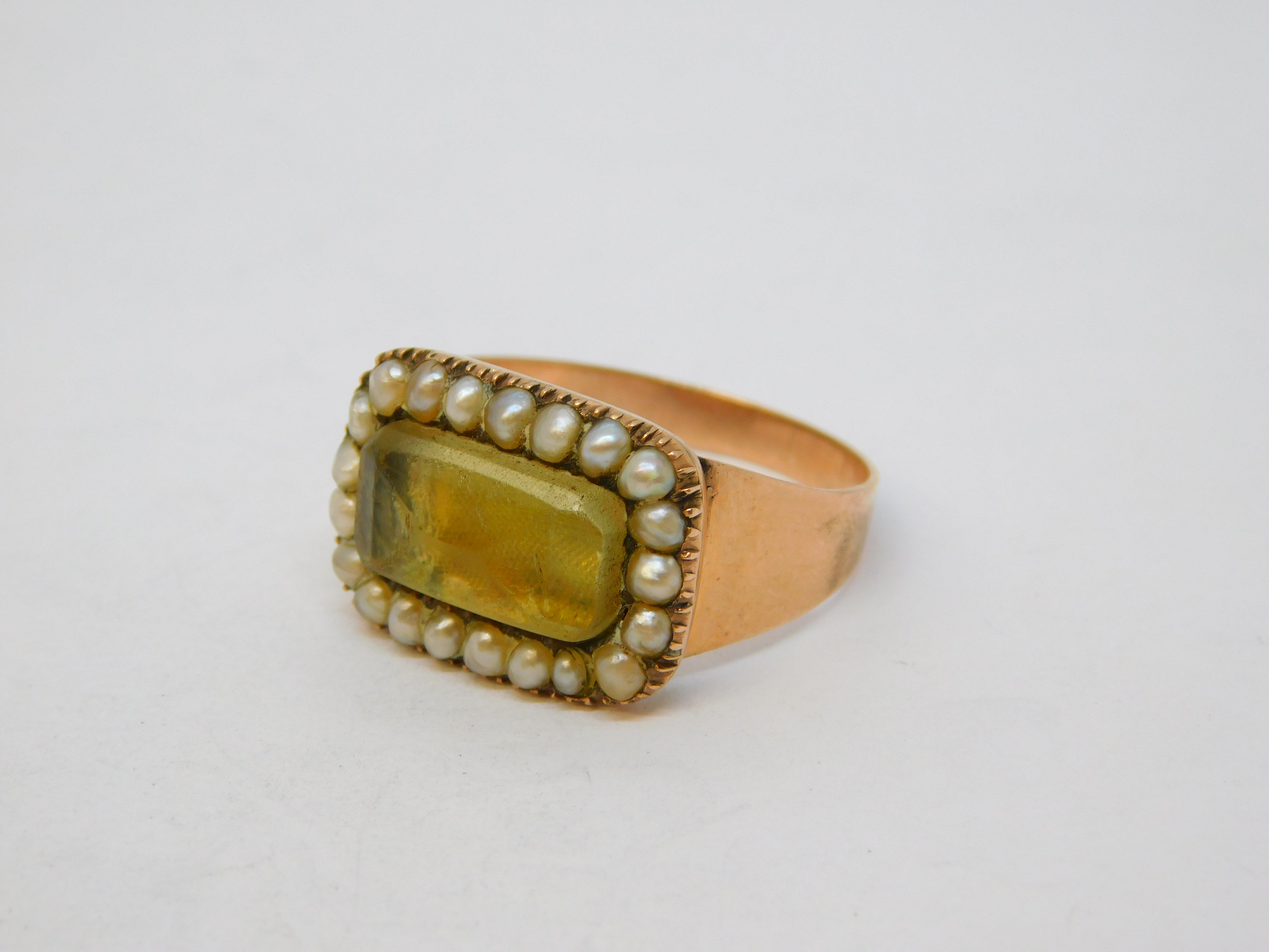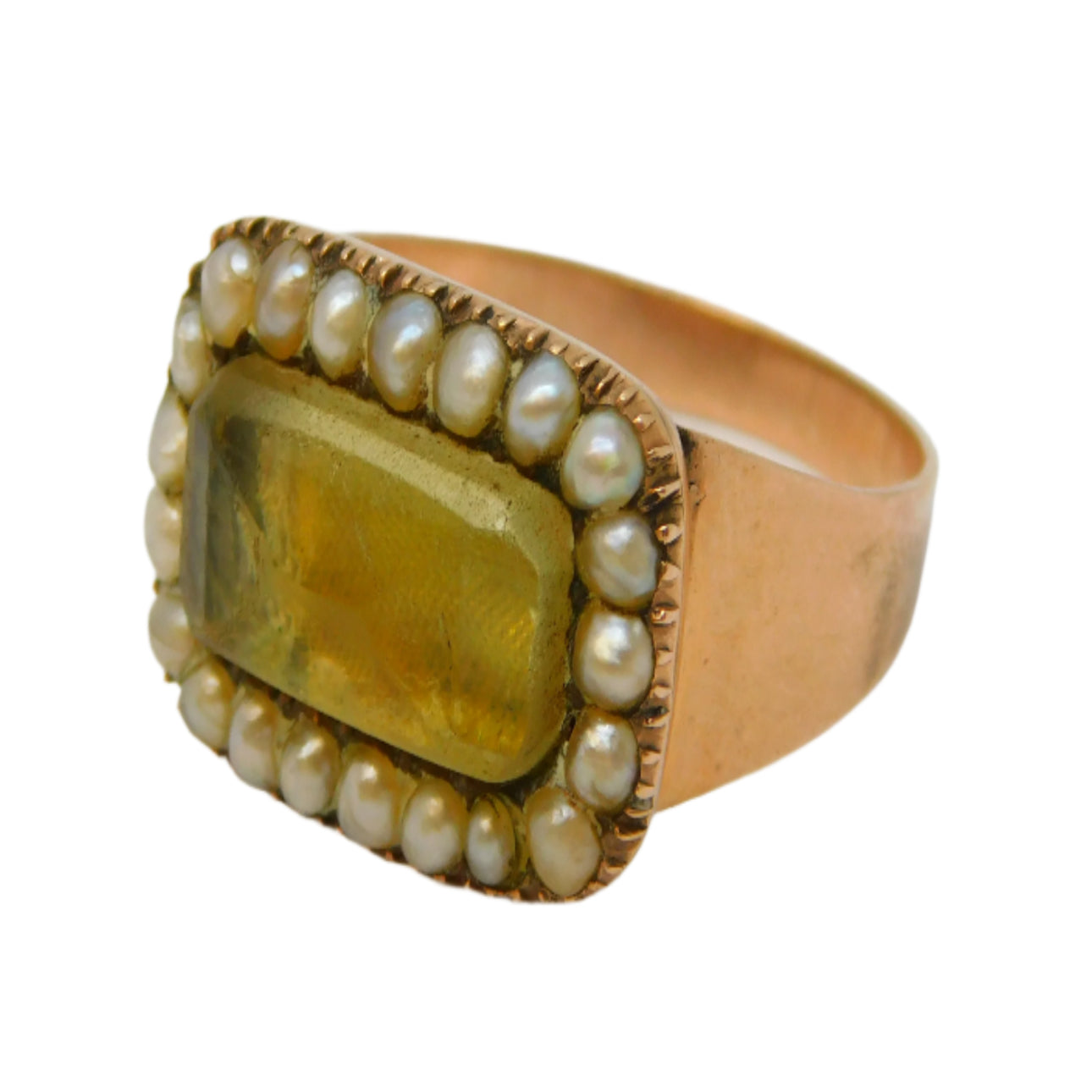 George III 12ct Rose Gold, Seed Pearl & Citrine Set Mourning Ring Antique c1800