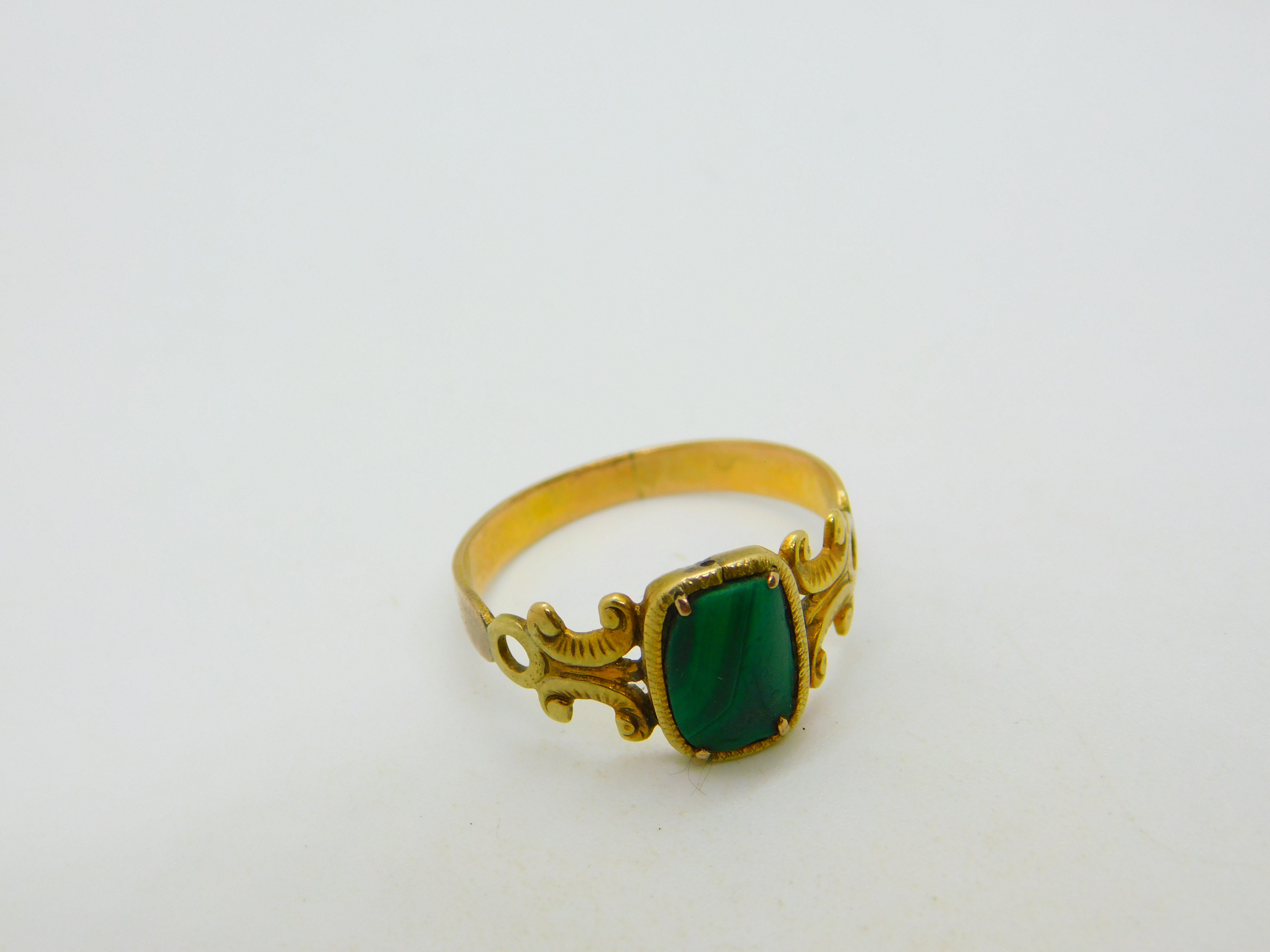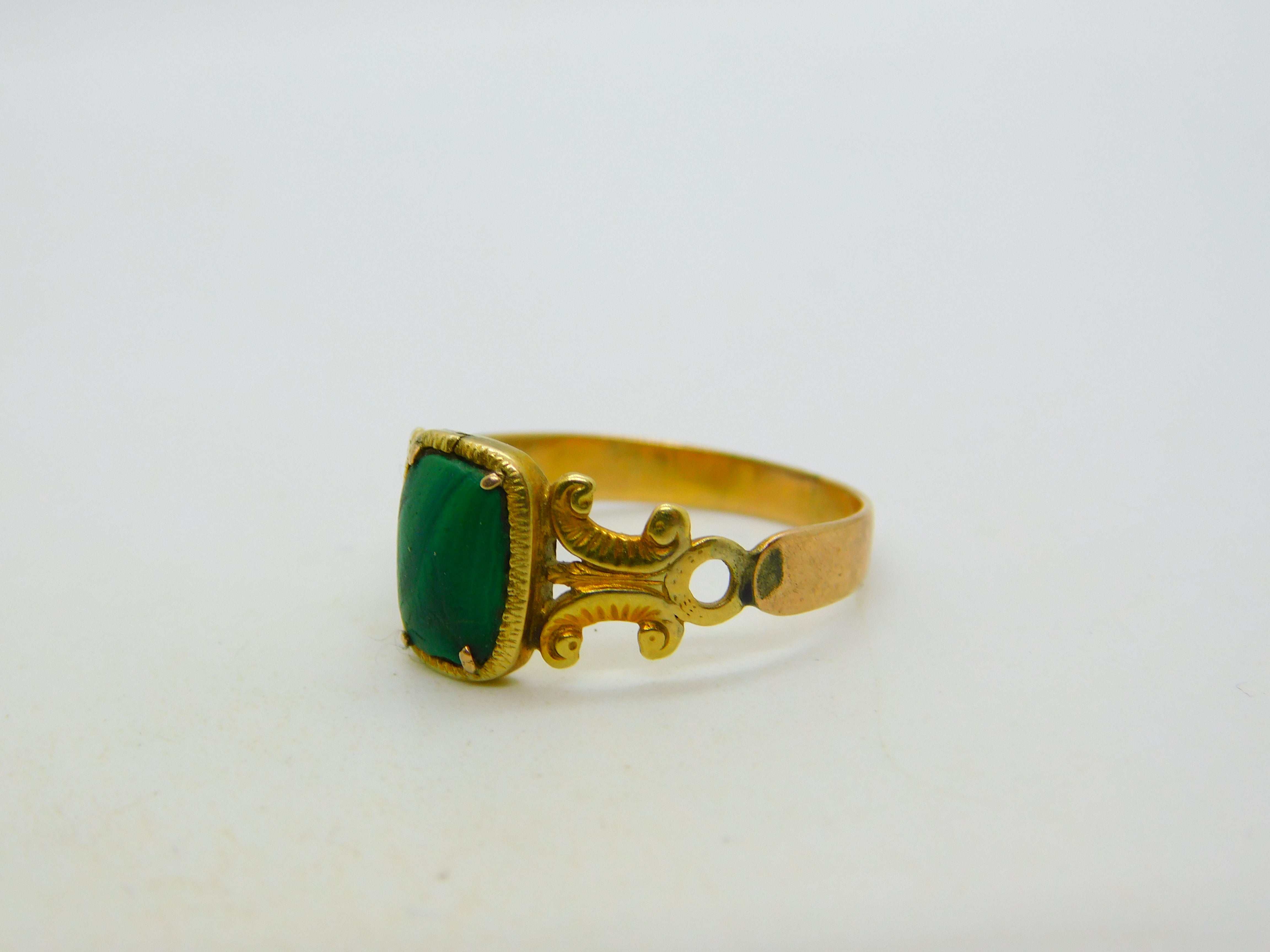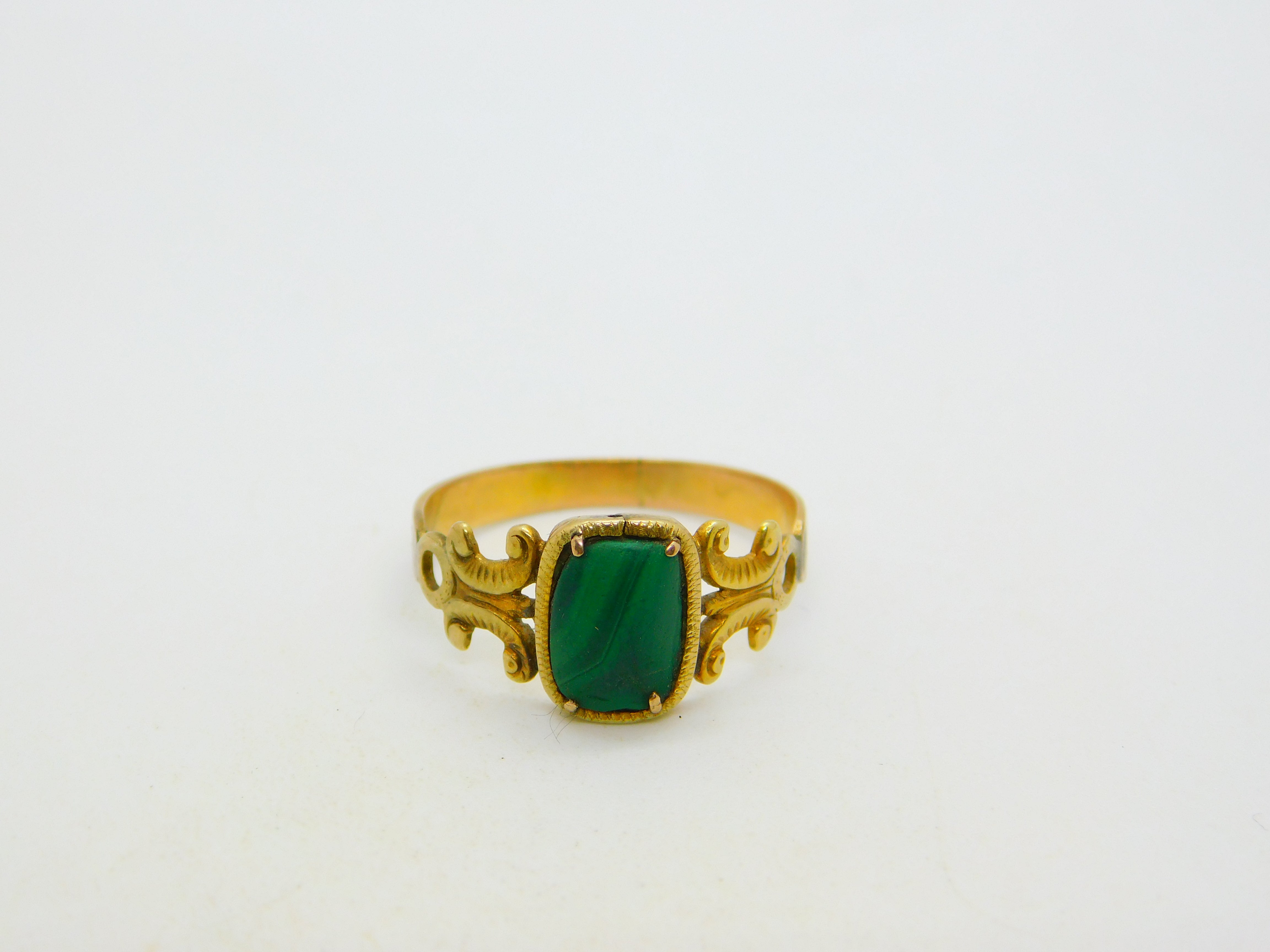 George III 15ct Gold & Green Malachite Panel Set Dress Ring Antique c1790
