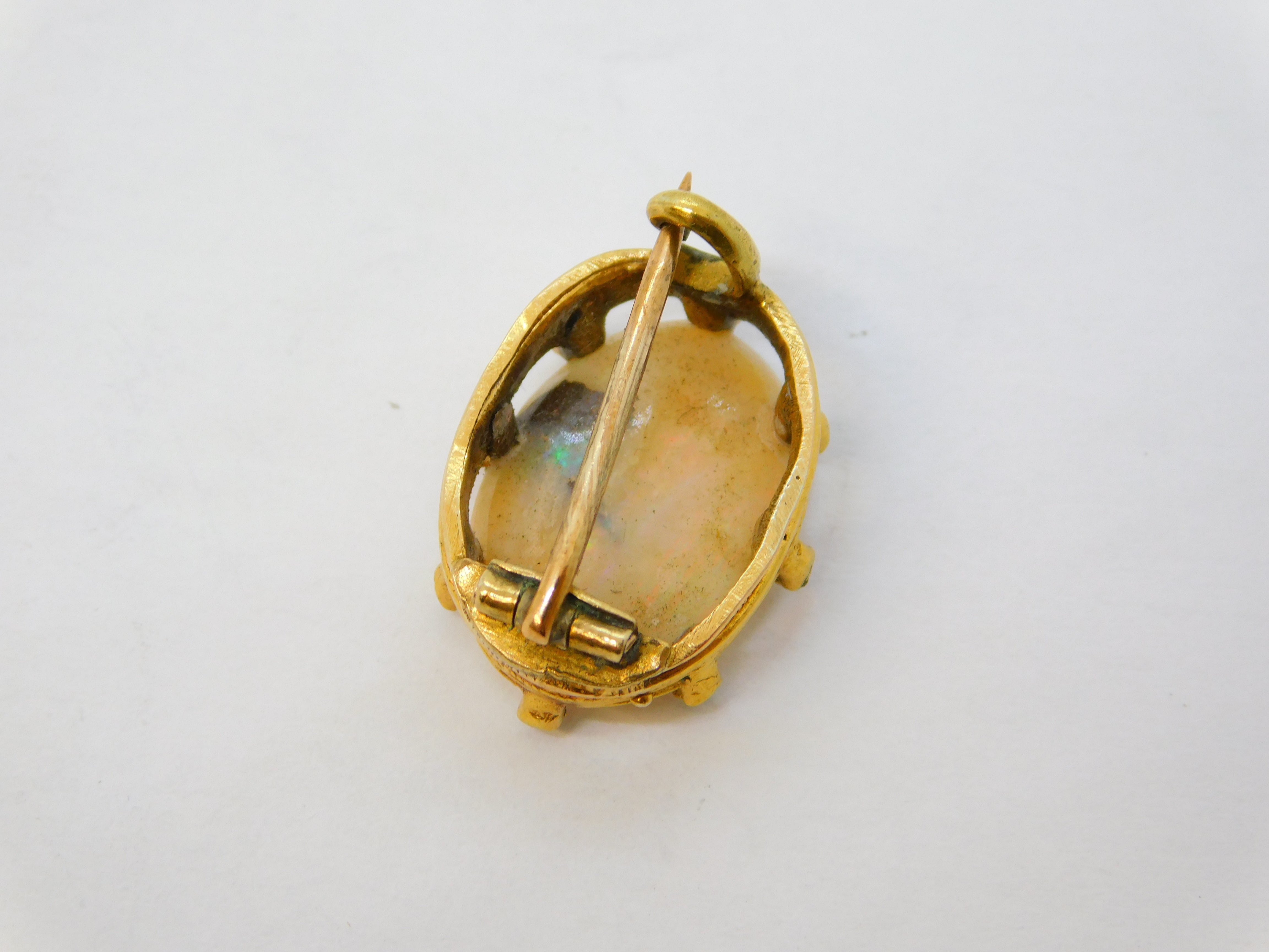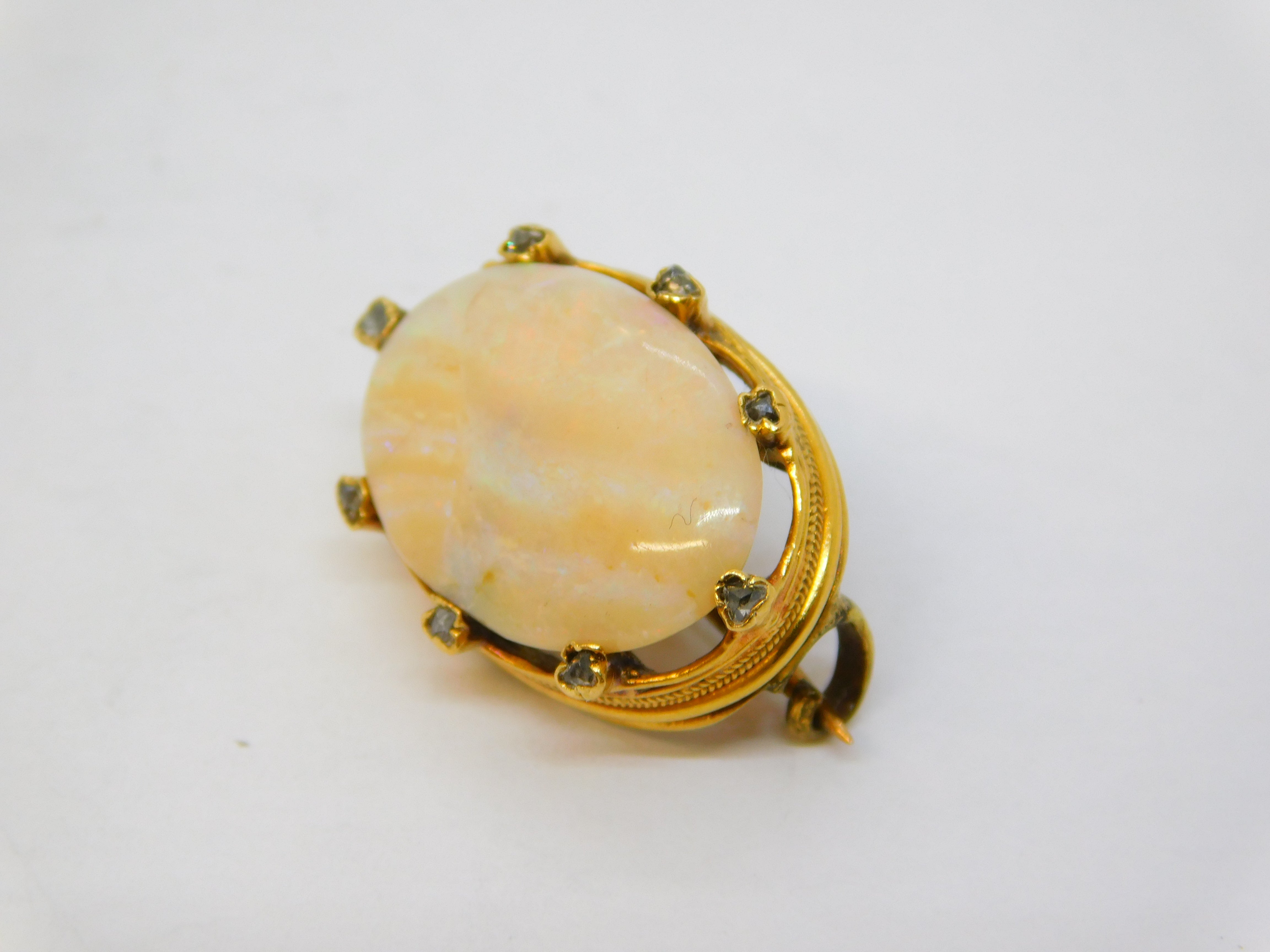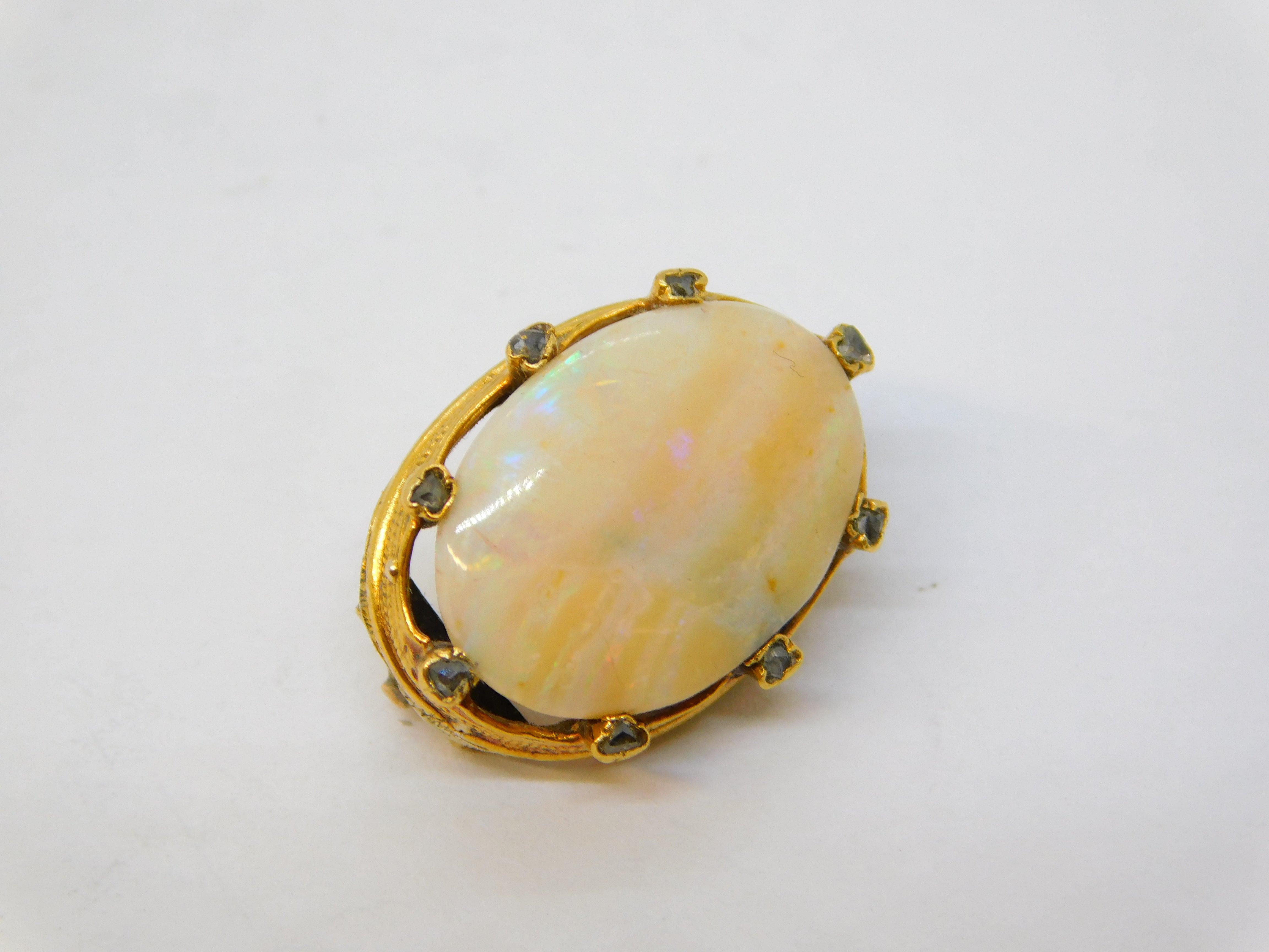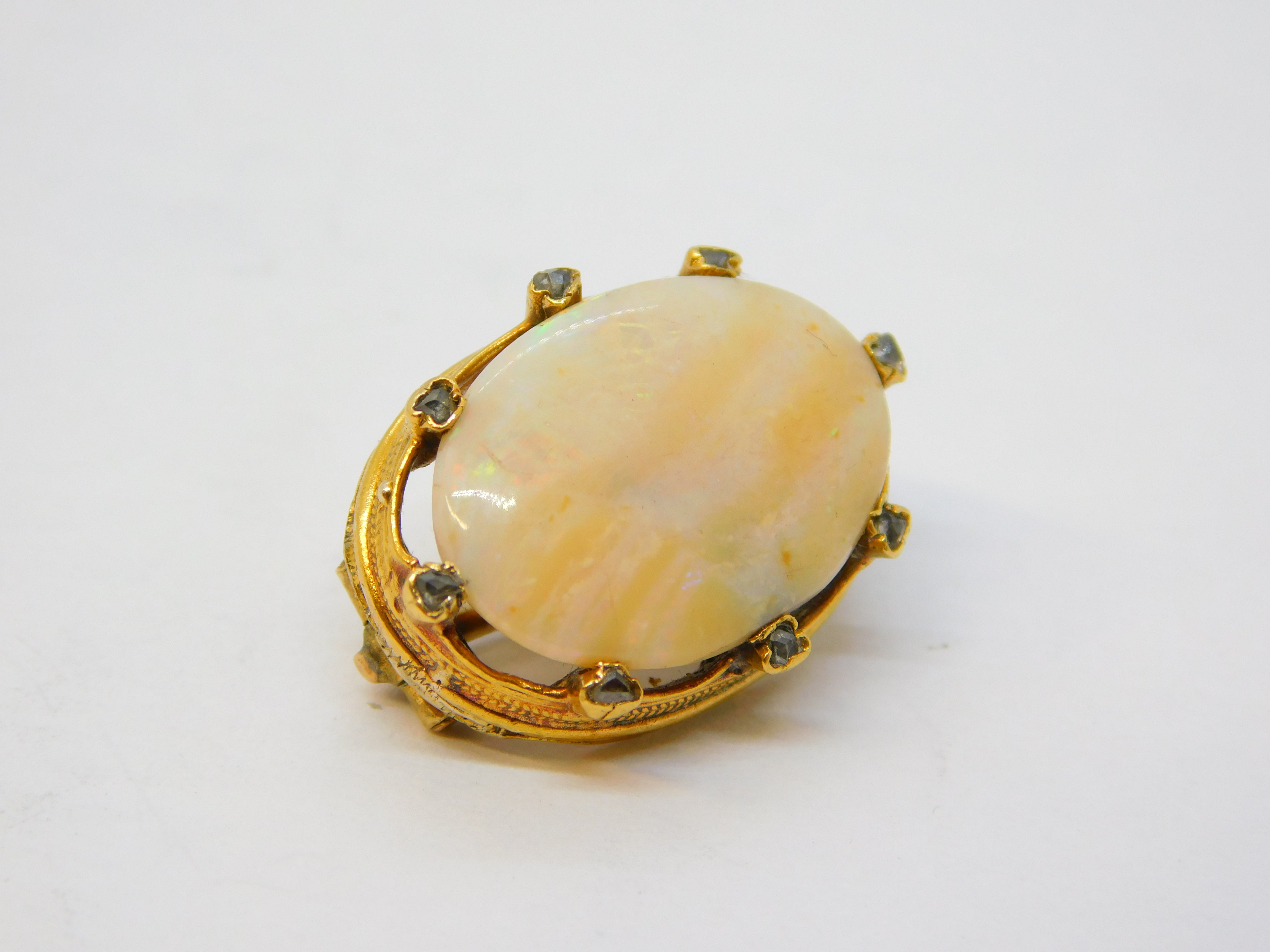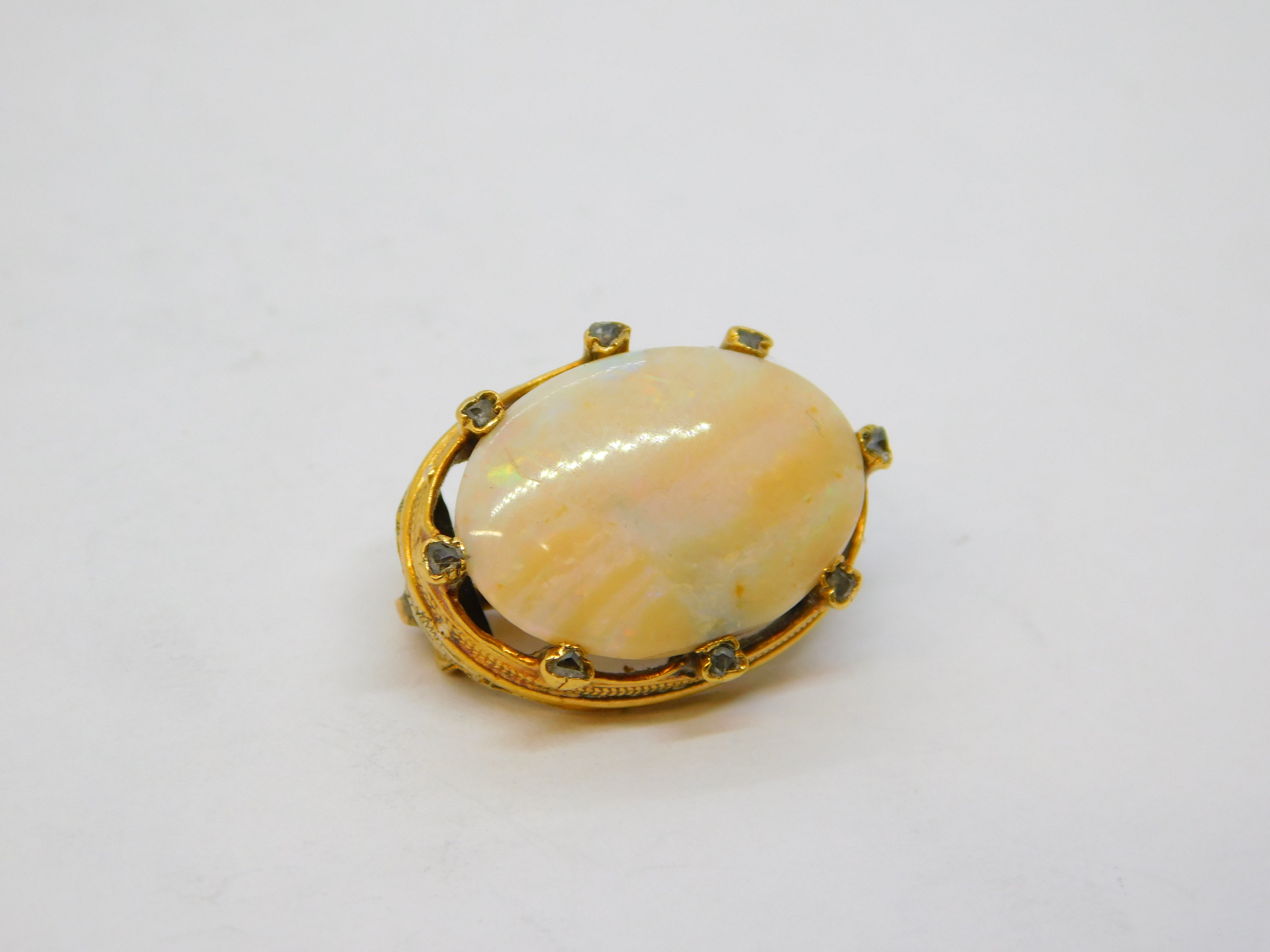 George III 15ct Gold, Old Cut Diamond, Large White Opal Brooch Antique c1800