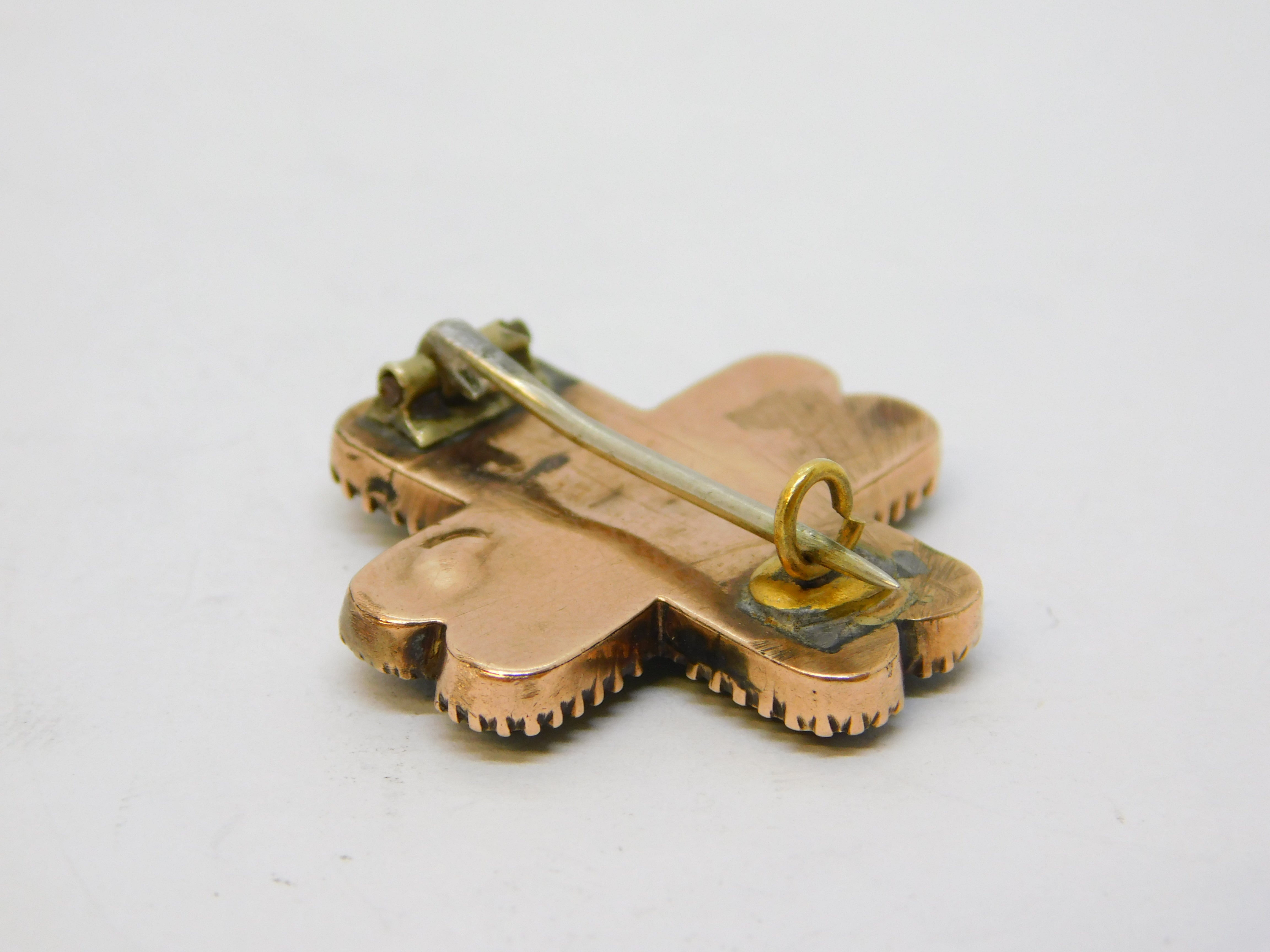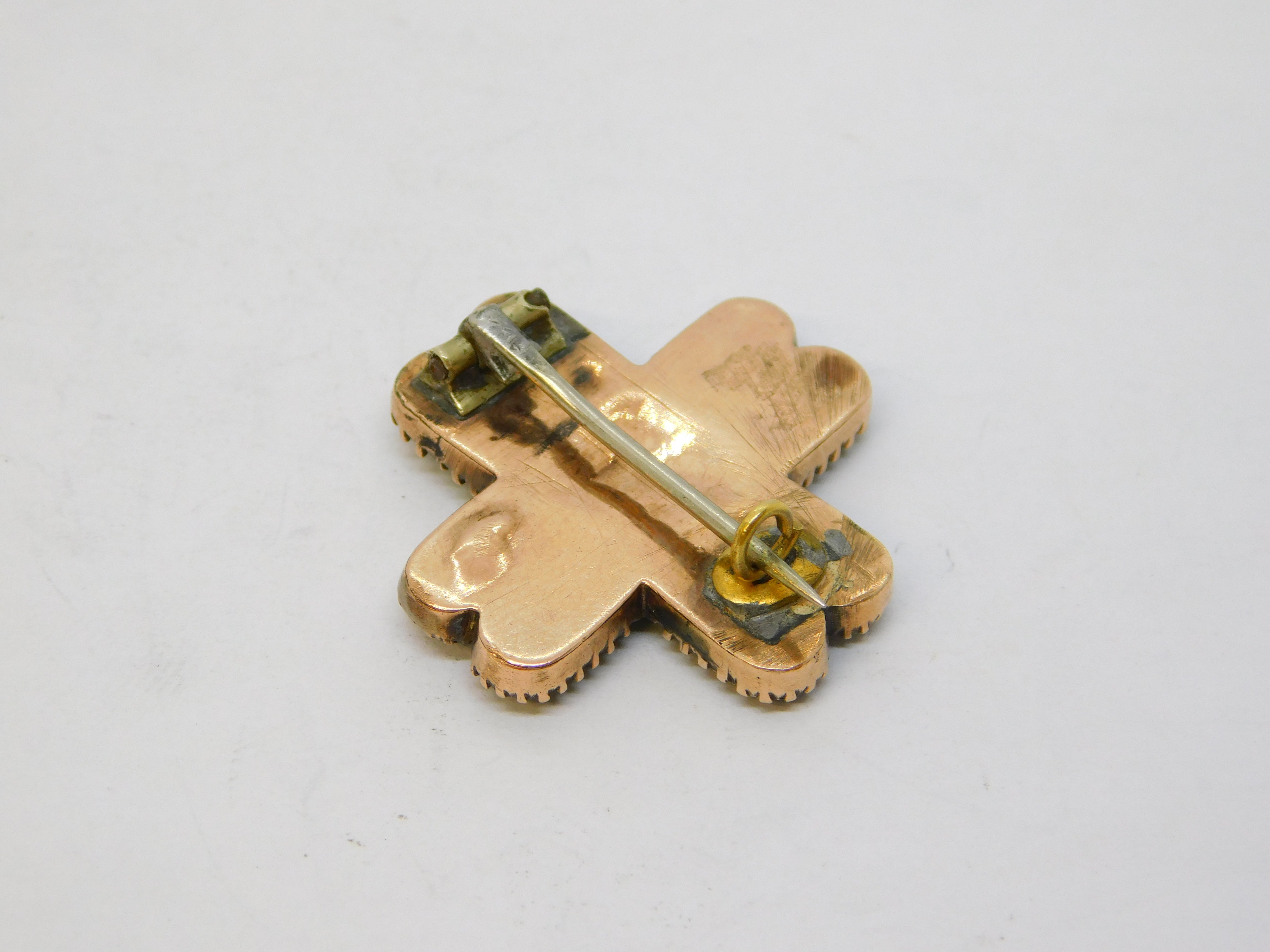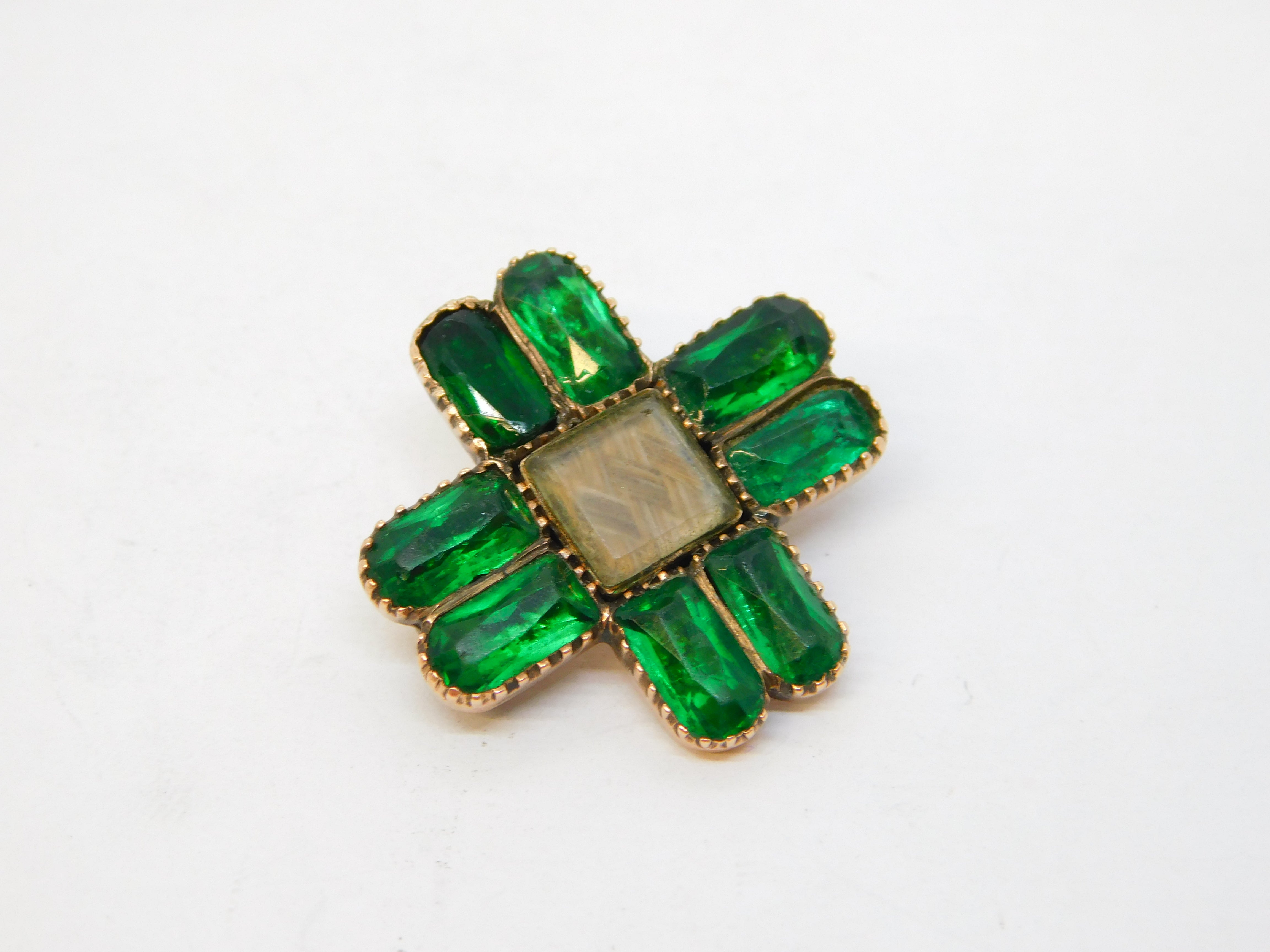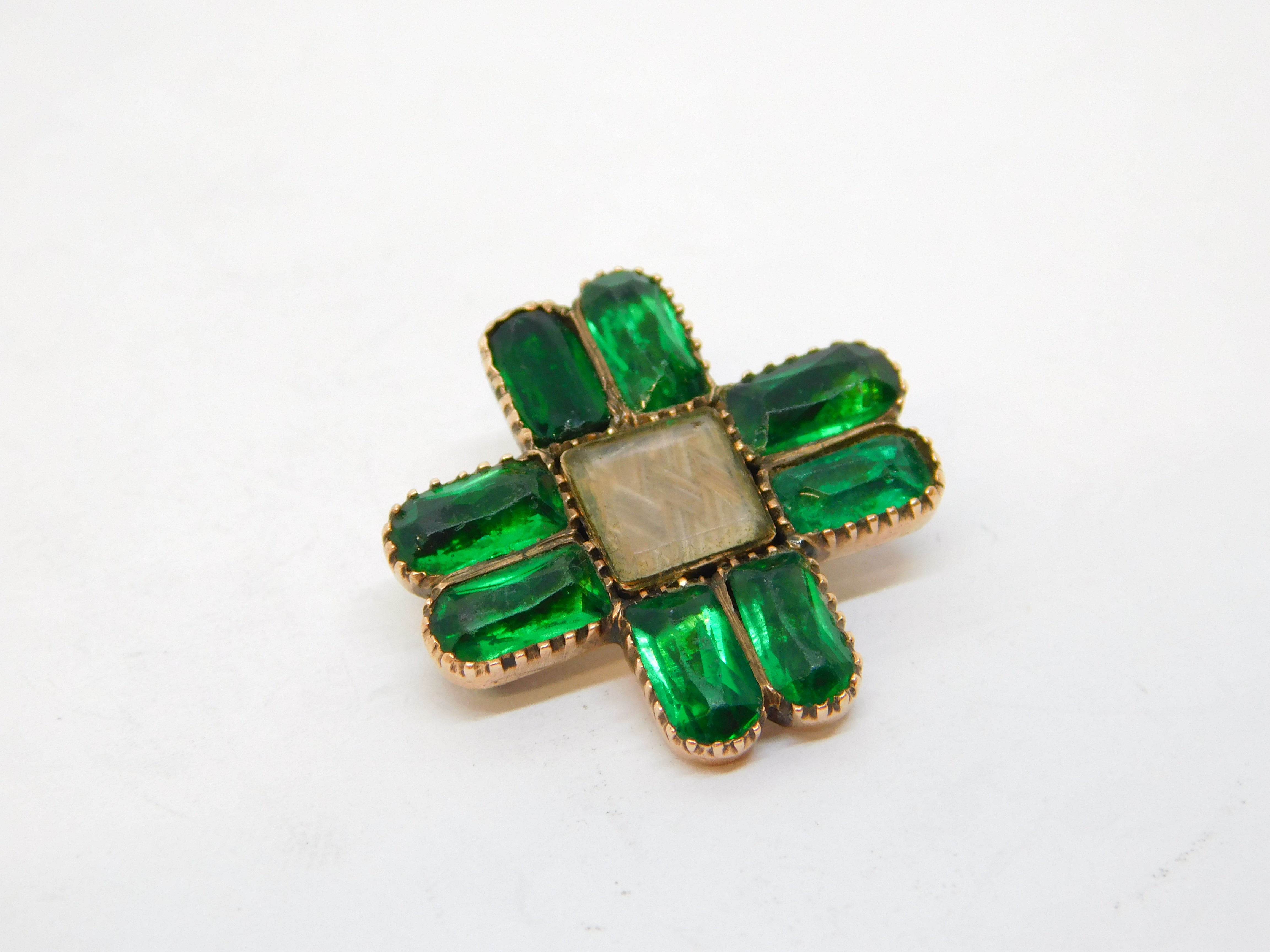 George III 15ct Rose Gold, Green Paste, Hair Set Cross Mourning Brooch Antique c1790