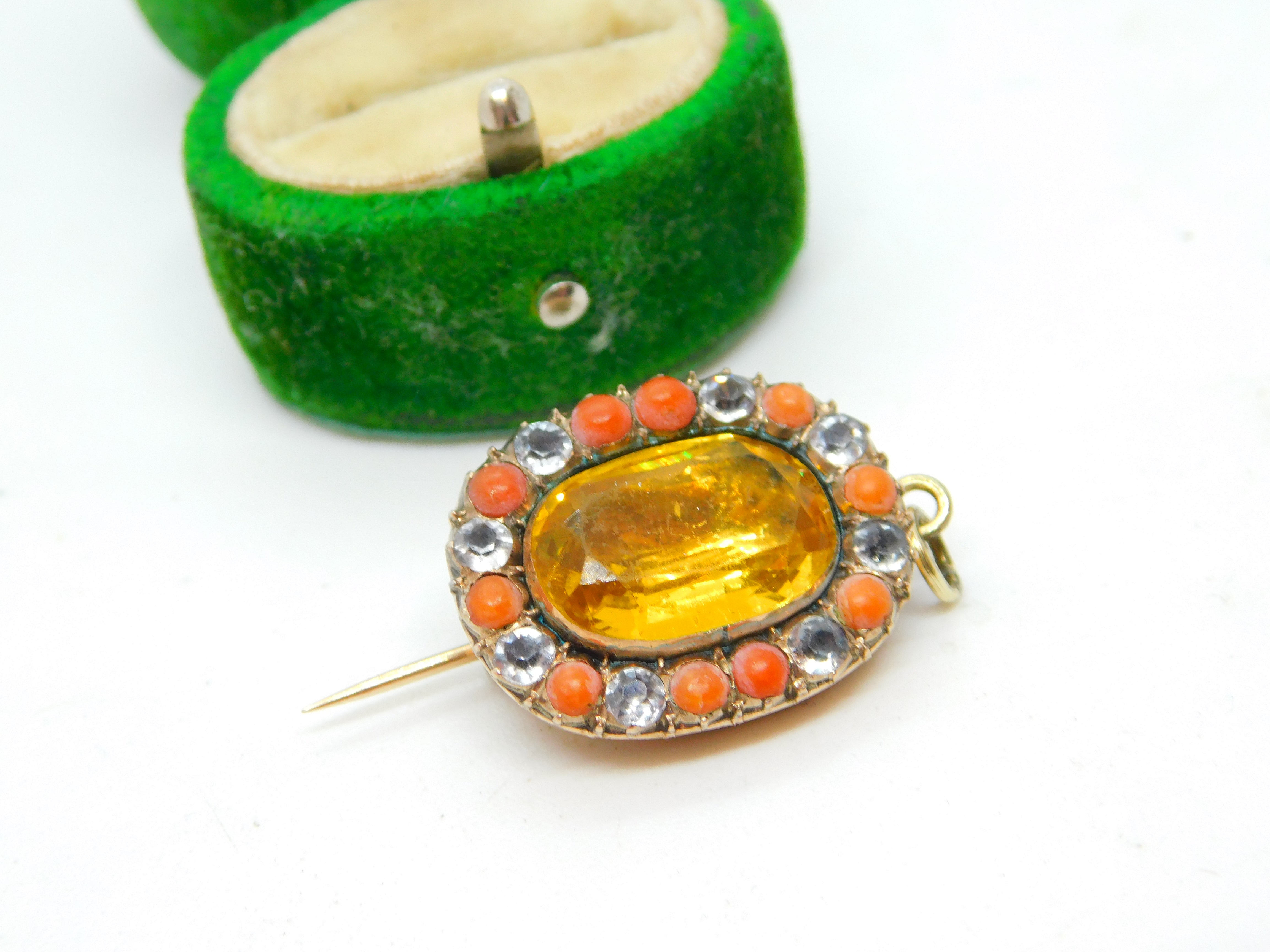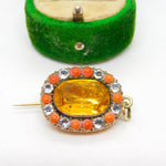 George III 9ct Gold, Coral, Paste & Citrine Mourning Brooch Antique c1820