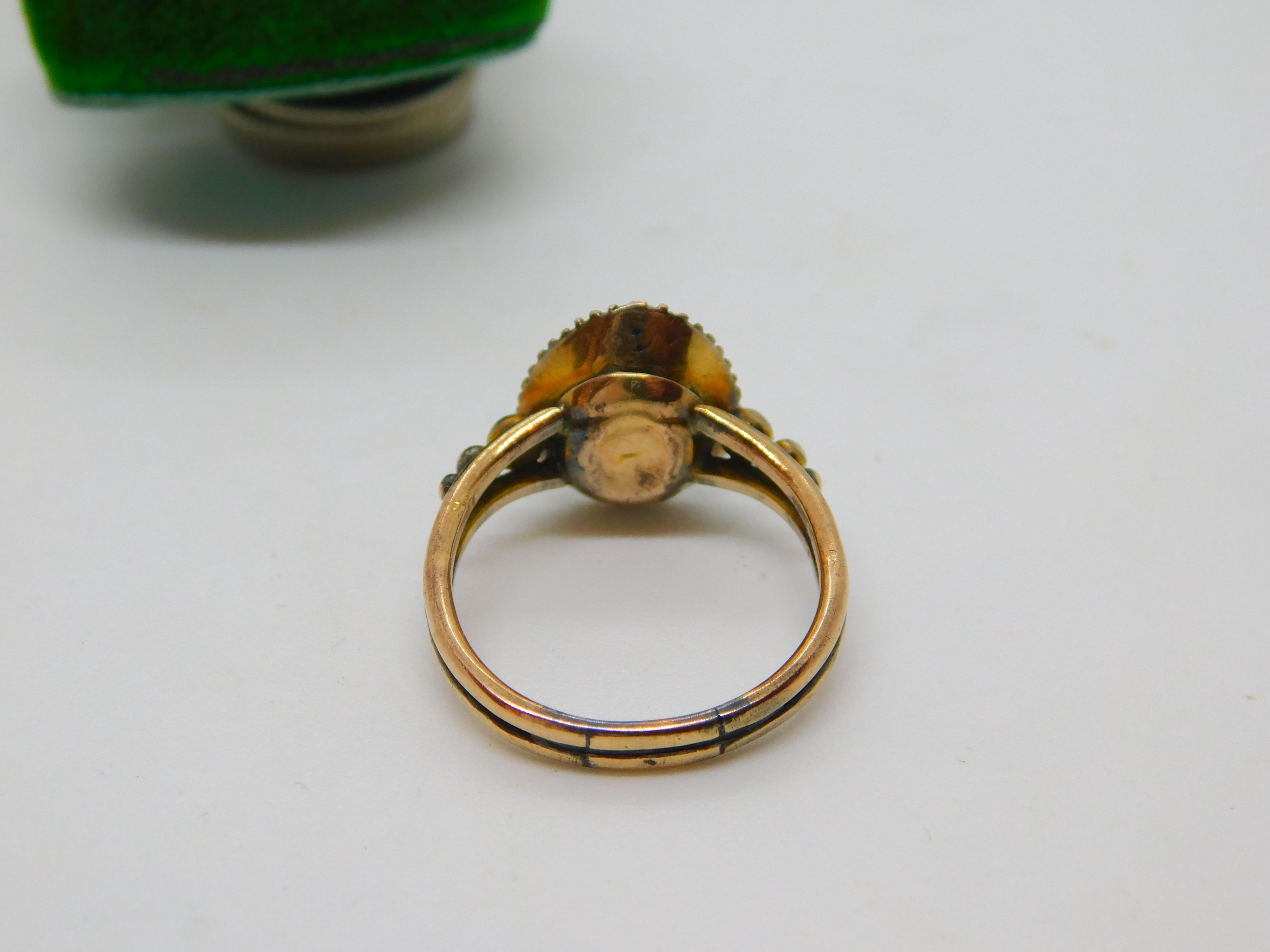 George III 9ct Gold Foil Back Paste & Seed Pearl Pear Shaped Ring Antique c1790