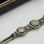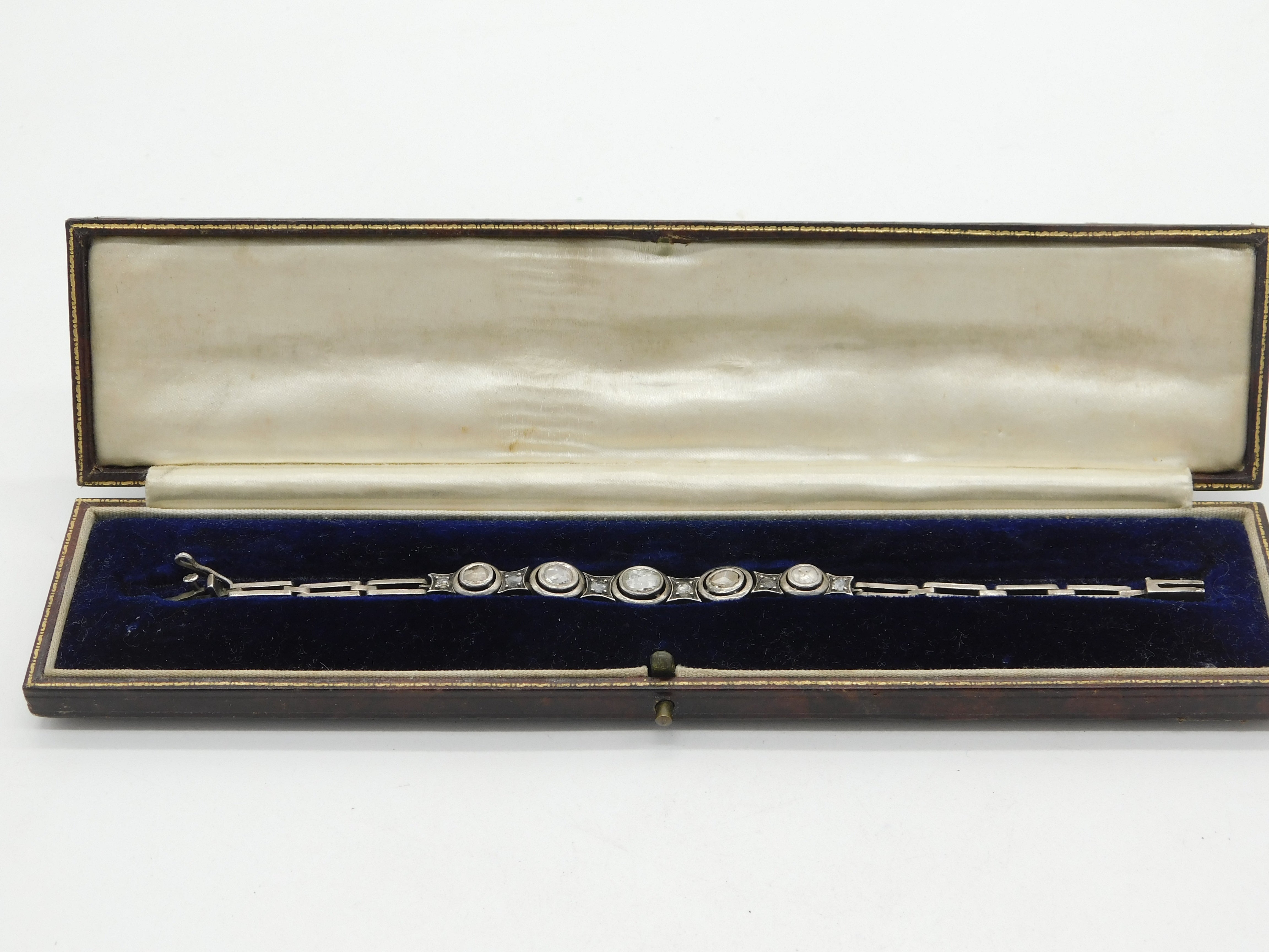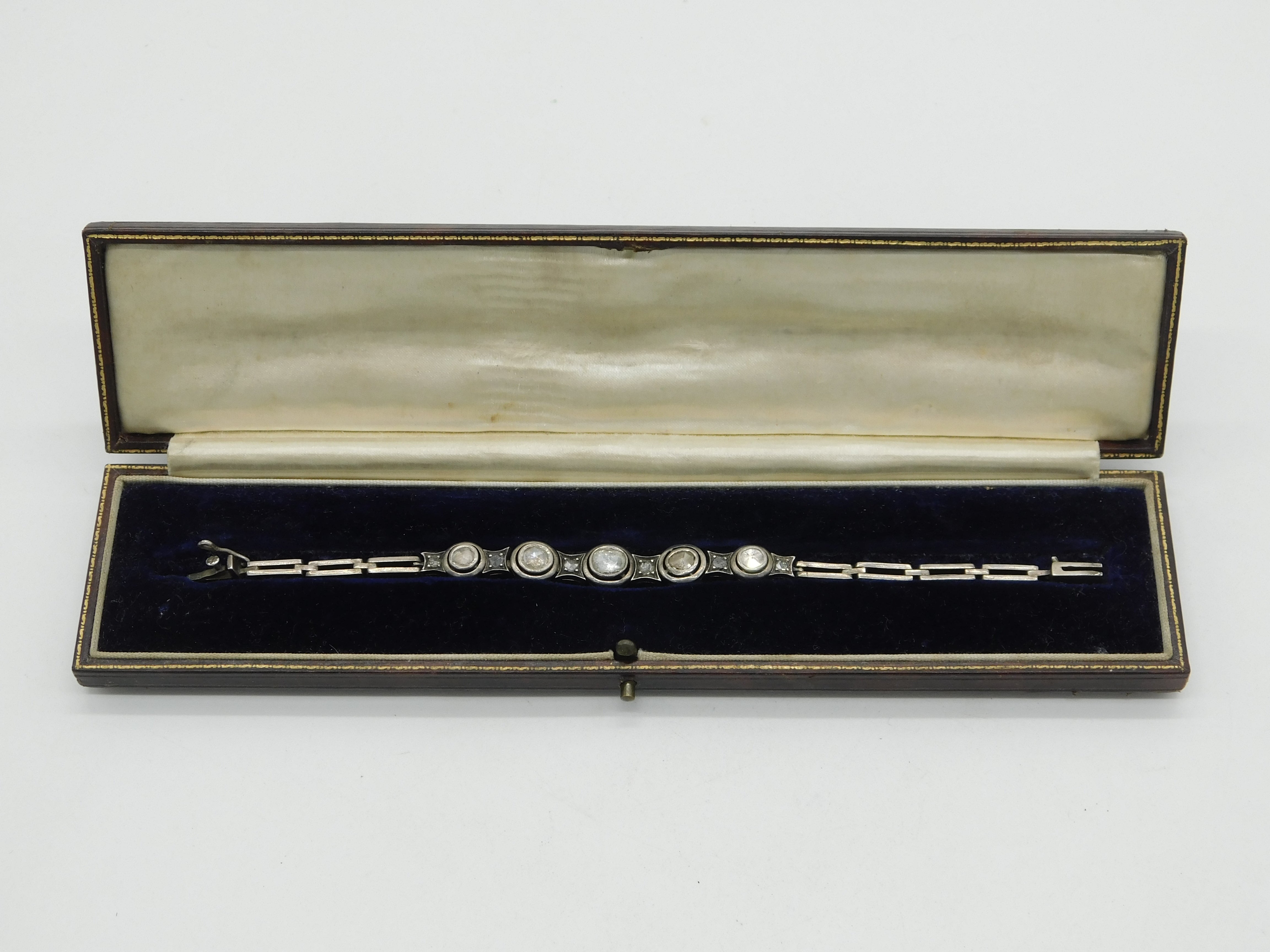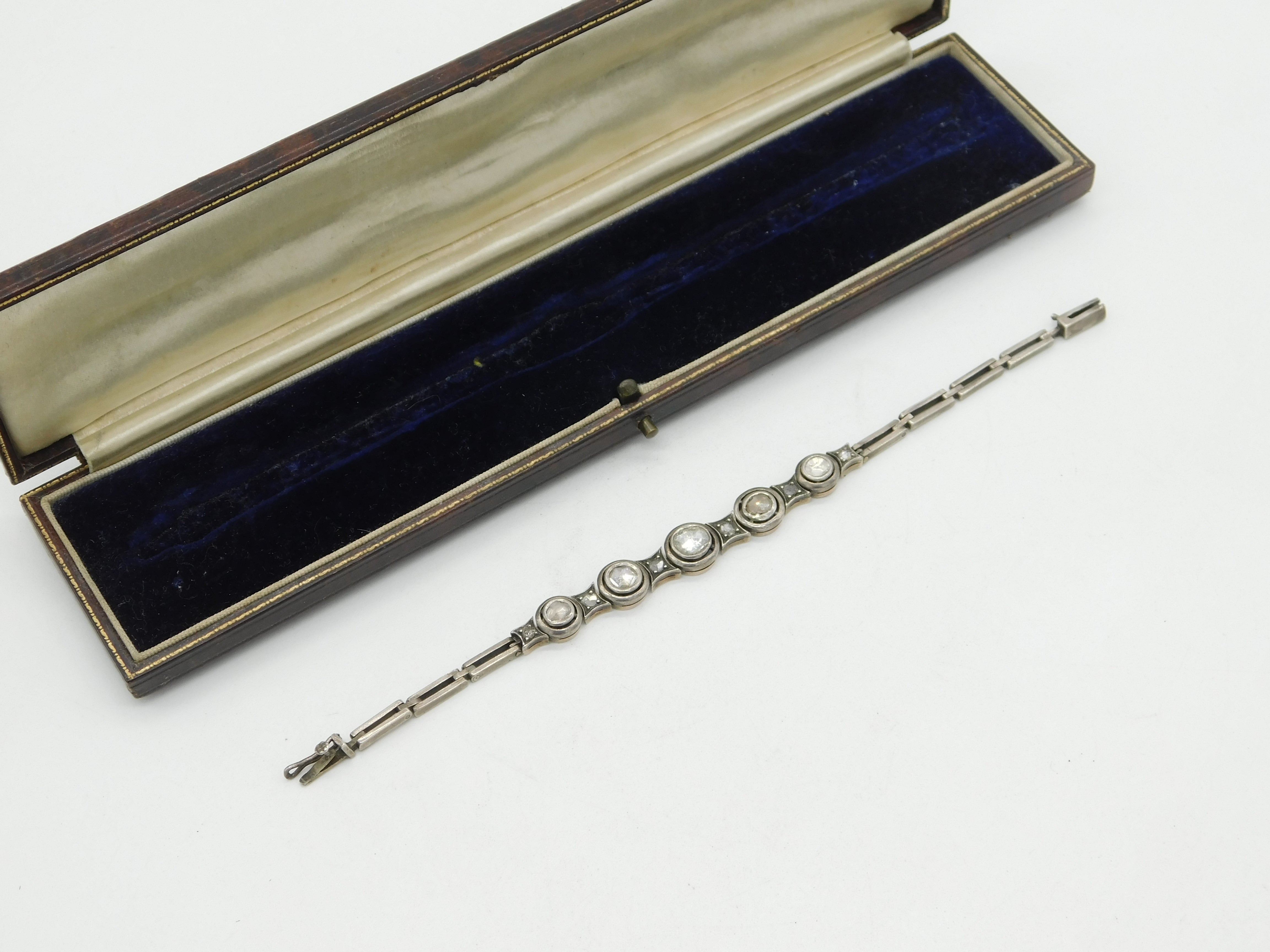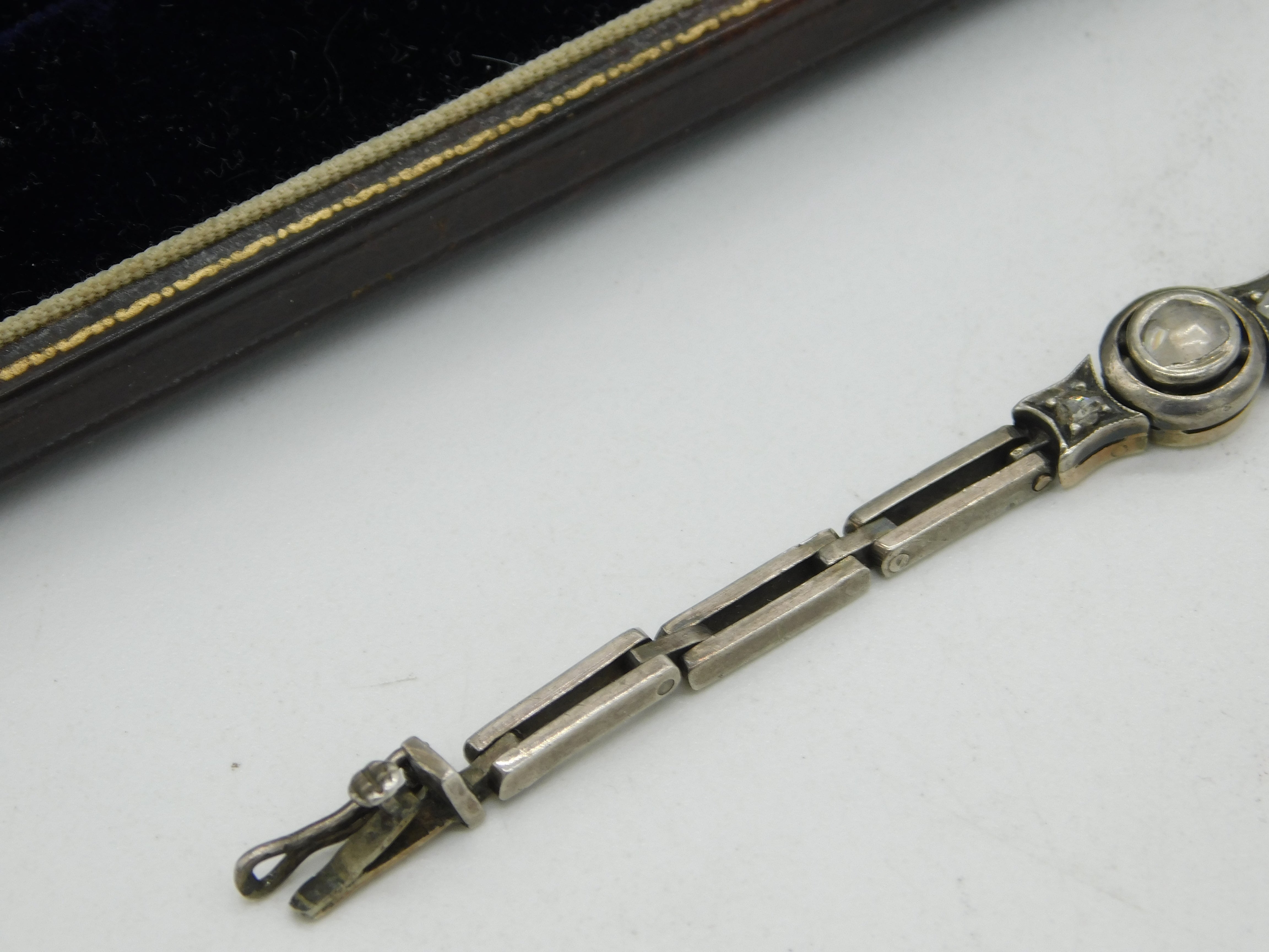 Details: A fantastic and wonderfully designed antique georgian boxed 9ct yellow gold & sterling silver graduating old-cut diamond bracelet with stunning detail c1790. The bracelet features five large diamonds set with six further diamonds in star style settings, the diamonds are mounted in the gold and the panels to the sides are silver. The central diamond is approximately 1ct in weight flanked by old-cut diamonds approximately 0.5ct. The total diamond weight of the bracelet is approximately 3ct, the gold has been XRF tested and the diamonds have all been tested. This is a wonderful item that would make a perfect gift or addition to any collection.